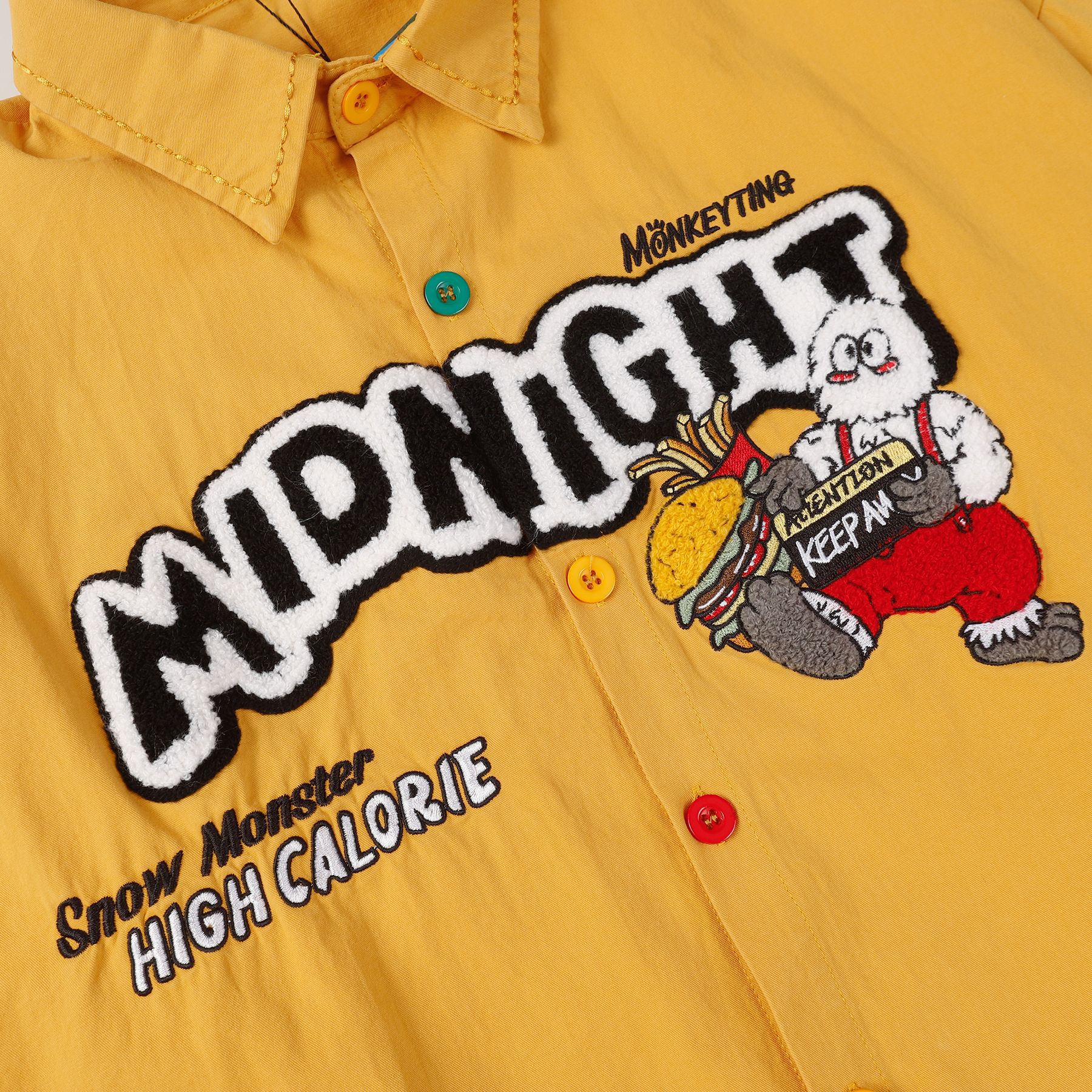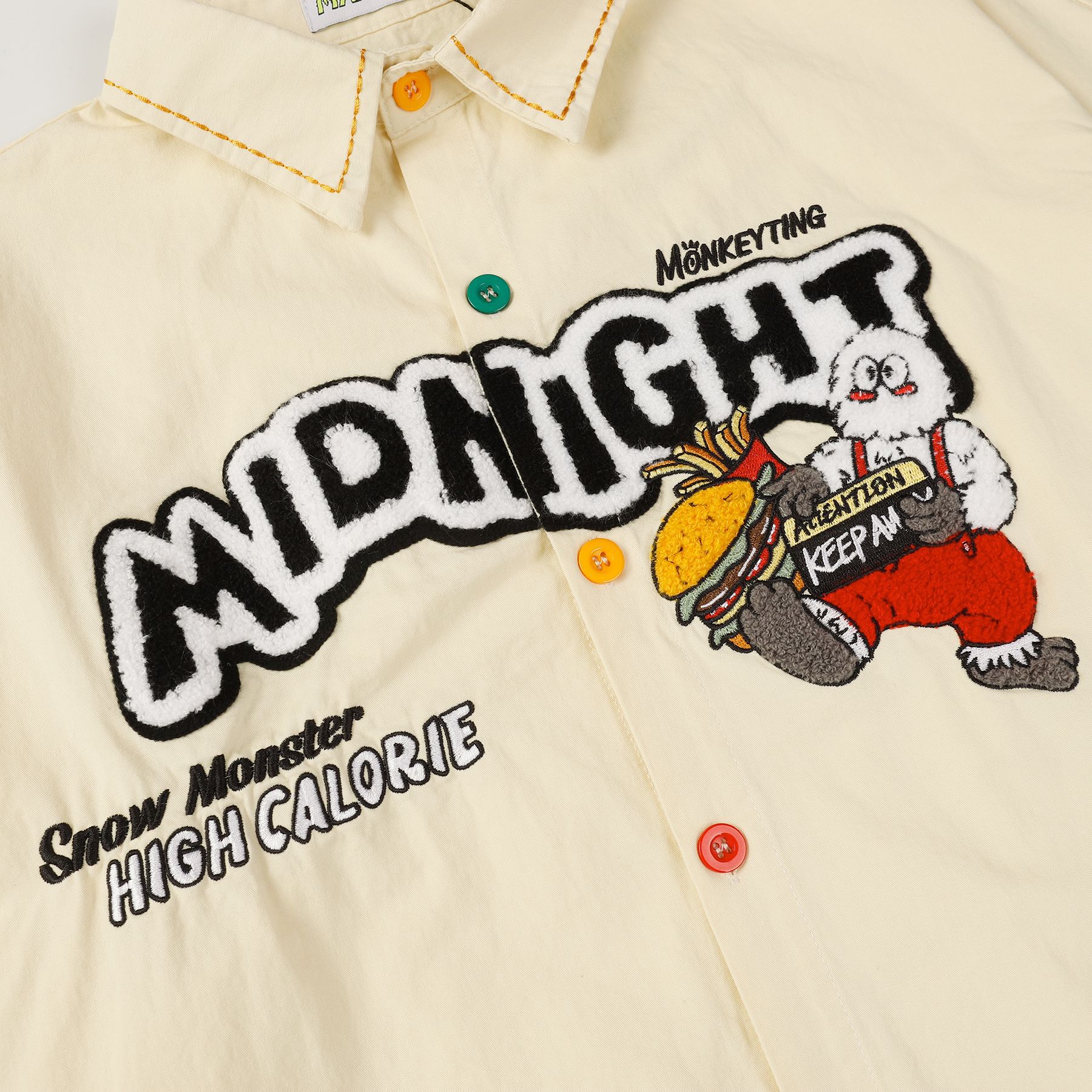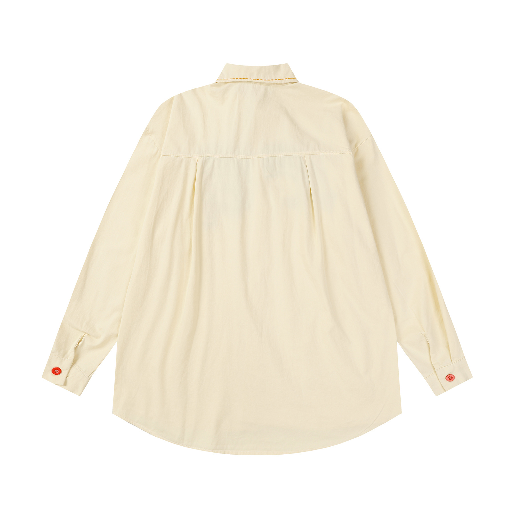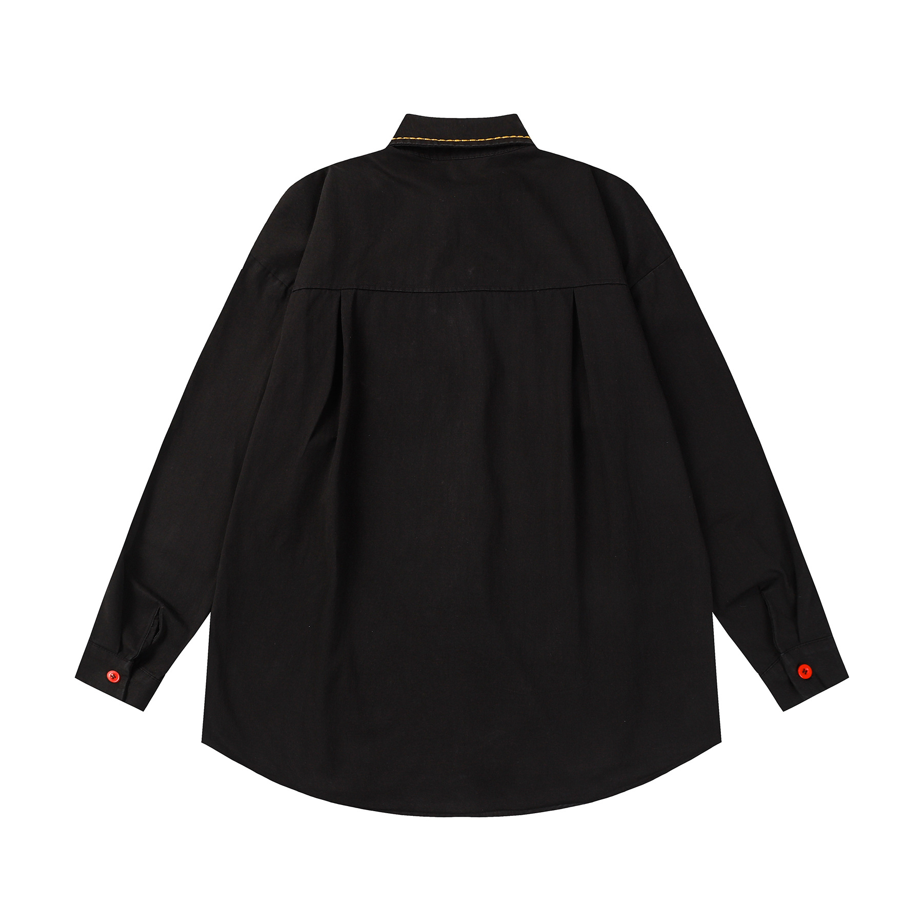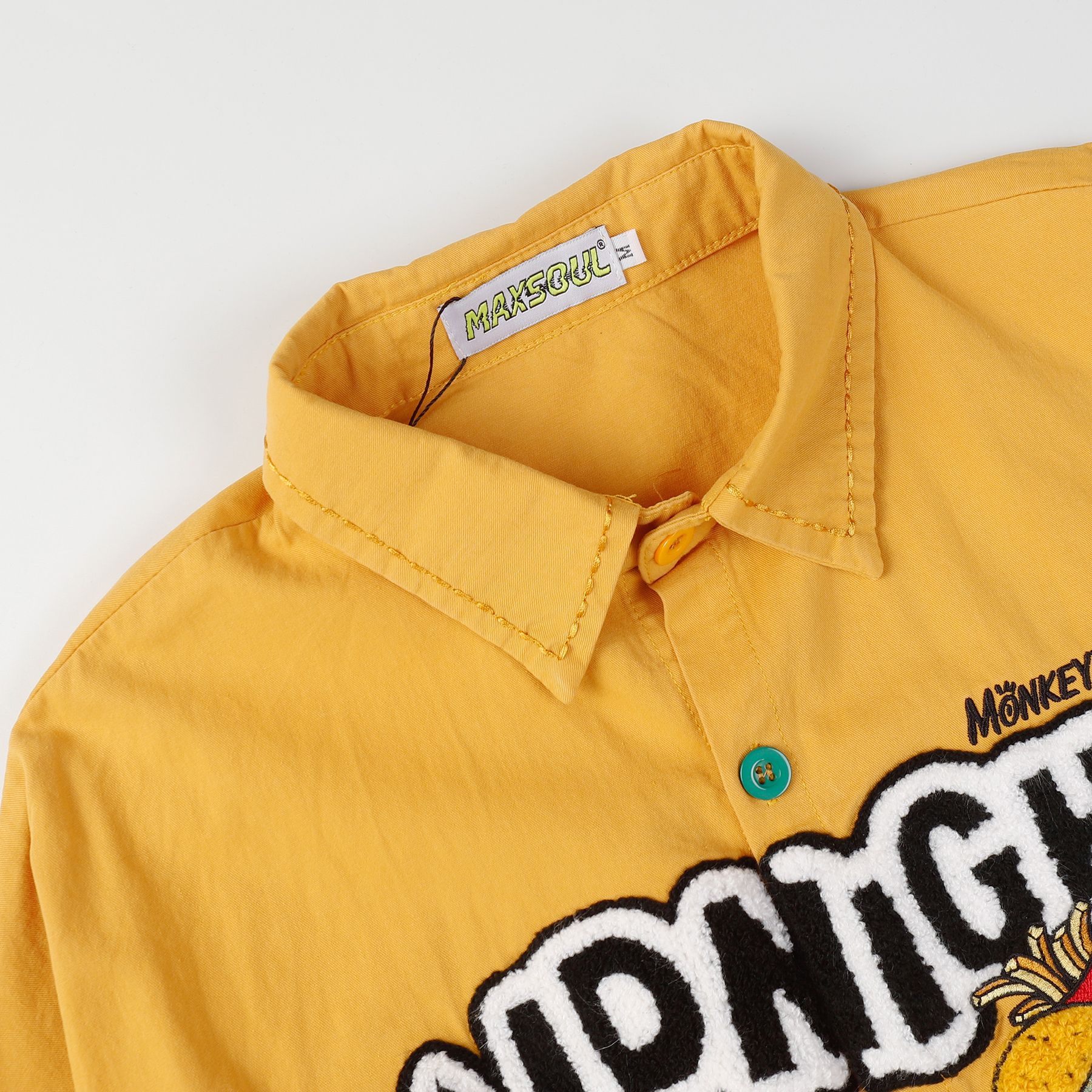 재미있는 디자인 수건 자수 만화 감자 튀김 햄버거 셔츠 거리 남녀 커플 오버 사이즈 긴팔 셔츠스토어 가기