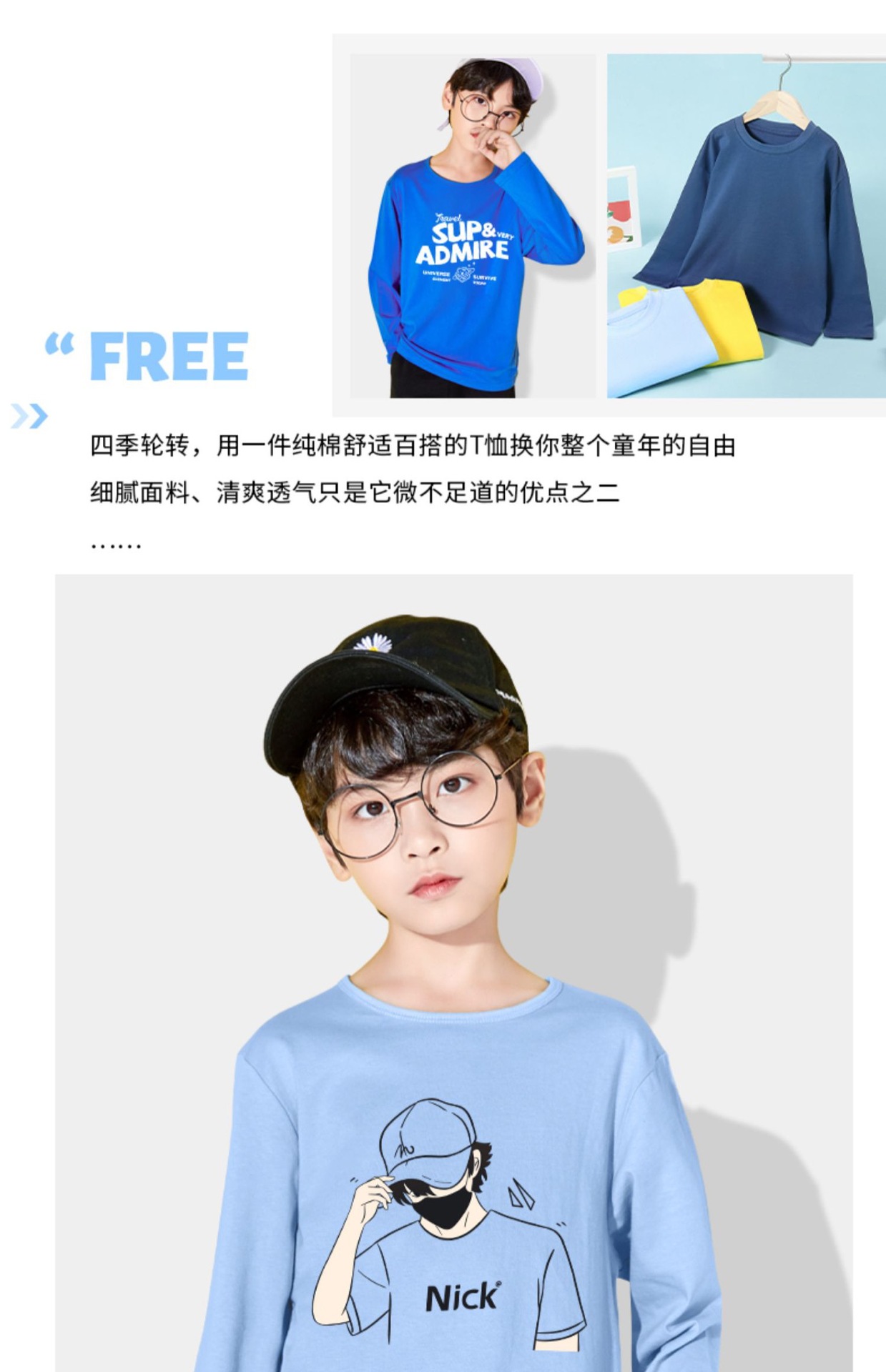 • [캐주얼 긴 소매] 만화 화이트 + T 블루