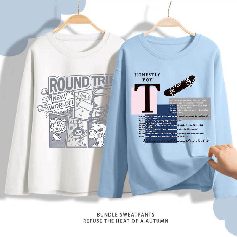 아동복 소년 긴팔 티셔츠 2024 새로운 어린이 봄 바지 셔츠 봄 옷 남성 큰 어린이 봄과 가을 탑 패션스토어 가기