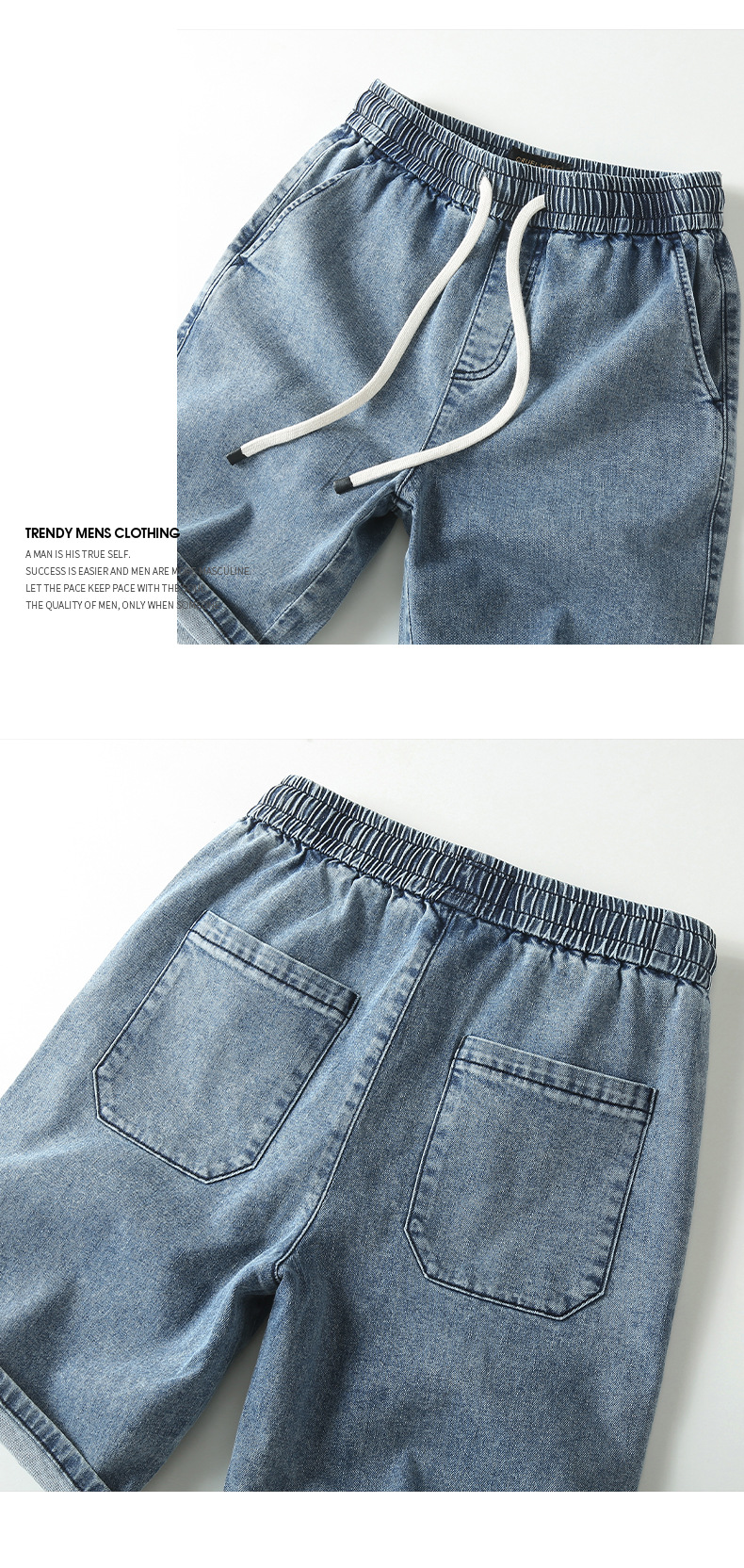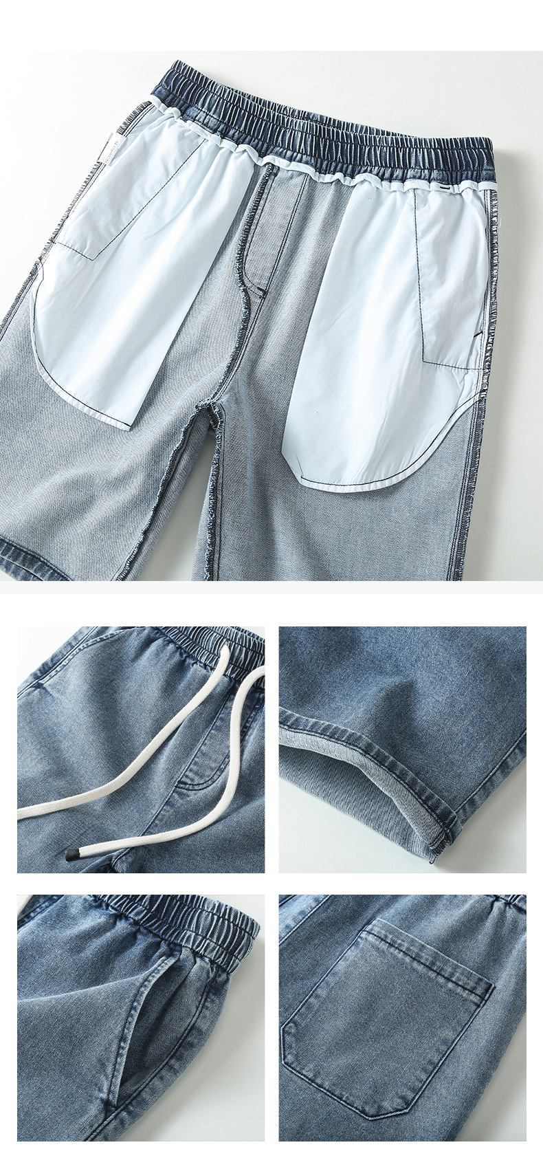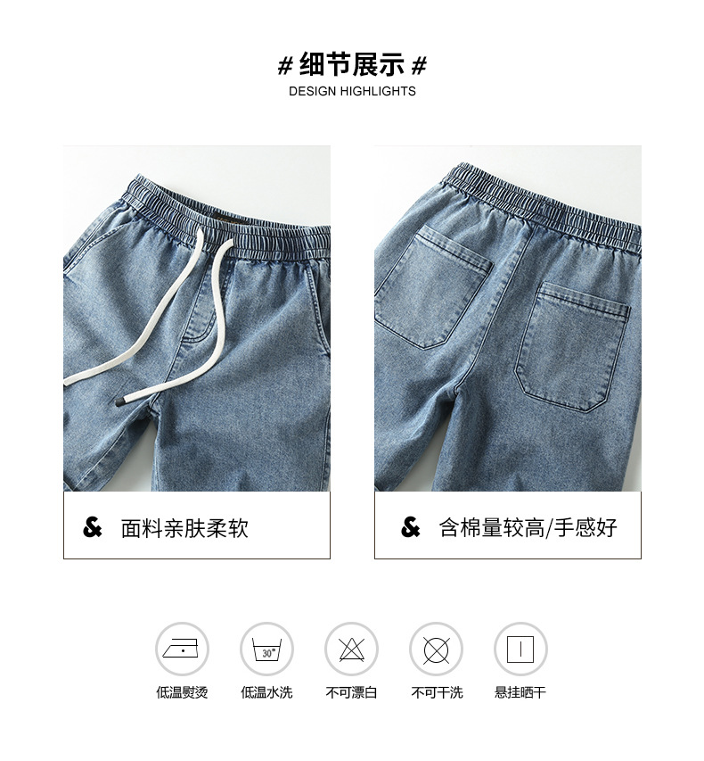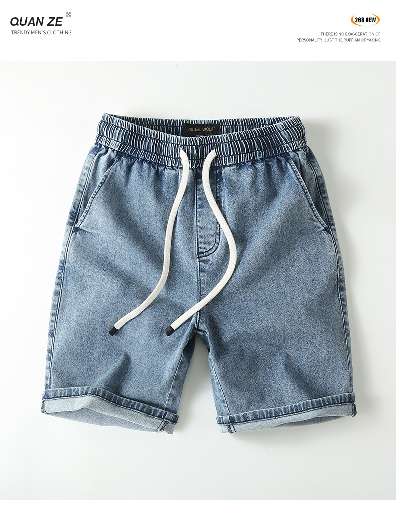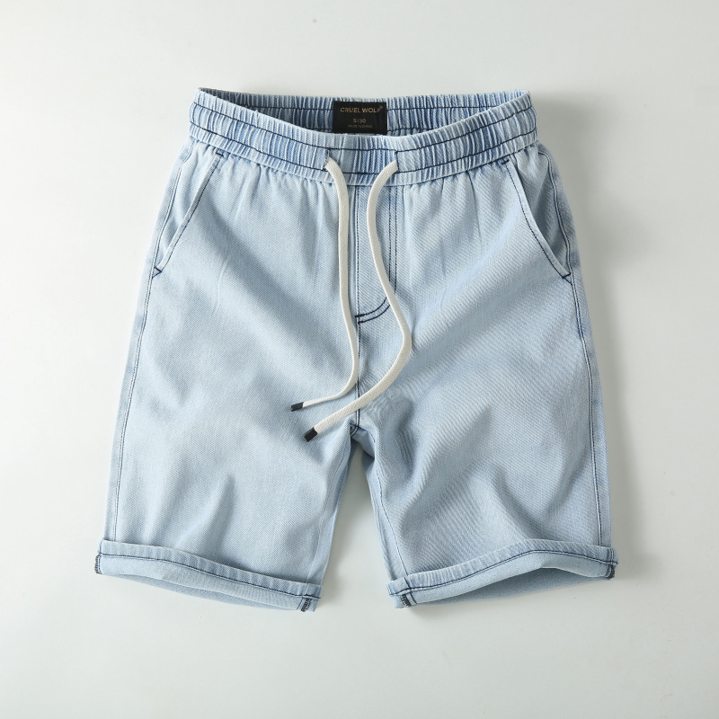 아메리칸 스타일 스트레이트 레그 청바지 남성 여름 얇은 바지 면 캐주얼 반바지 드로스트링 루즈 스트레치 바지