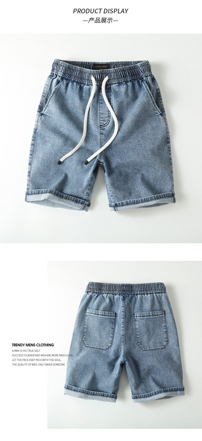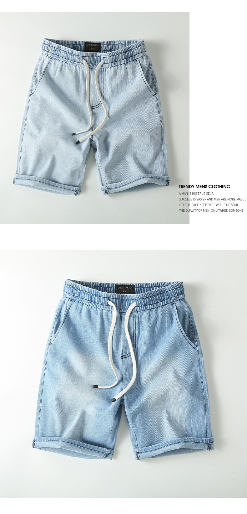 아메리칸 스타일 스트레이트 레그 청바지 남성 여름 얇은 바지 면 캐주얼 반바지 드로스트링 루즈 스트레치 바지스토어 가기