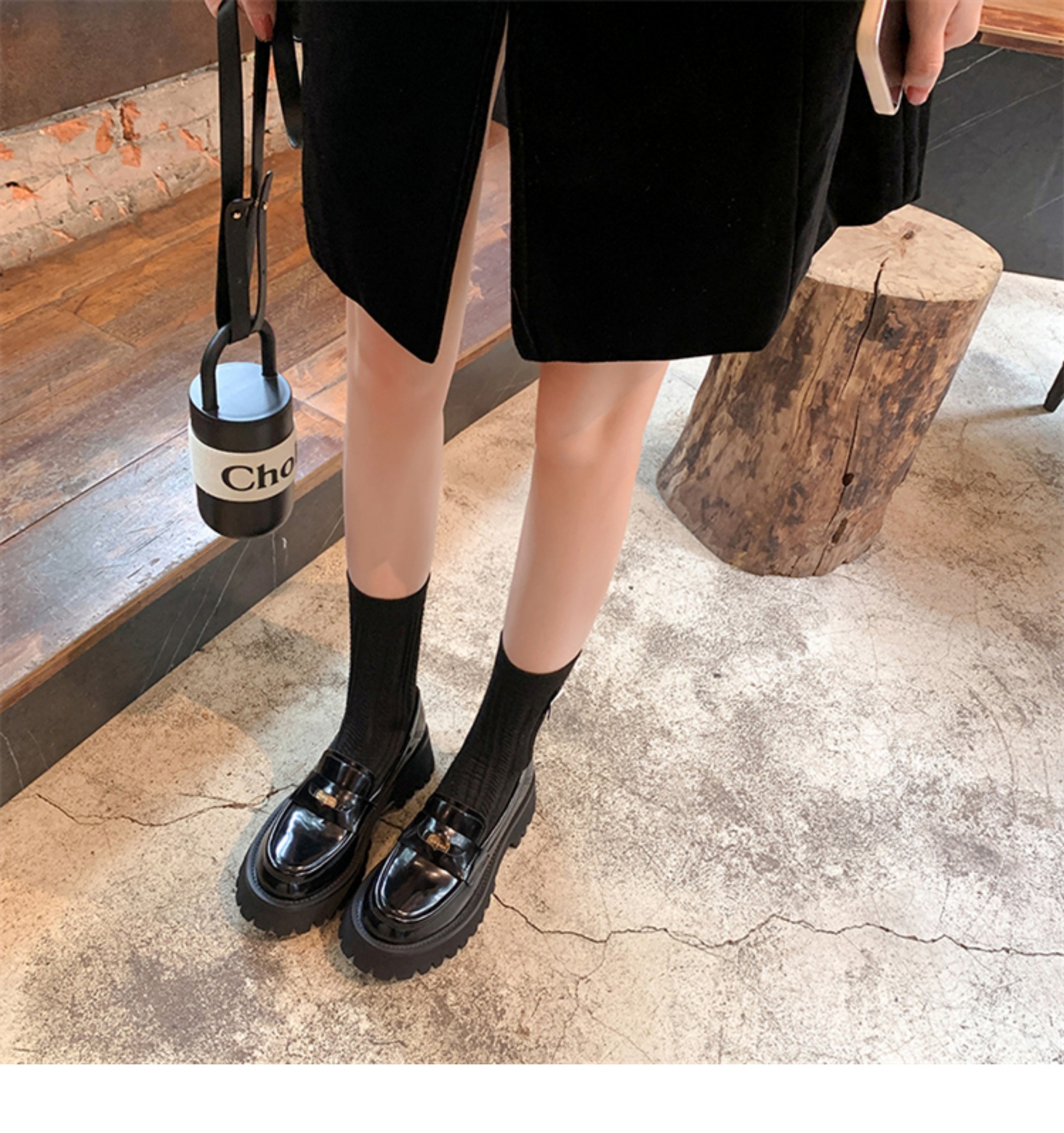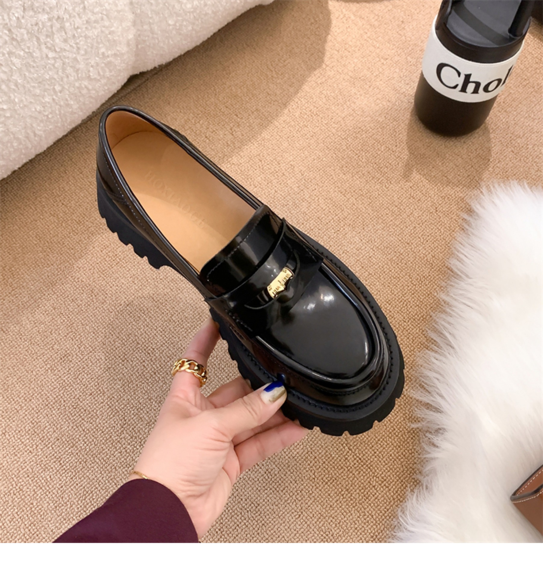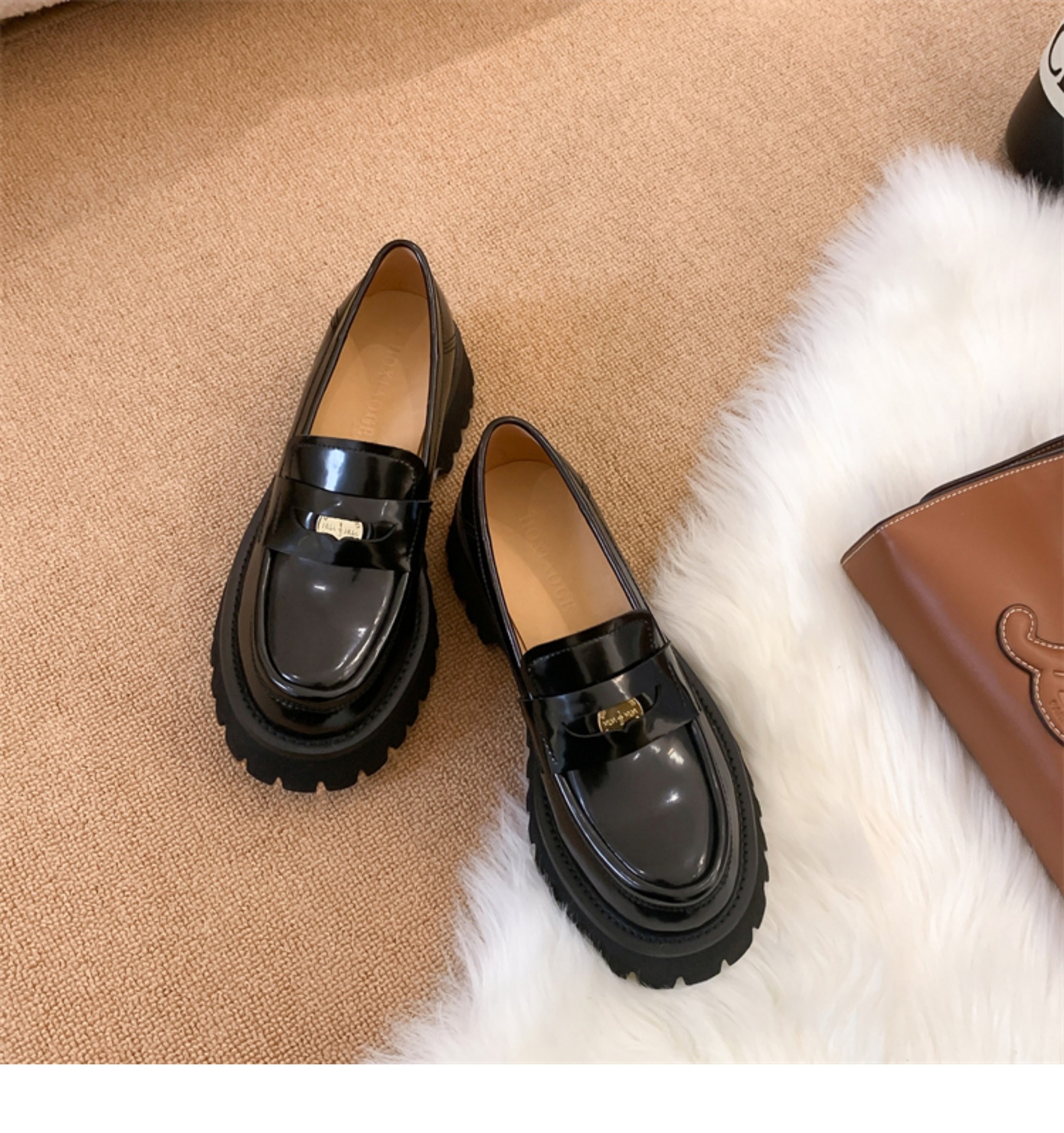 첫 번째 레이어 소 가죽 인터넷 유명 인사 스타일 두꺼운 바닥 금화 로퍼 플랫폼 힐 여성 싱글 슈즈 JK 작은 가죽 슈즈 여성 캐주얼 슈즈 패션스토어 가기