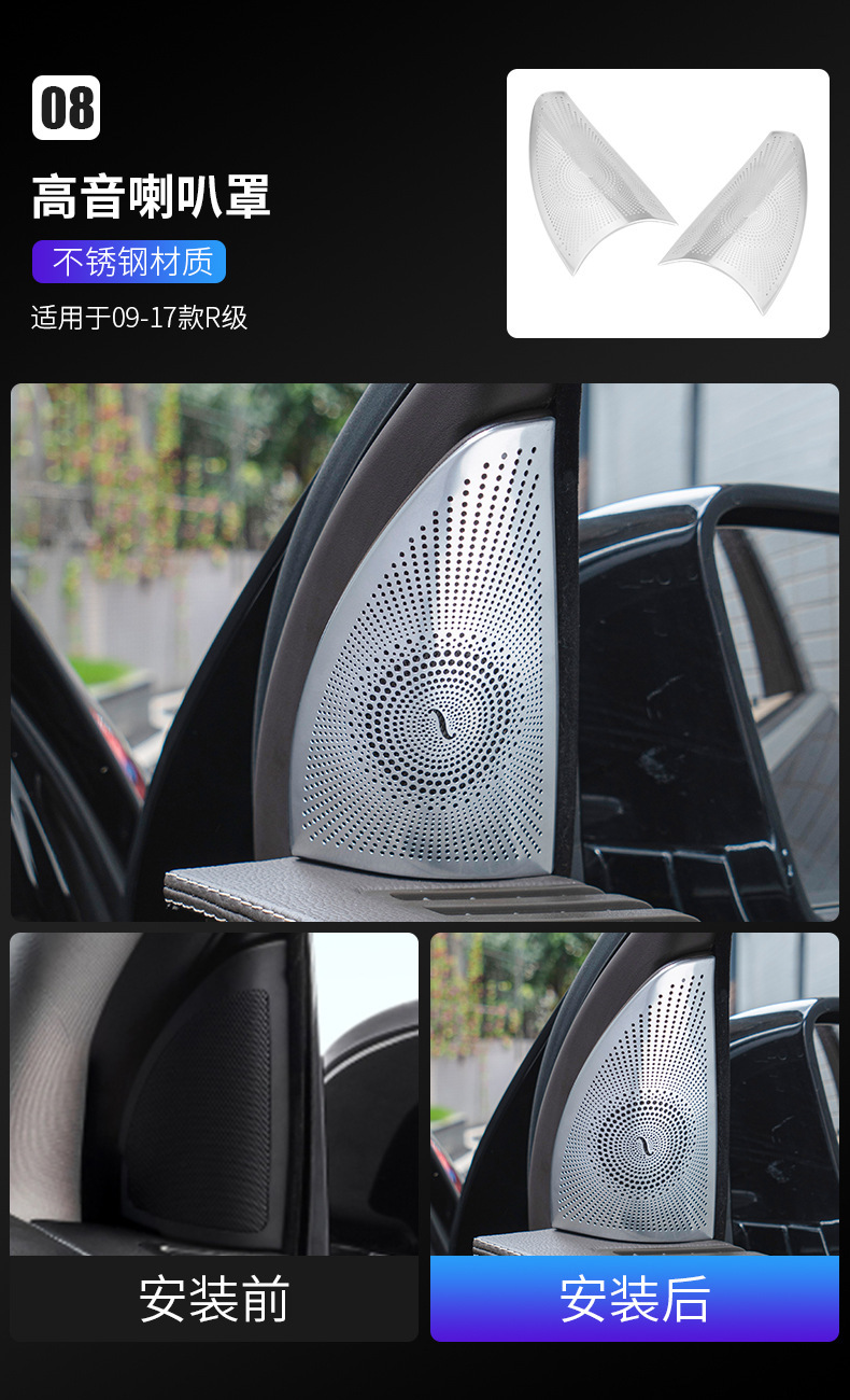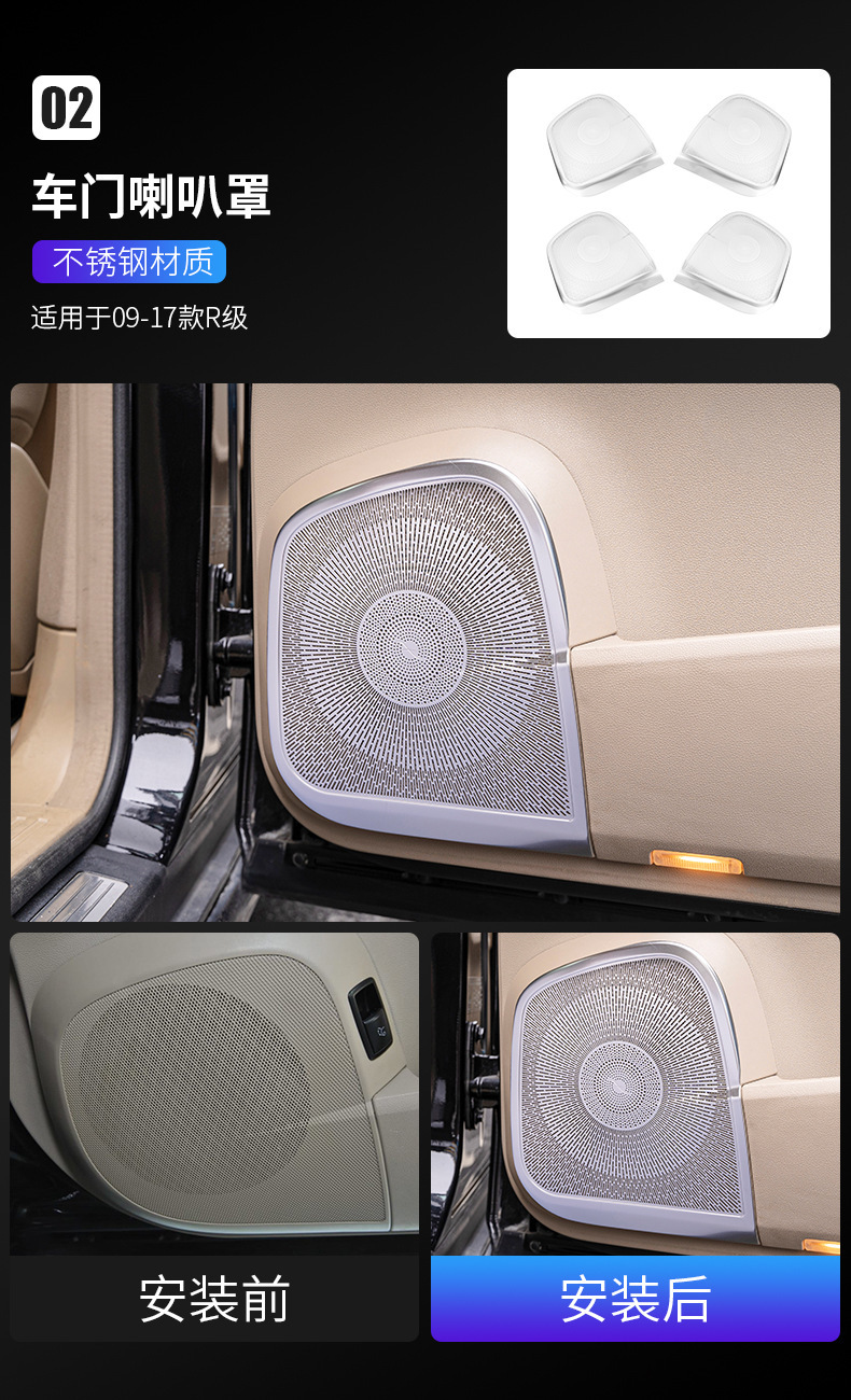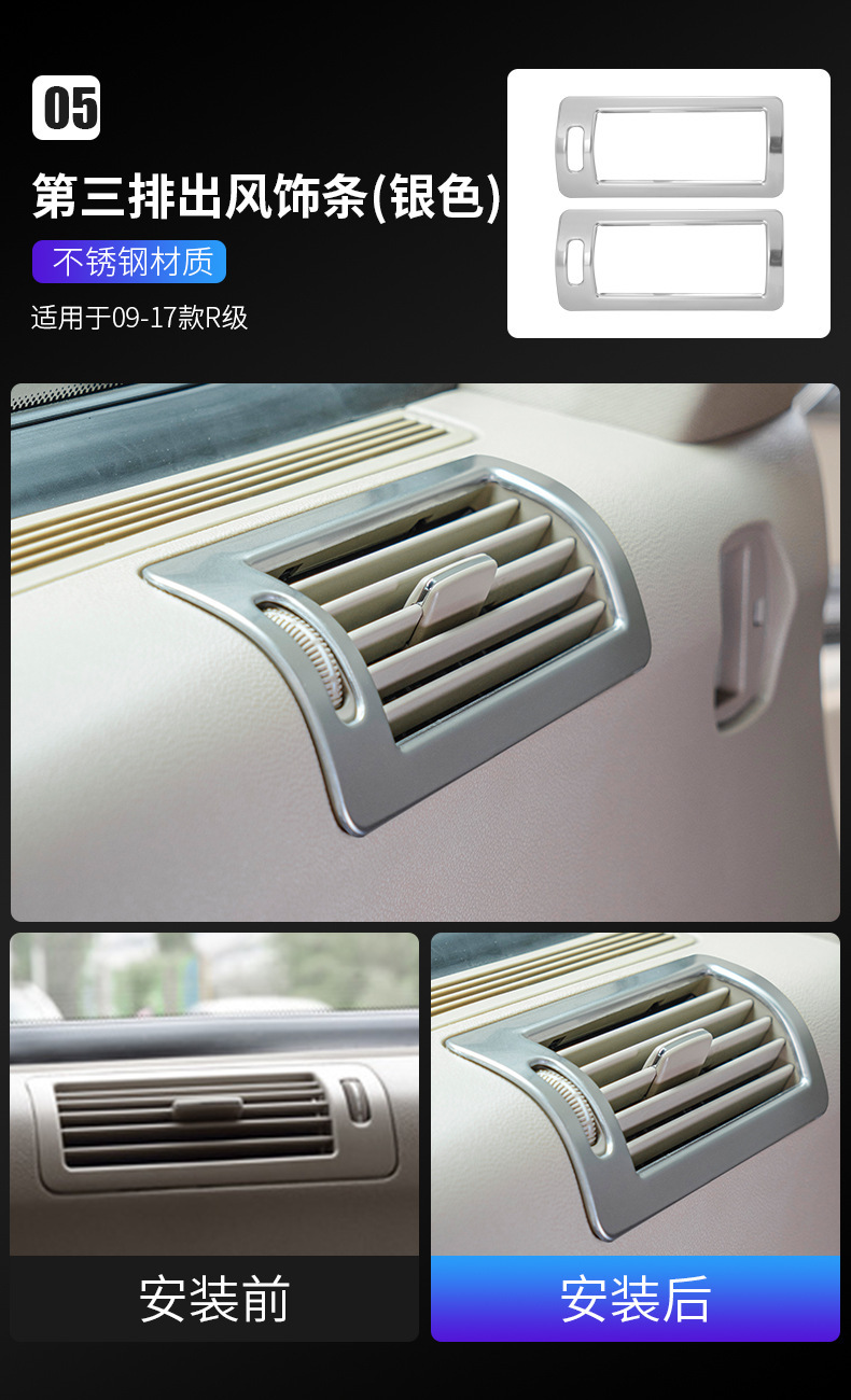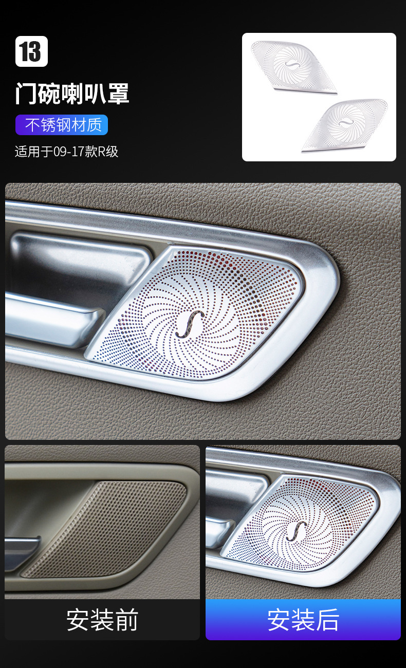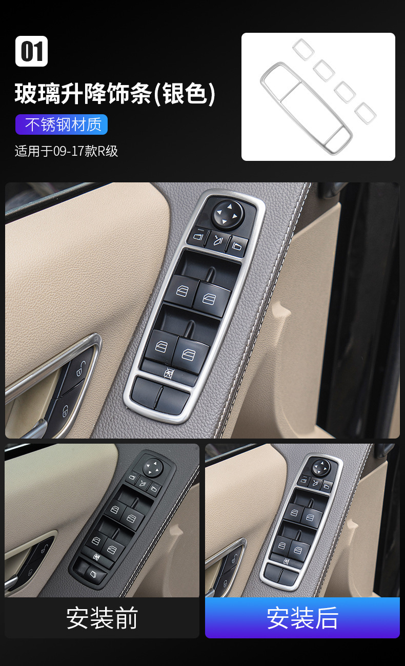 적용 05-18 메르세데스-벤츠 R-클래스 수정 r 320 300 350 400 자동차 도어 중앙 제어 패널 실내 장식 스티커스토어 가기