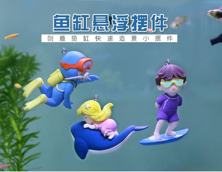 블루 패티 다이버 조개 인어 수족관 어항 장식물 수중 부유 장식품 귀여운 장식품