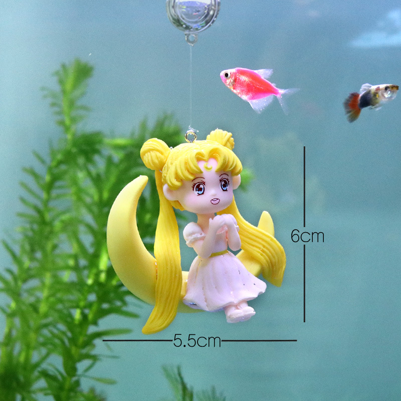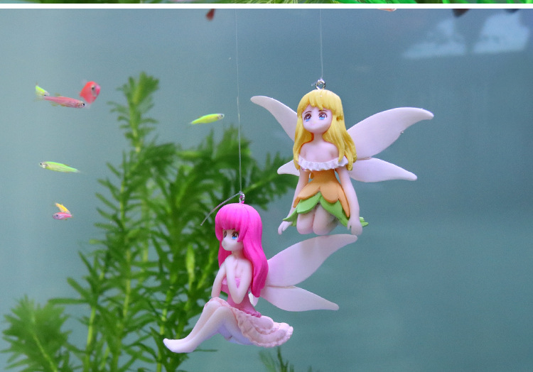 • 수족관 다크 브라운 머리 날개 소녀 라인 + 플로팅 볼을 보내