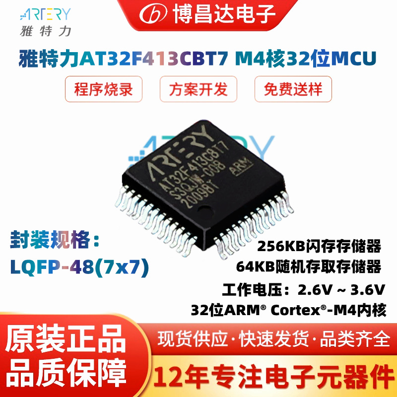 원래 정품 Atley AT32F413CBT7 LQFP-48(7x7) M4 코어 32 비트 MCU 단일 칩 마이크로 컴퓨터