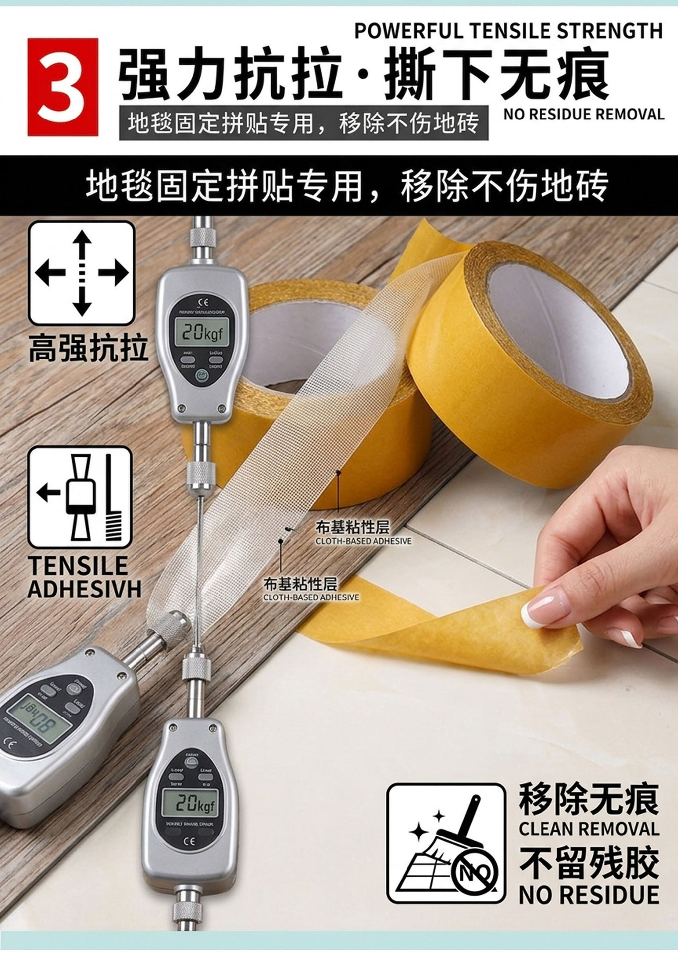 천 양면 테이프 웨딩 전시회 카펫 양면 접착 원활한 메쉬 접착제 강한 높은 접착 바닥 접착제스토어 가기