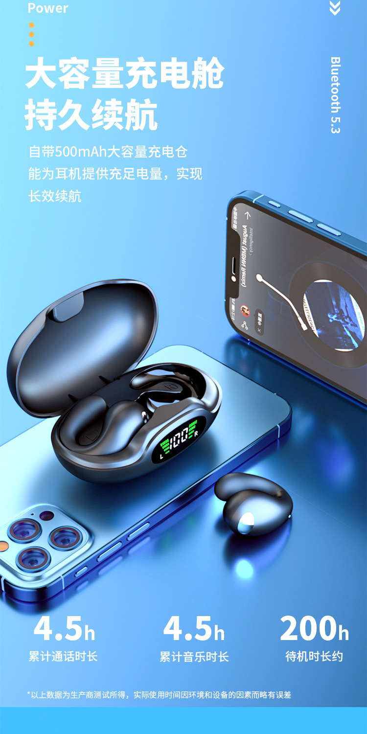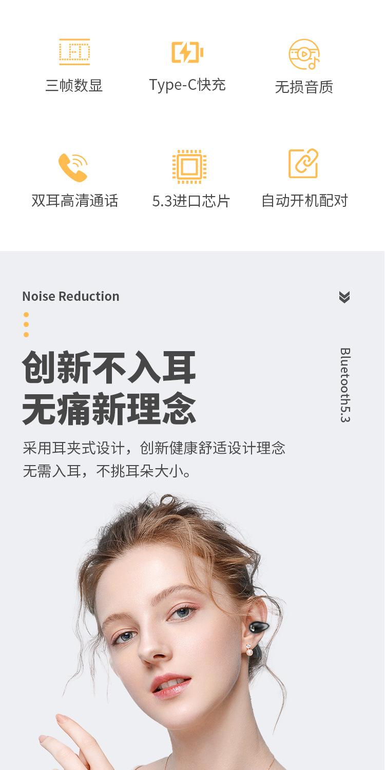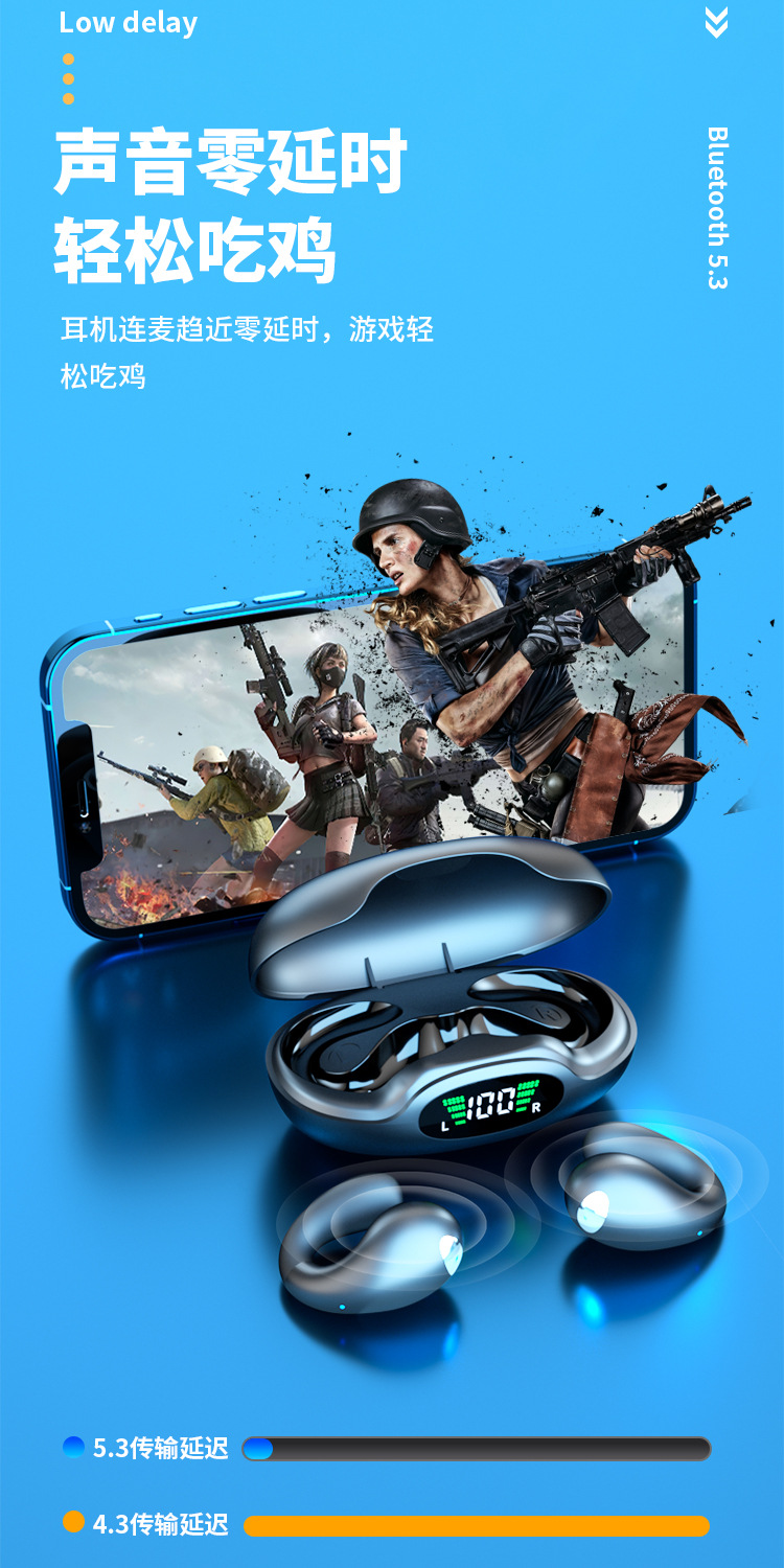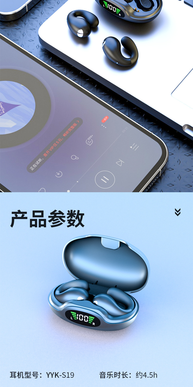 S19 스포츠 무선 블루투스 이어폰 개인 맞춤형 소음 감소 비삽입형 골전도 이어클립형 게이밍 저지연