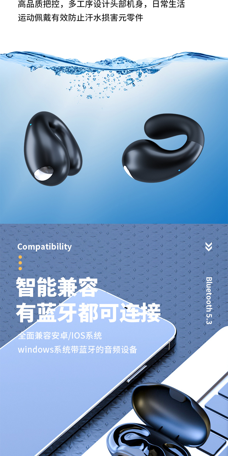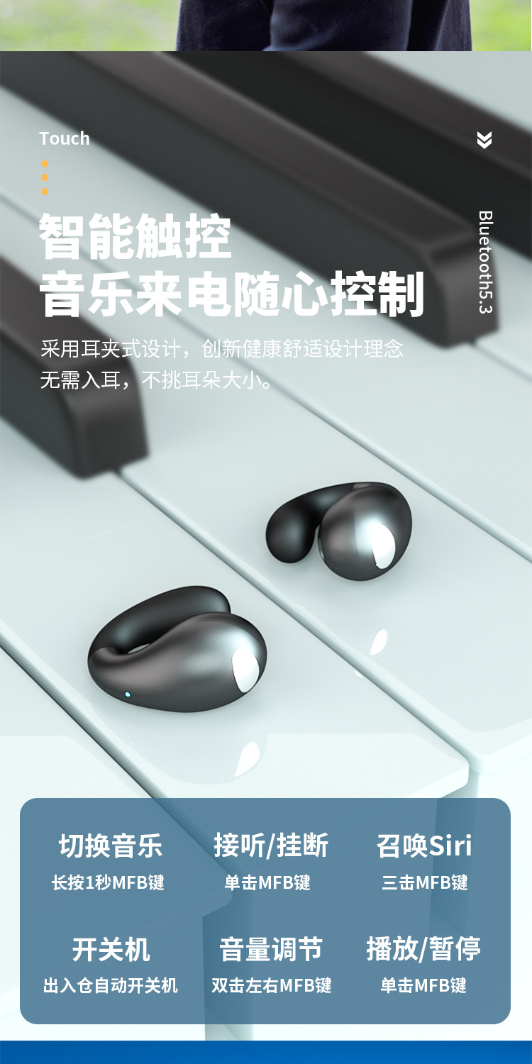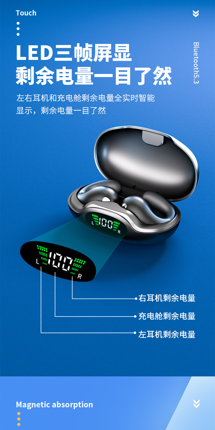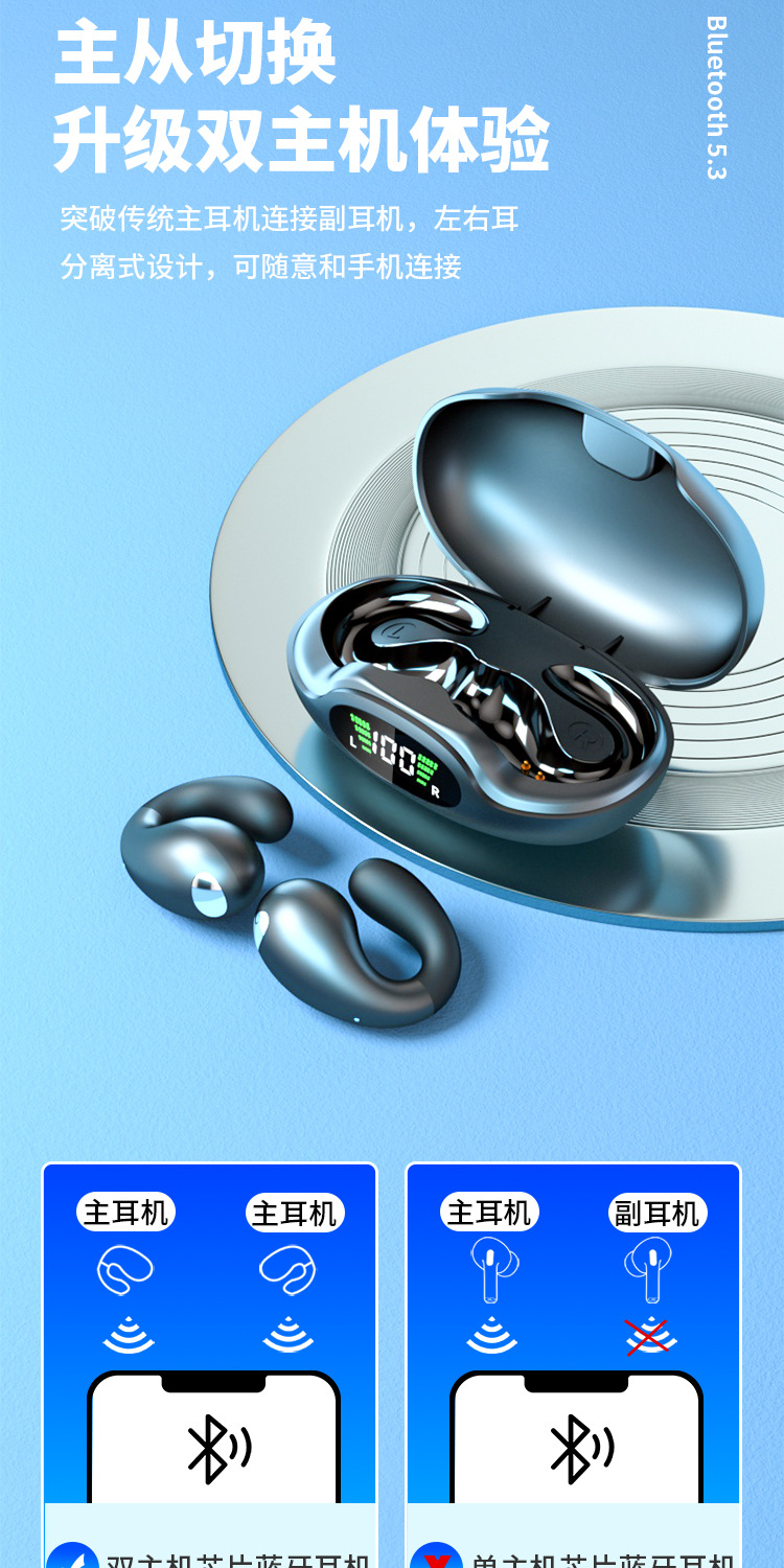 S19 스포츠 무선 블루투스 이어폰 개인 맞춤형 소음 감소 비삽입형 골전도 이어클립형 게이밍 저지연