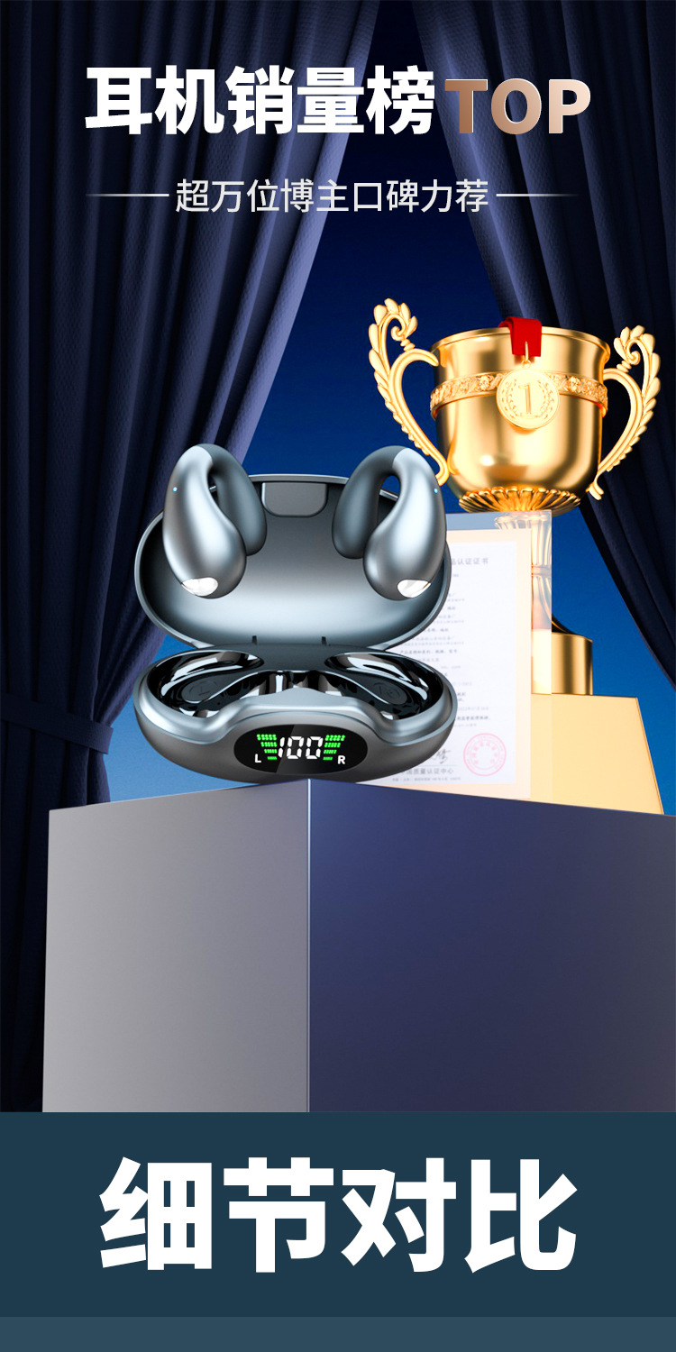 S19 스포츠 무선 블루투스 이어폰 개인 맞춤형 소음 감소 비삽입형 골전도 이어클립형 게이밍 저지연스토어 가기