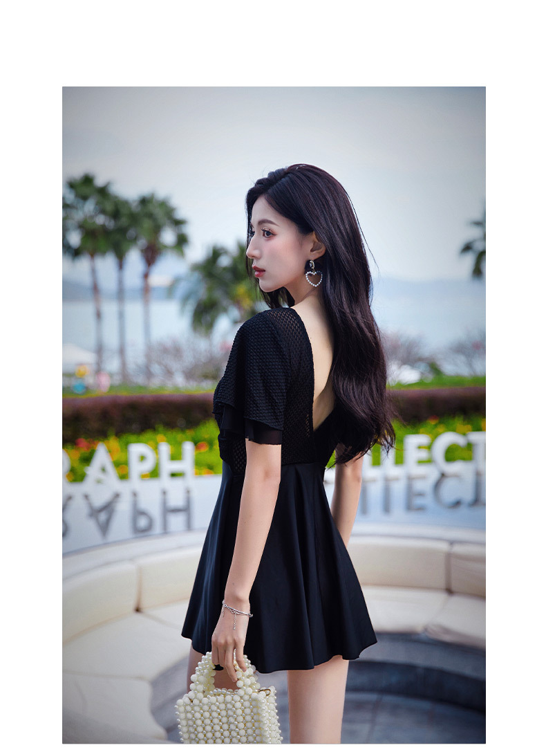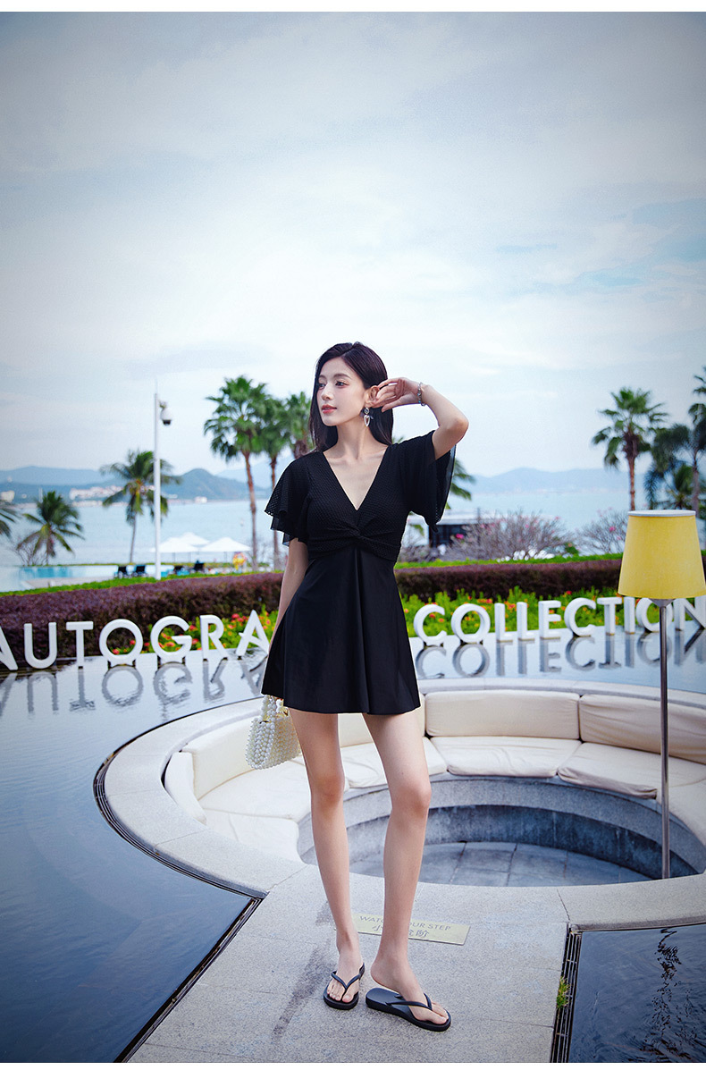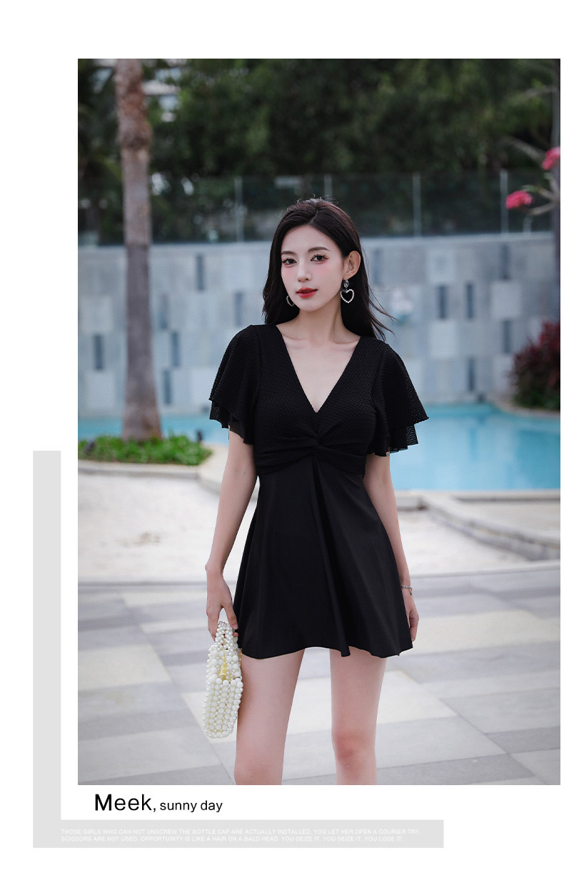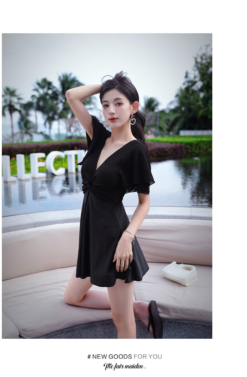 검은 색 고급 수영복 여성 온천 2024 새로운 원피스 플러스 사이즈 통통녀 고기 덮음 큰 가슴 수영복스토어 가기