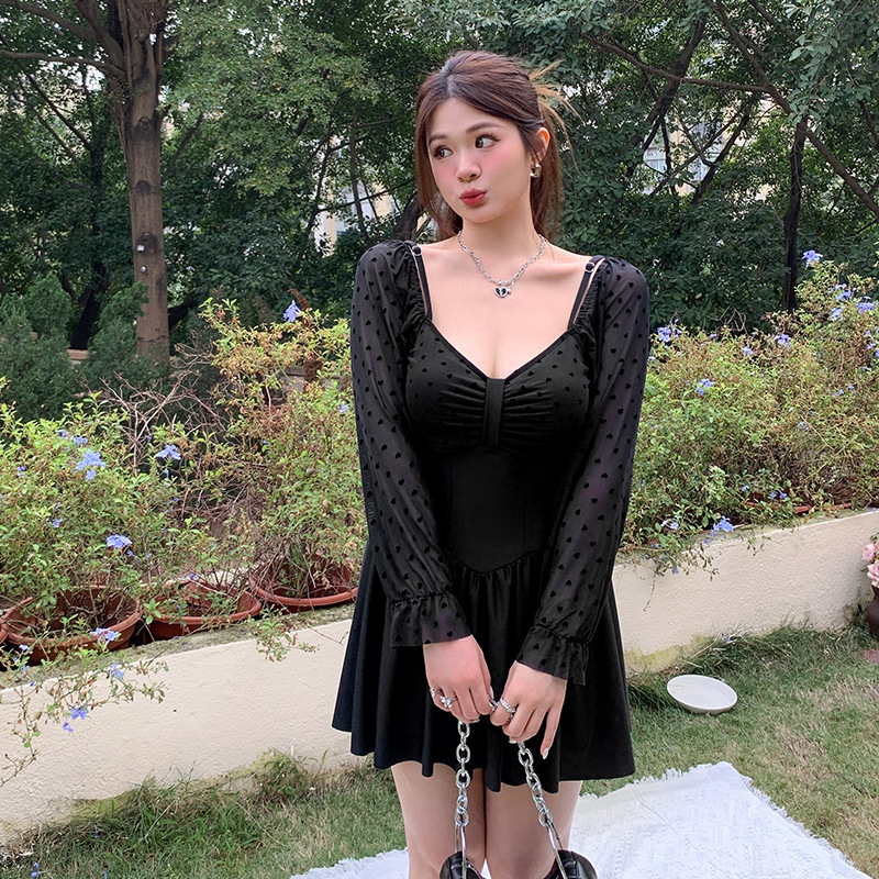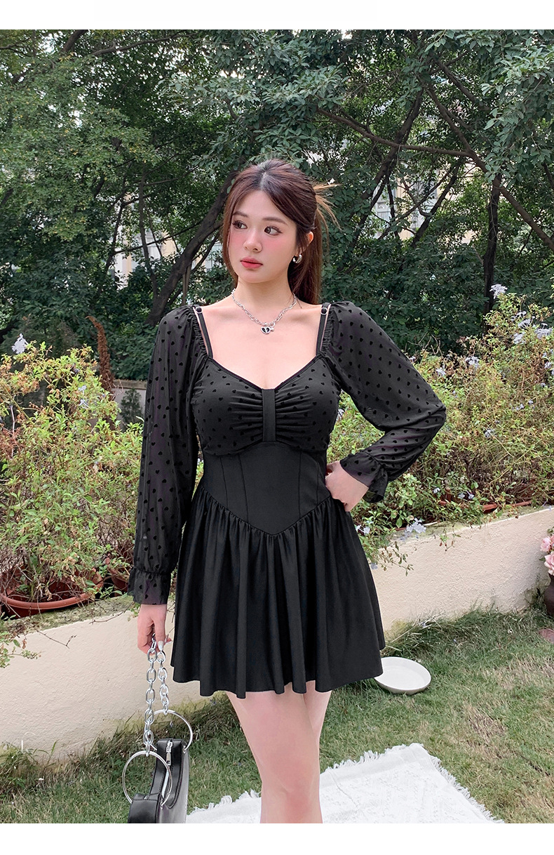 온천 휴가 수영복 여성 레이스 섹시한 강철 브래킷이 큰 가슴 원피스 원피스 슬리밍 긴 소매 플러스 사이즈 수영복을 밀어 올립니다.