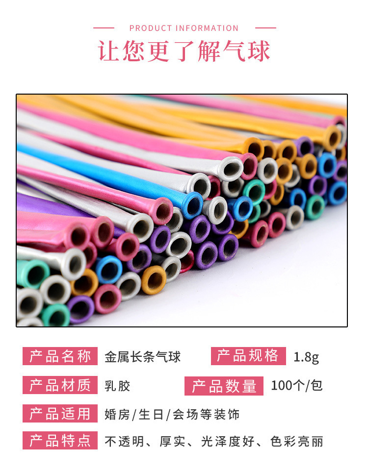 1.8g 금속 긴 풍선 두꺼운 마술 풍선 땋은 풍선 생일 파티 장식 배열 긴 풍선