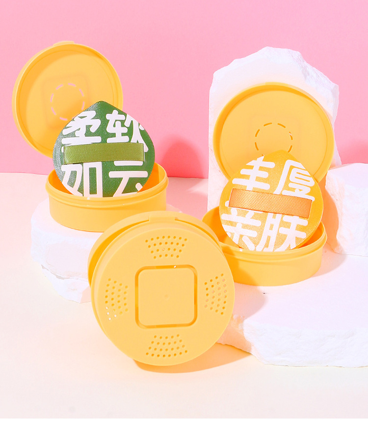 코튼 캔디 에어 쿠션 퍼프 노란색 카메라 저장 상자 빈 상자 통기성 8cm 큰 둥근 퍼프 상자 구멍스토어 가기