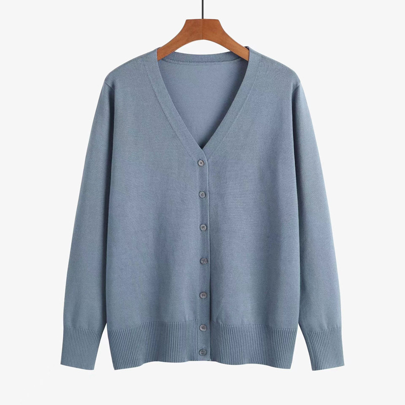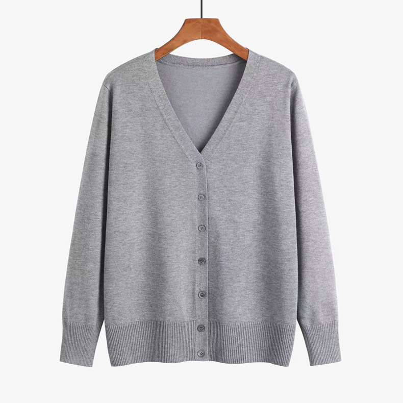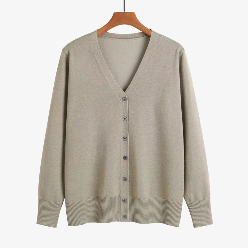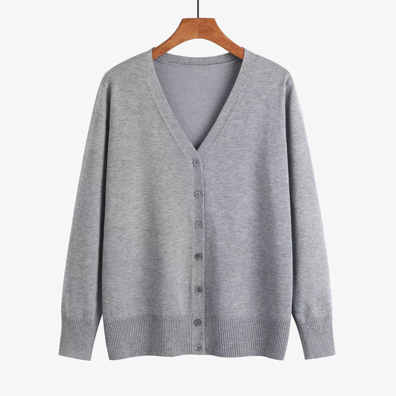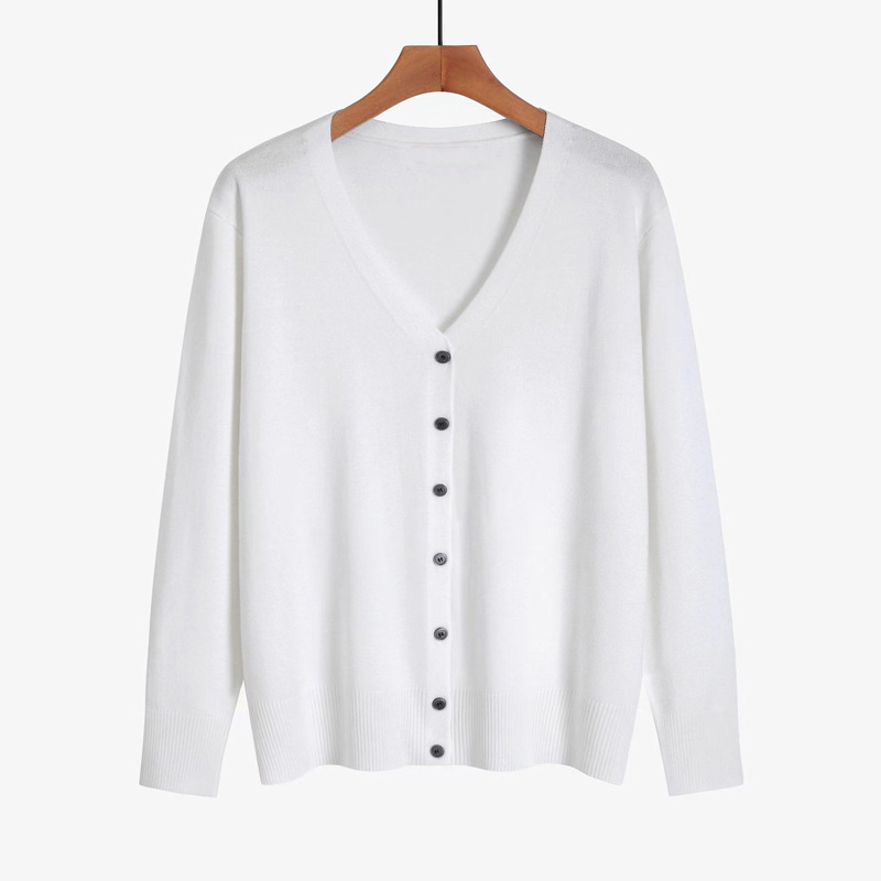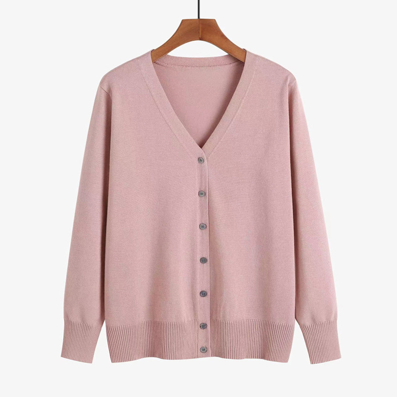 봄 새로운 양모 V 넥 니트 긴팔 여성용 서양식 카디건 단색 한국 스타일의 간단한 올 매치 코트 스웨터