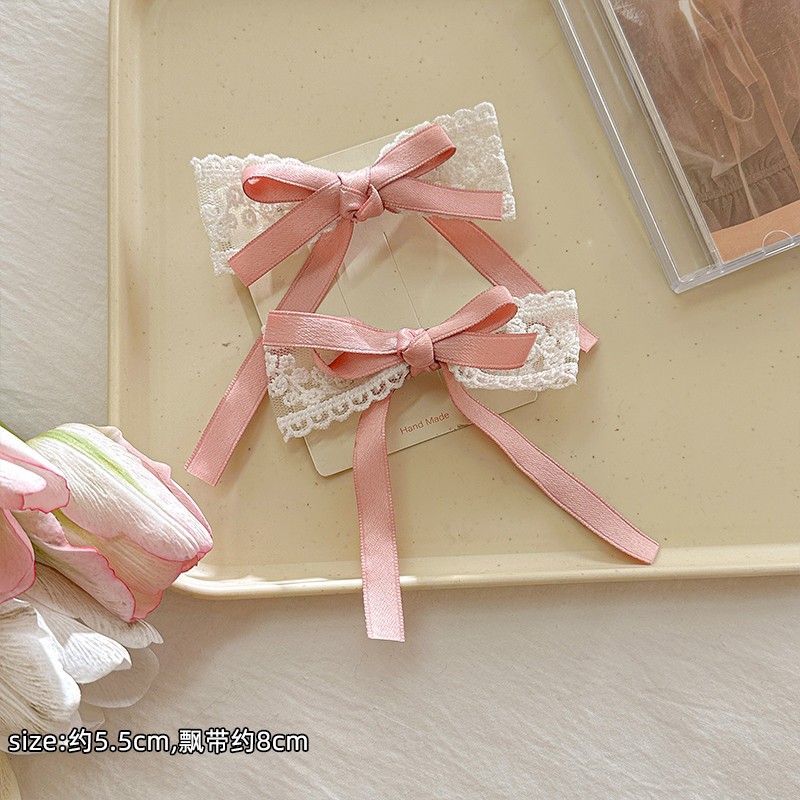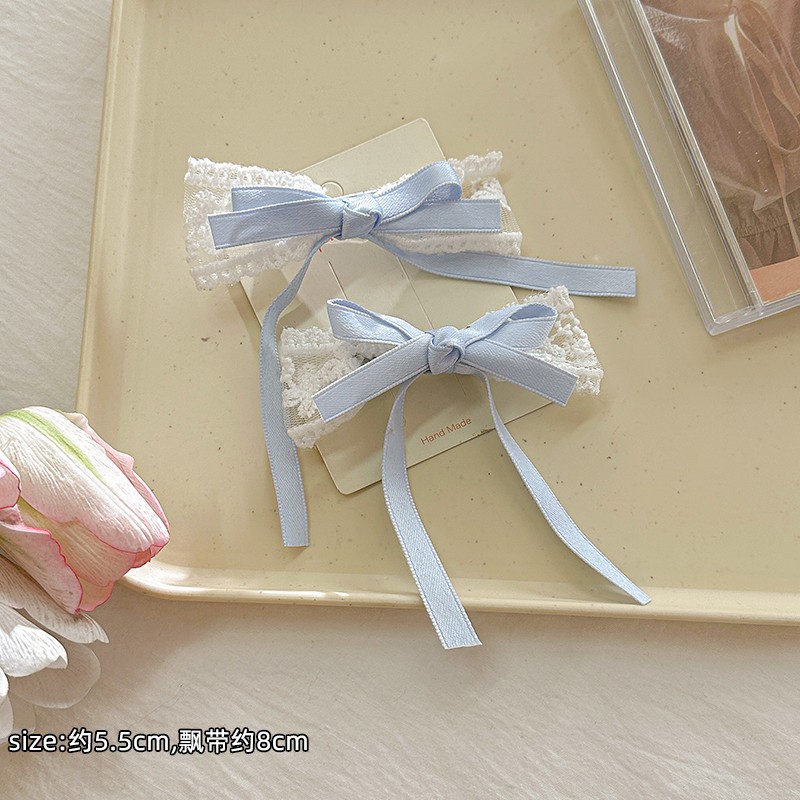에 레이스 활 리본 머리핀 여성 사이드 앞머리 클립 땋은 머리 클립 깨진 머리 덕빌 클립 머리 머리 장식 봄스토어 가기
