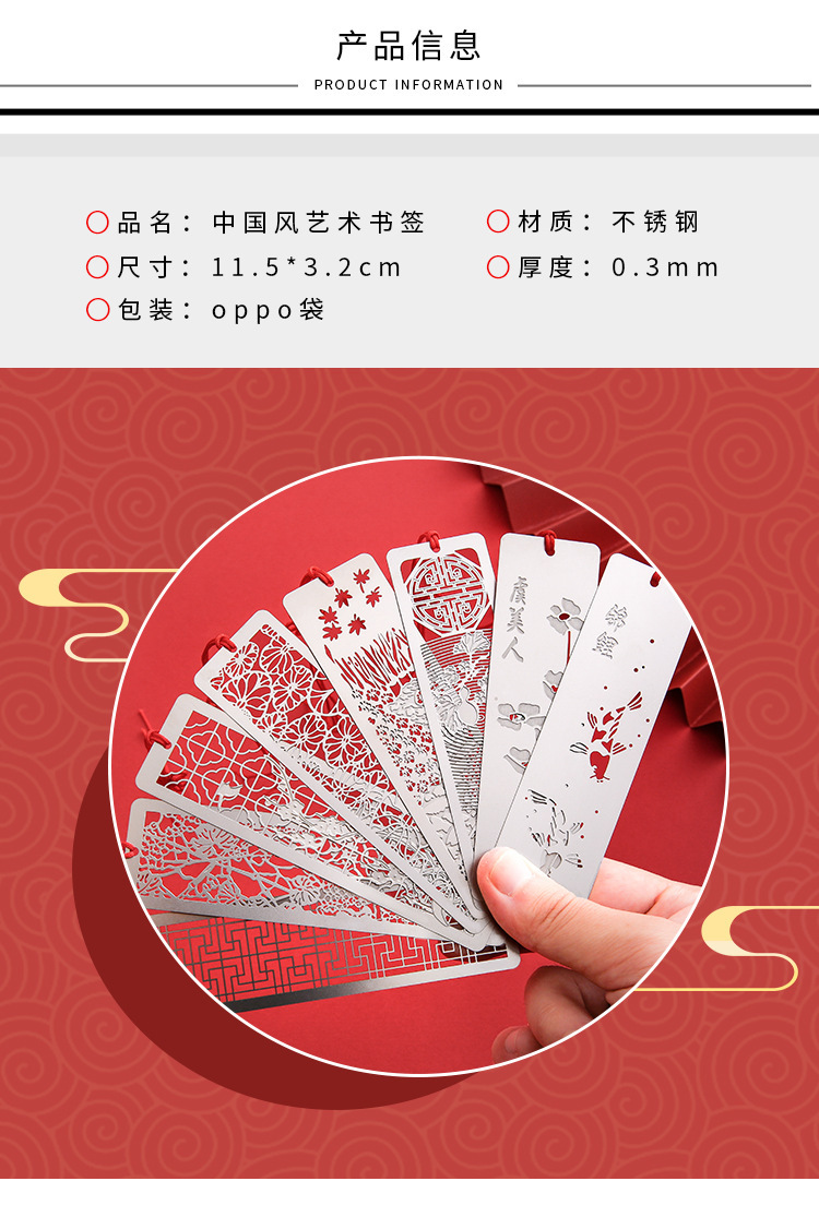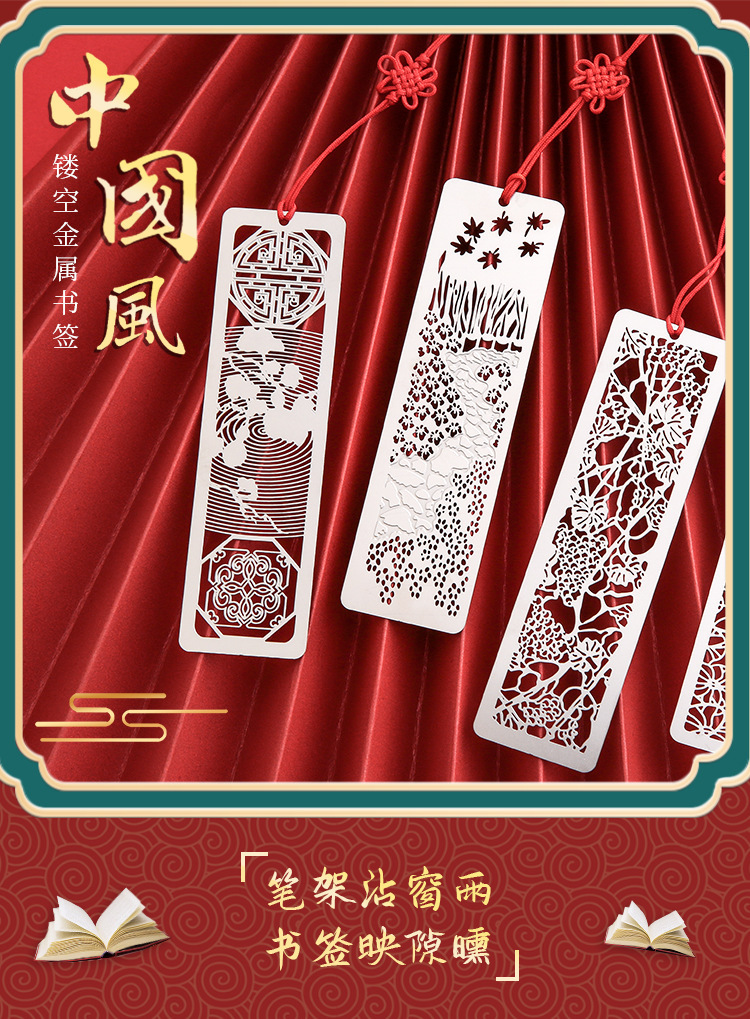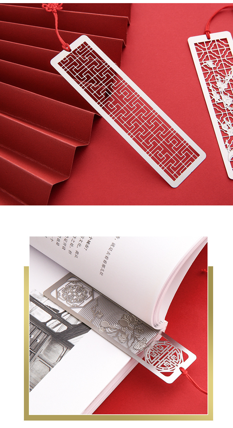창조적 인 중국 스타일 클래식 인 스타일 간단한 금속 스테인레스 스틸 중공 그물 레드 어린이 북마크 절묘한 책 페이지 클립