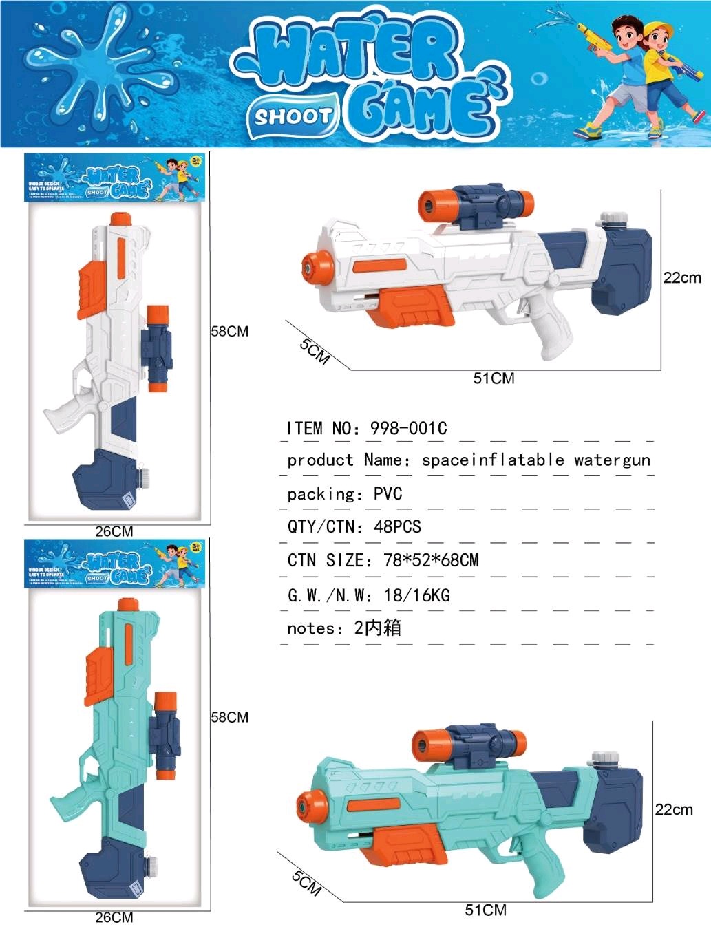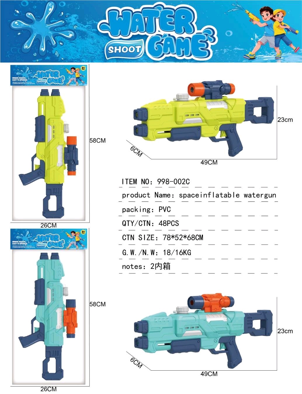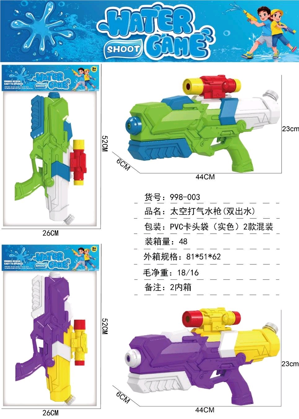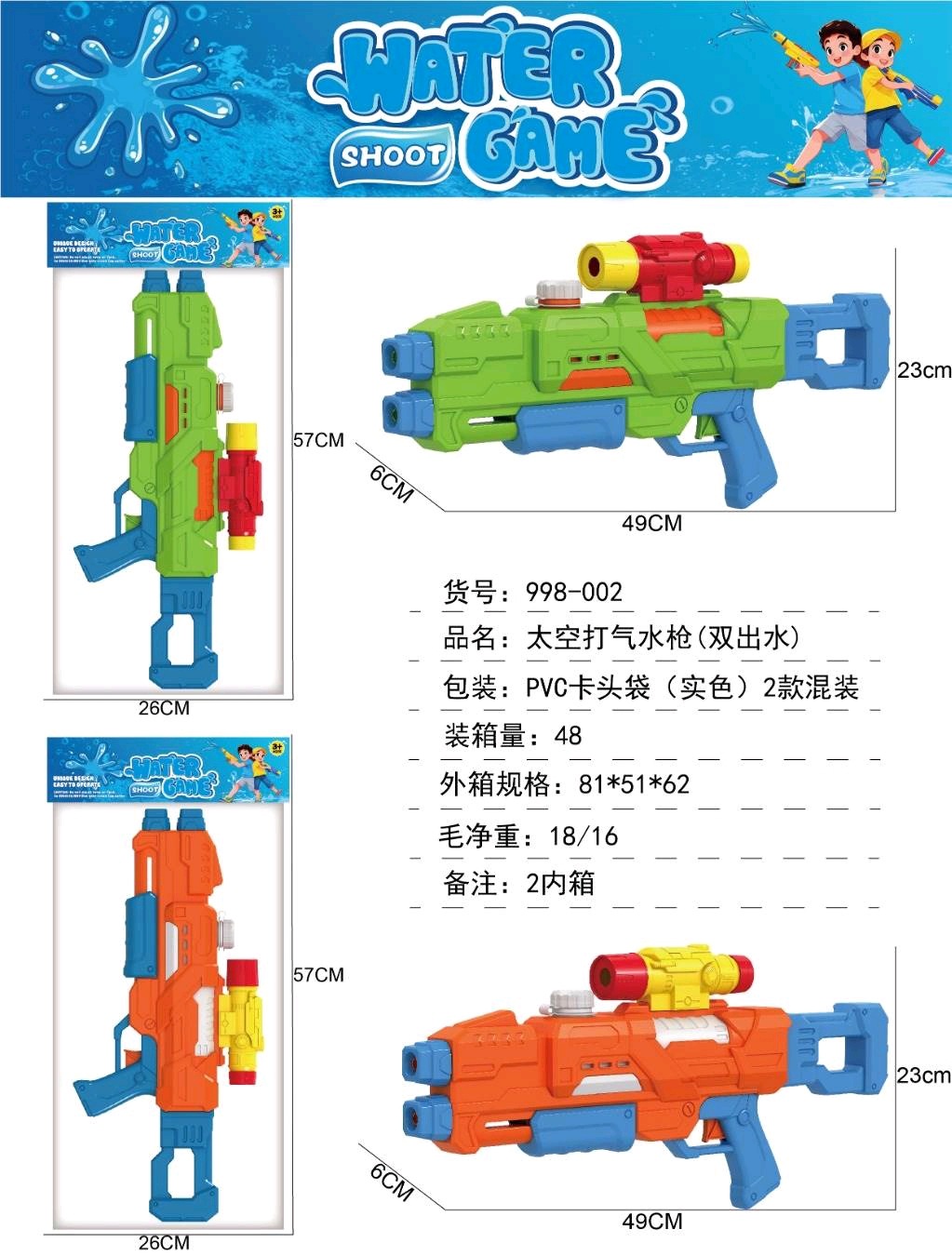 • 998-002C 공기주입식 물총(이중출수구)