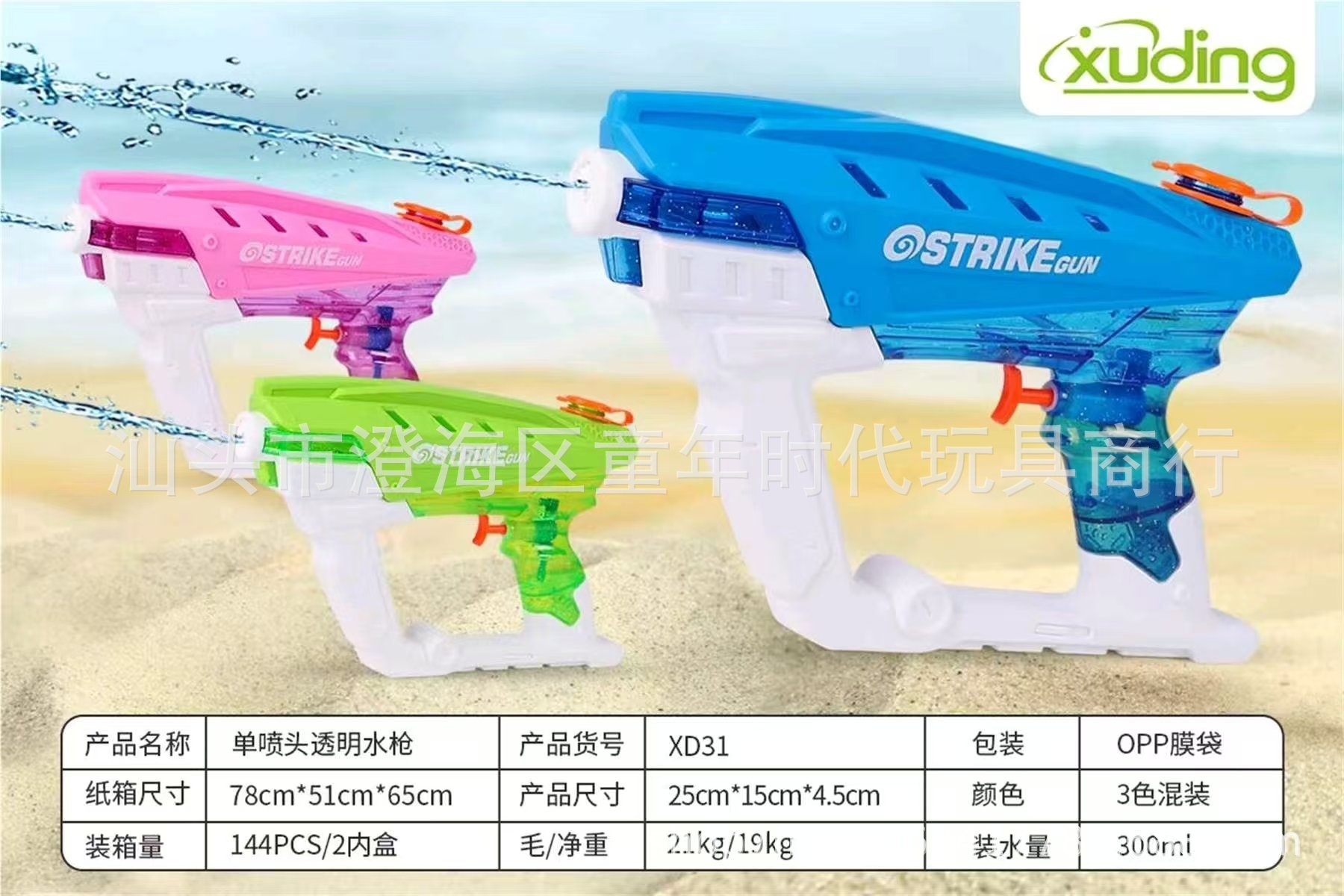국경을 넘는 새로운 어린이 물총 장난감은 물총 해변 장난감을 보여줍니다. 물 싸움 표류 부모-어린이 물 스프레이 장난감스토어 가기
