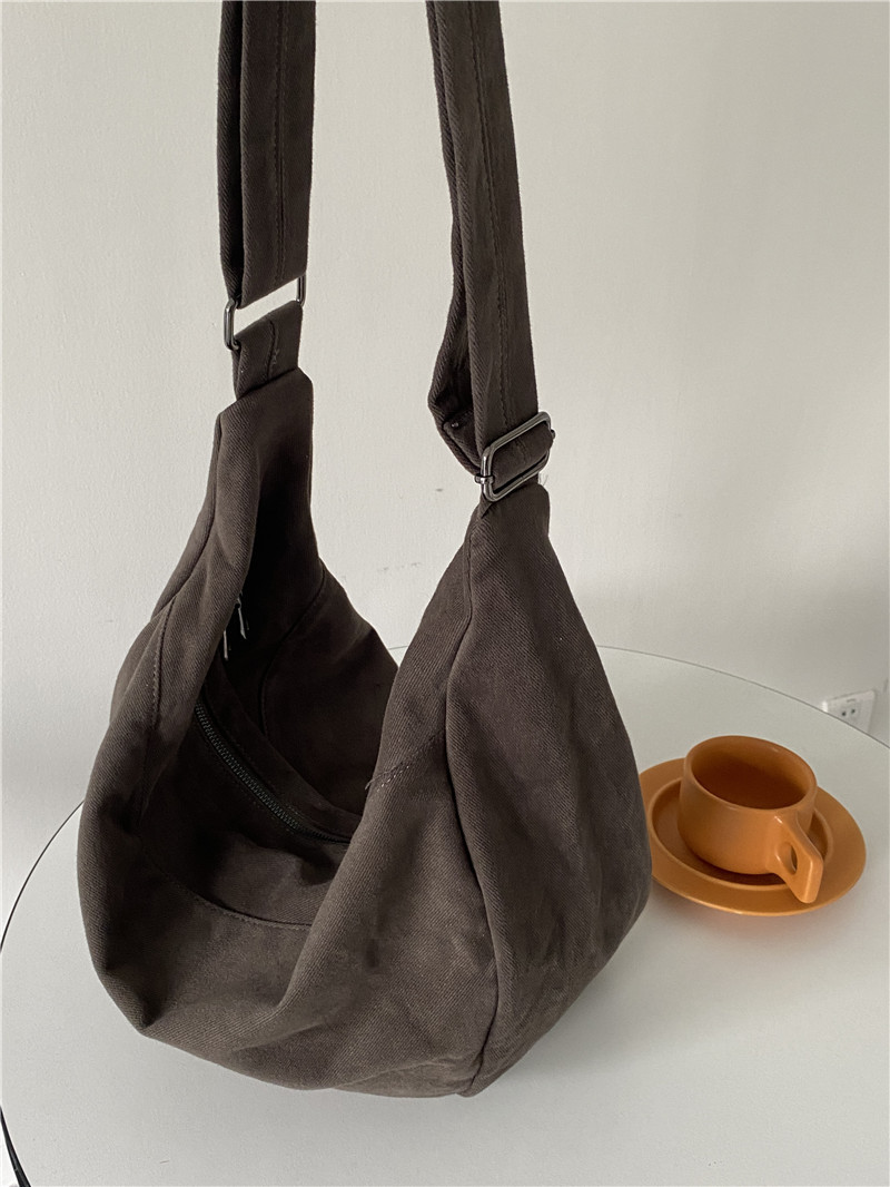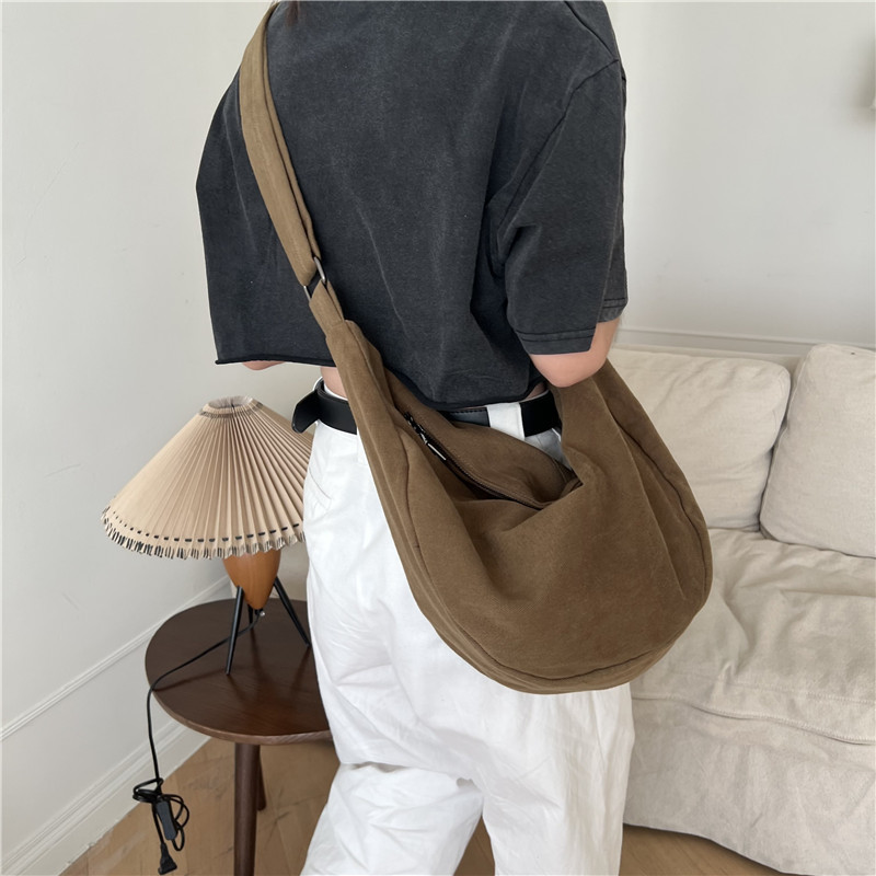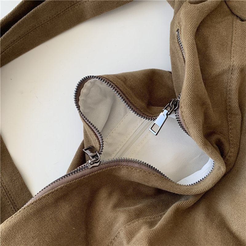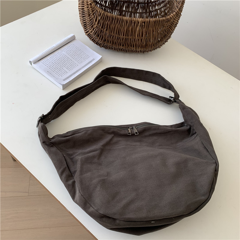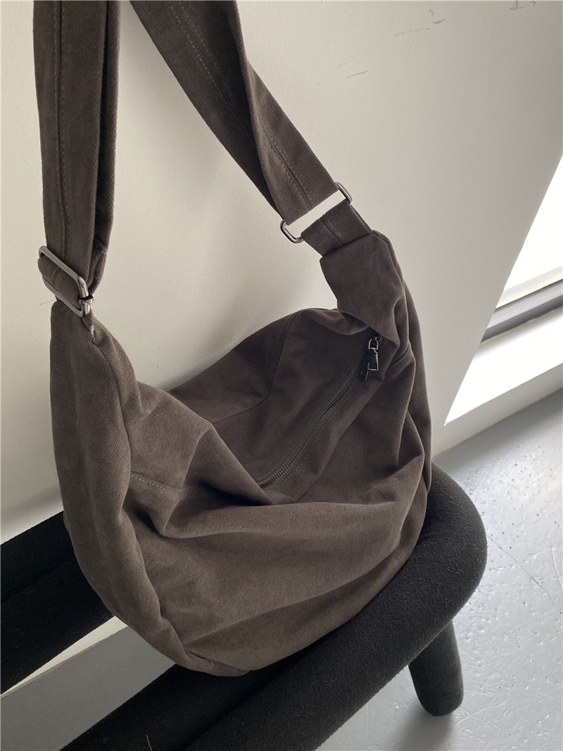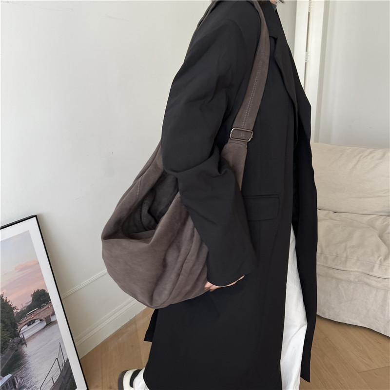레트로 다크 브라운 홍콩 스타일 크로스 바디 토트 백 대용량 가을과 겨울 새로운 하라주쿠 게으른 스타일 캔버스 숄더백 패션스토어 가기