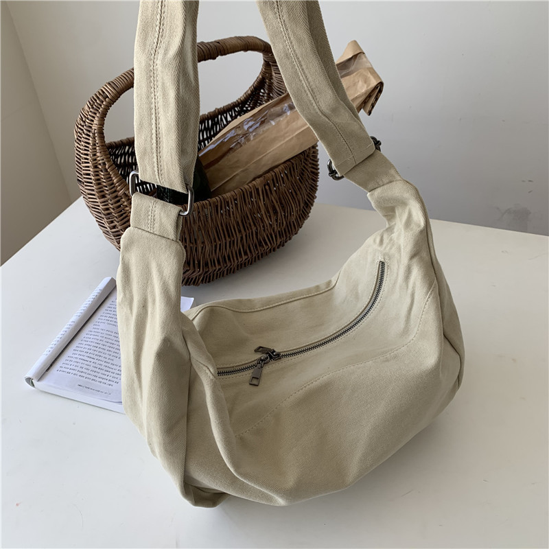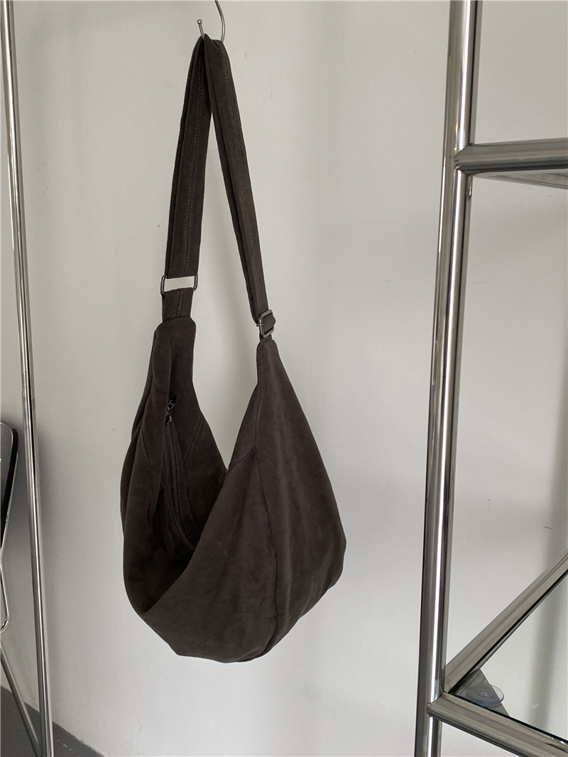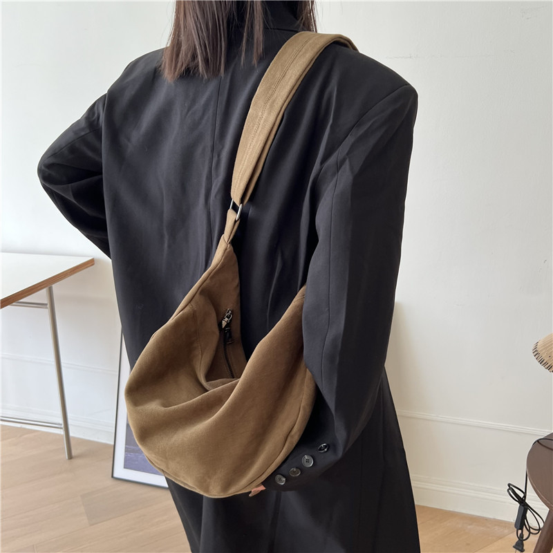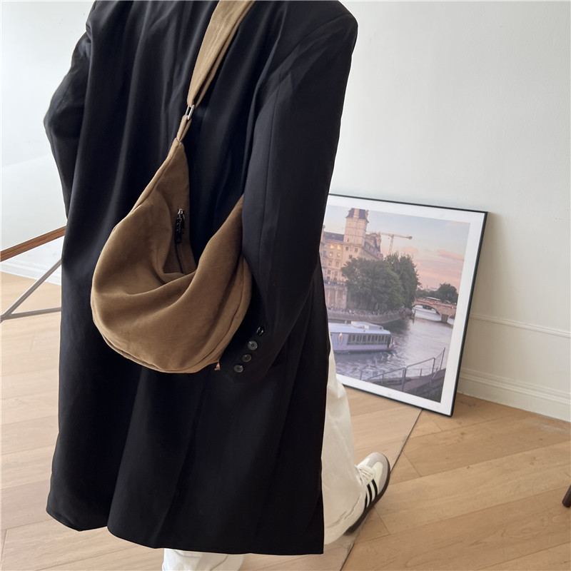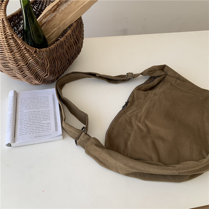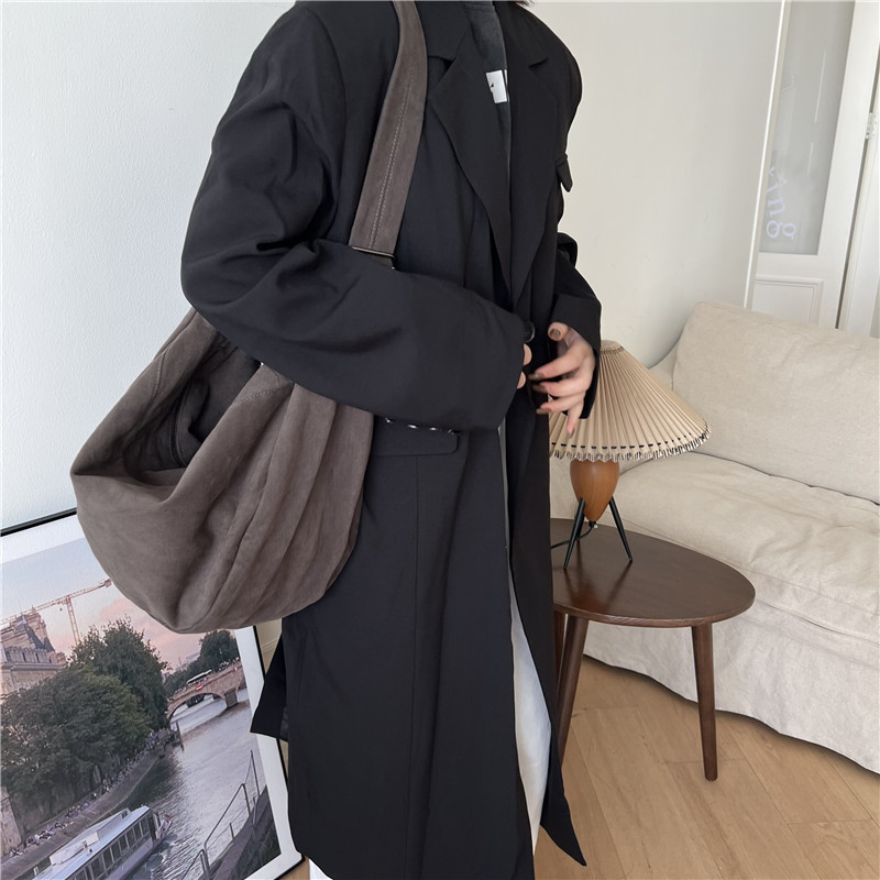 레트로 다크 브라운 홍콩 스타일 크로스 바디 토트 백 대용량 가을과 겨울 새로운 하라주쿠 게으른 스타일 캔버스 숄더백 패션스토어 가기