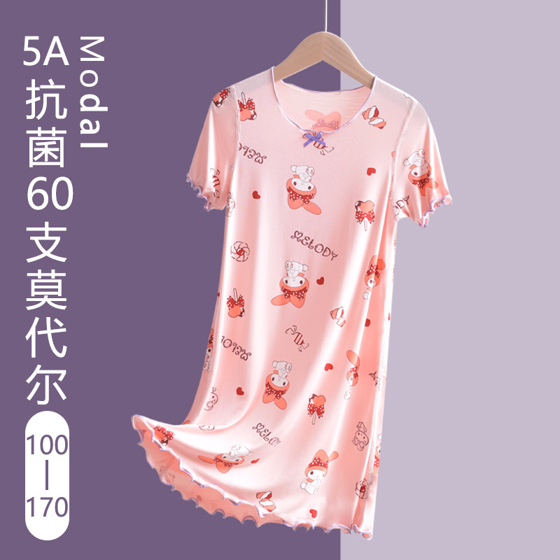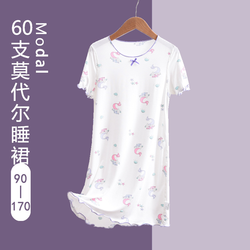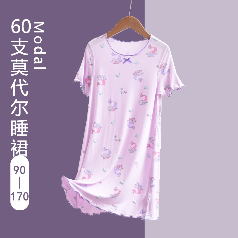 여자 잠옷 여름 얼음 실크 모달 어린이 잠옷 여름 아기 학생 소녀 홈 반팔 중대형 어린이스토어 가기