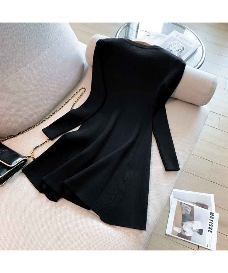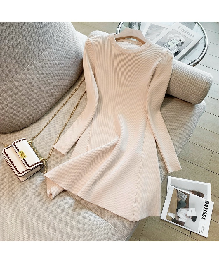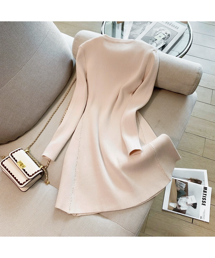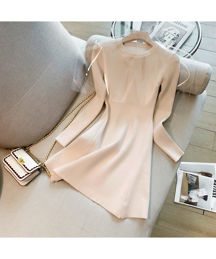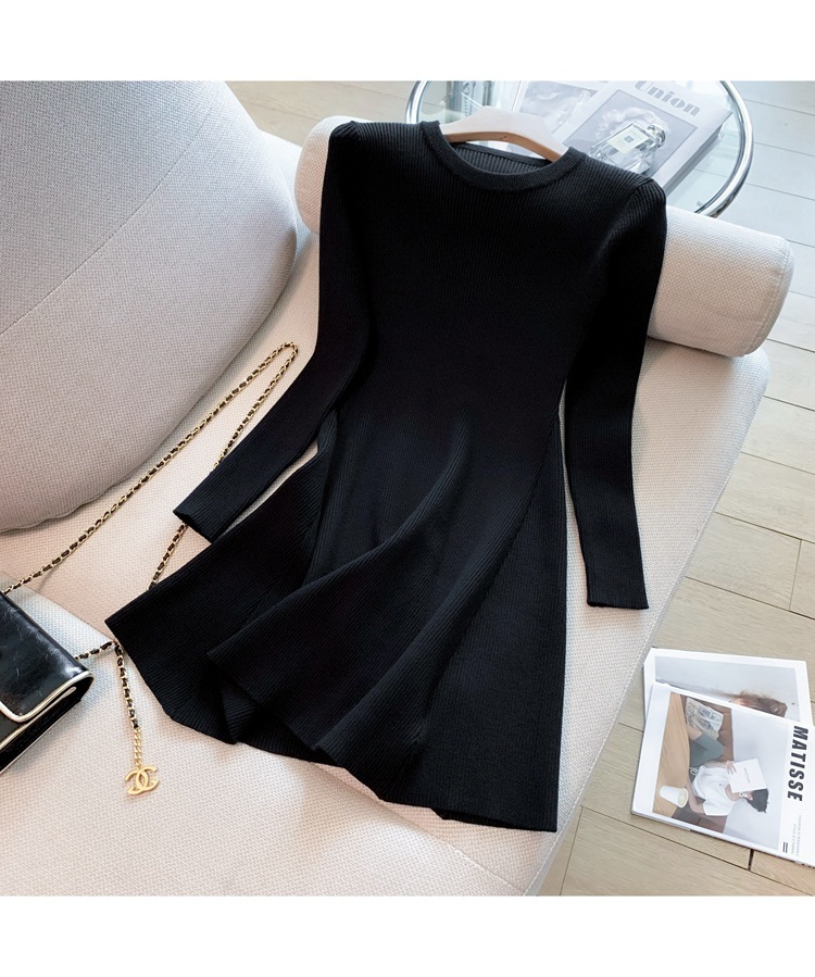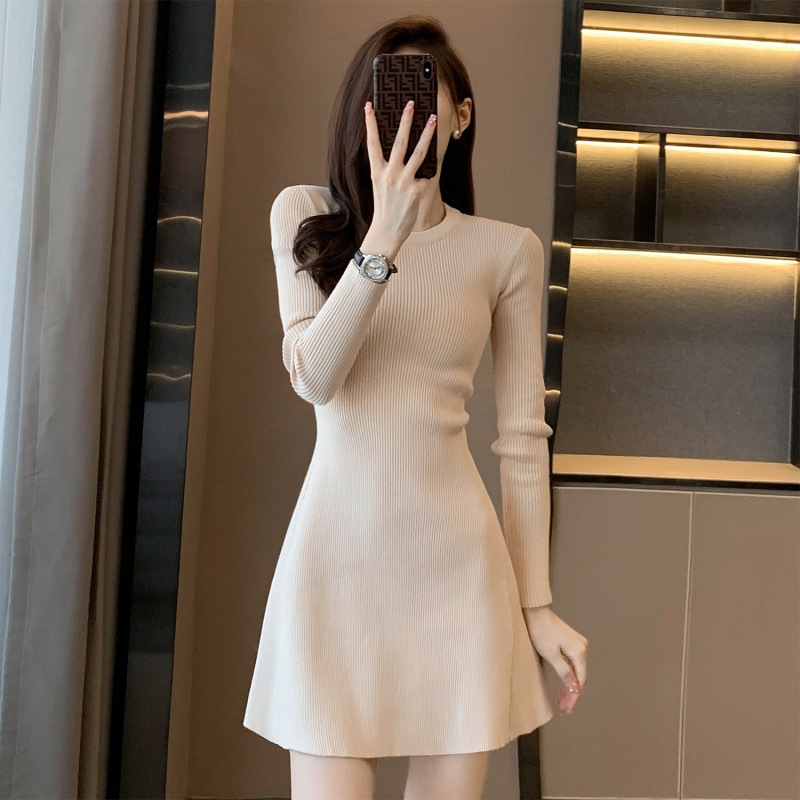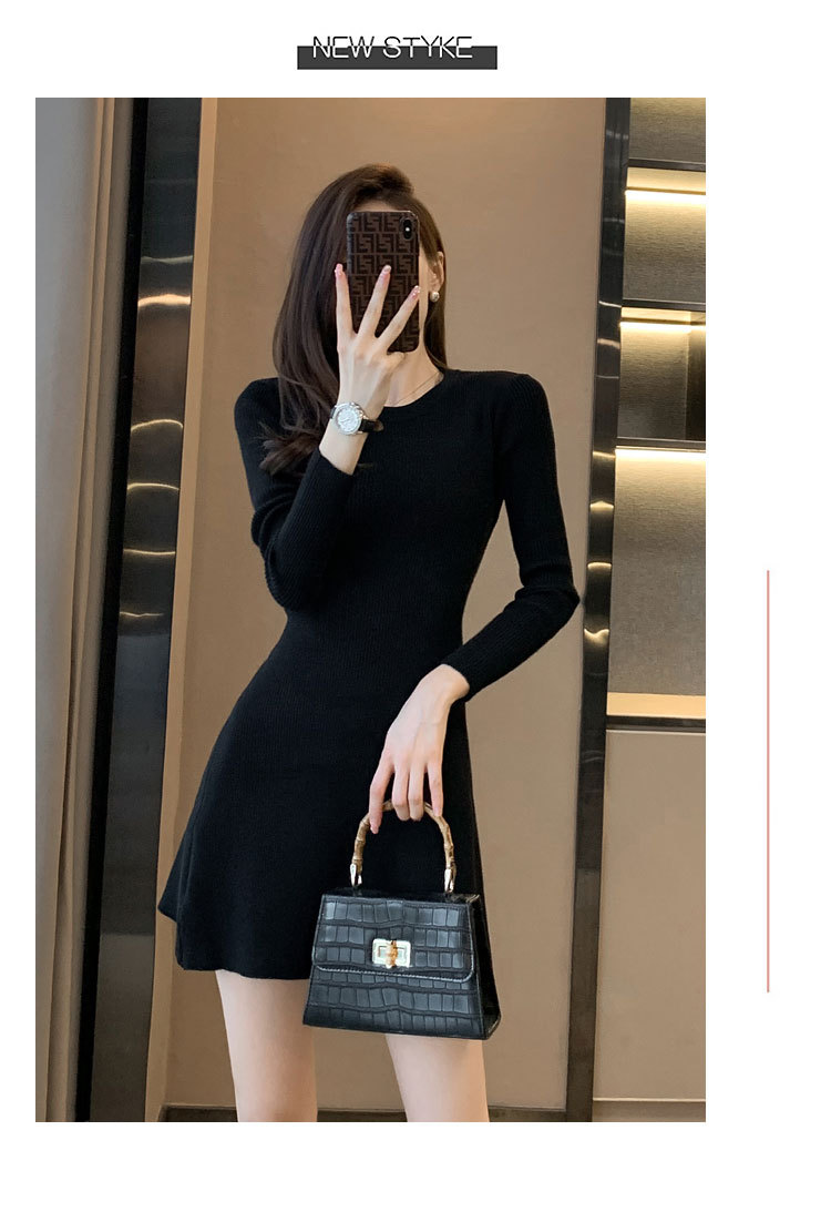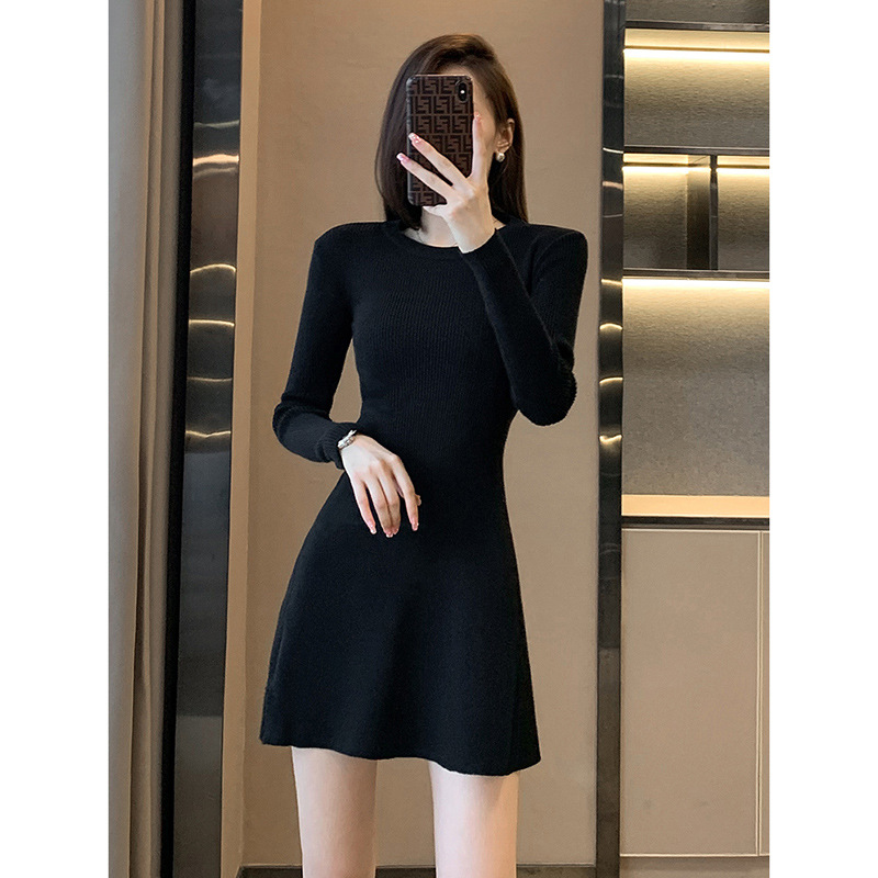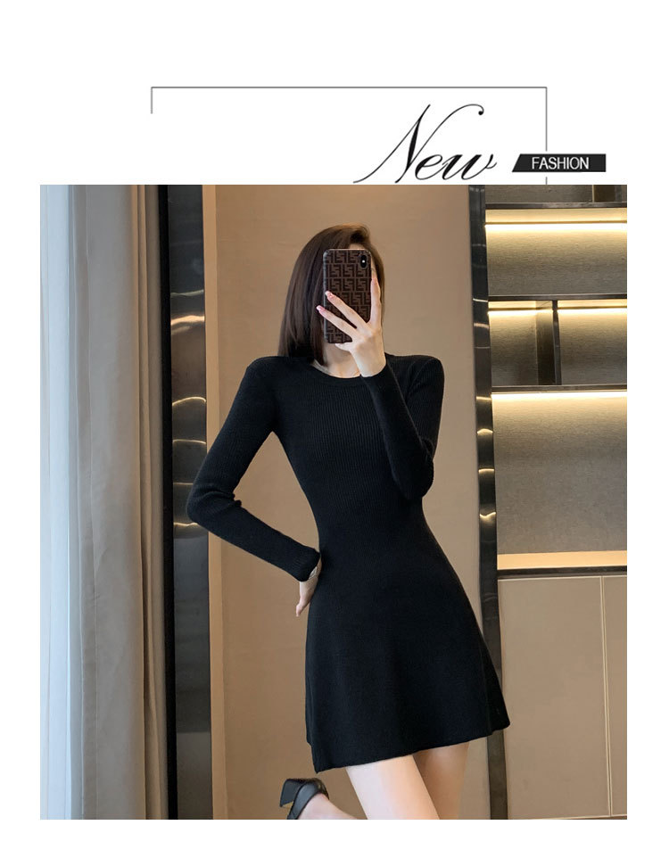 6843 가을 신상품 여성용 미니 기장 니트 원피스, 슬림핏 니트 드레스스토어 가기