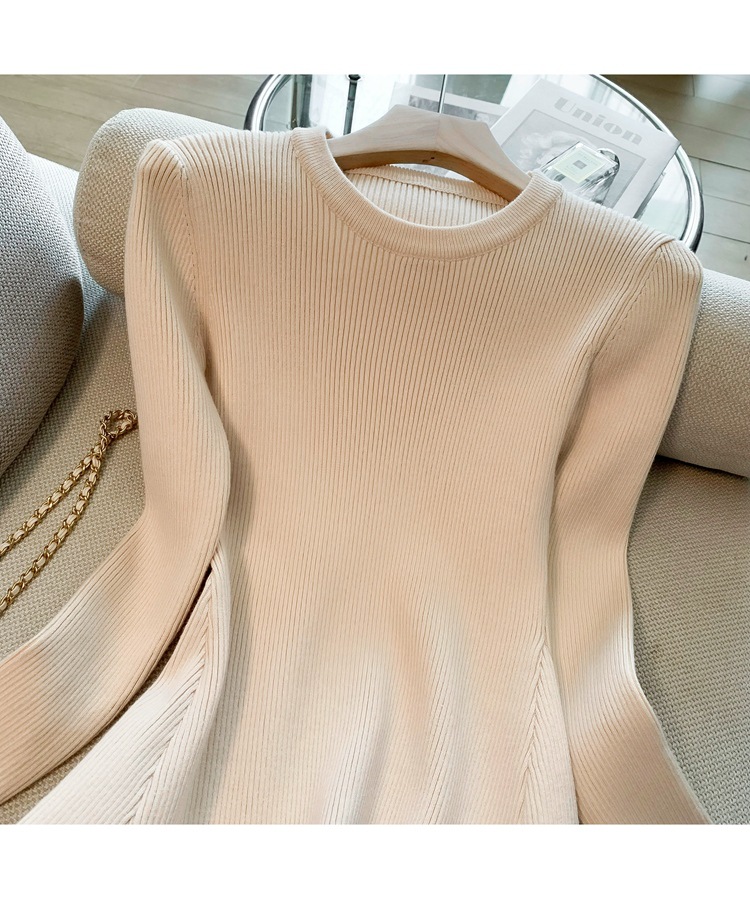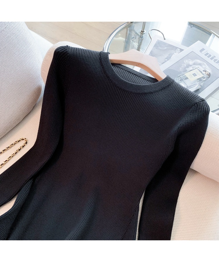 6843 가을 신상품 여성용 미니 기장 니트 원피스, 슬림핏 니트 드레스