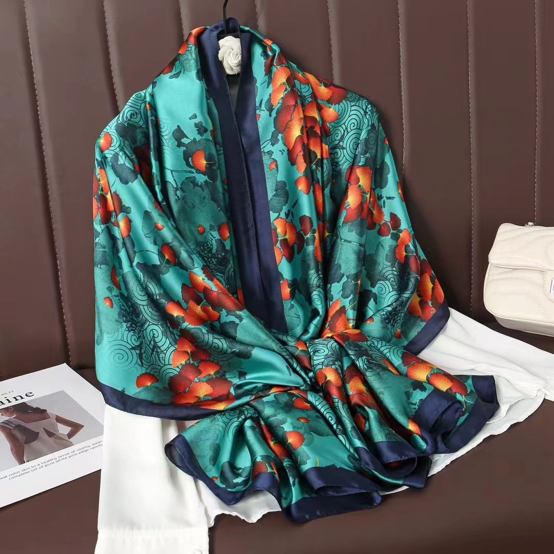 봄과 여름 한국 스타일 식물 컬러 은행 나무 예 리 브로케이드 긴 실크 스카프 선물 우아한 우아한 여성 목도리