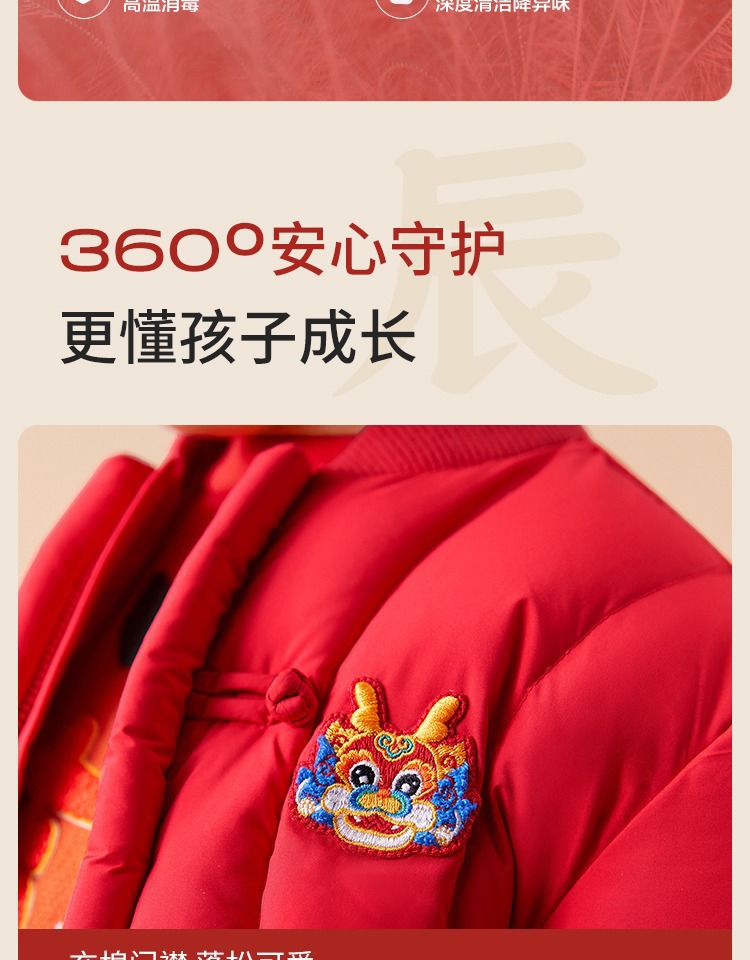 2024 새 어린이 다운 재킷 소년 아기 용 조디악 코트 새해 붉은 소녀 새해 인사말 옷 봄 축제