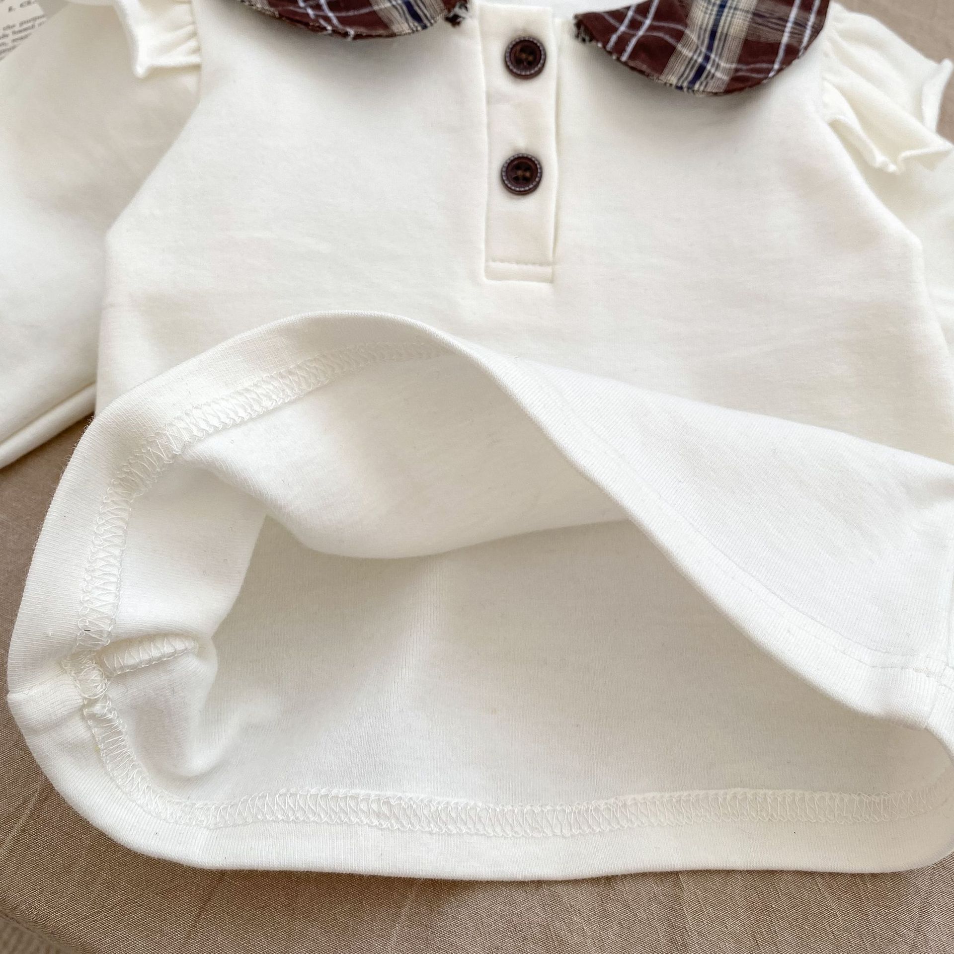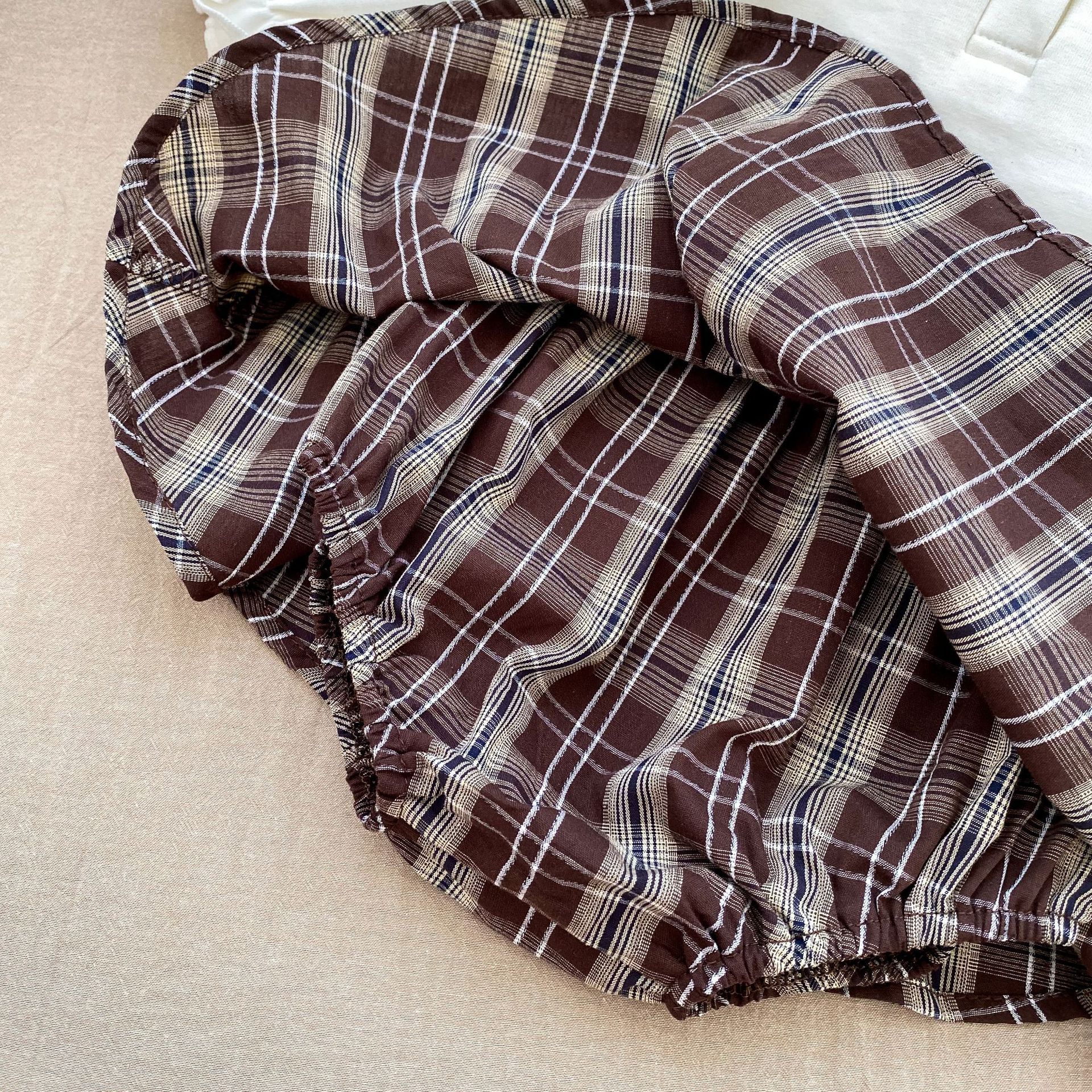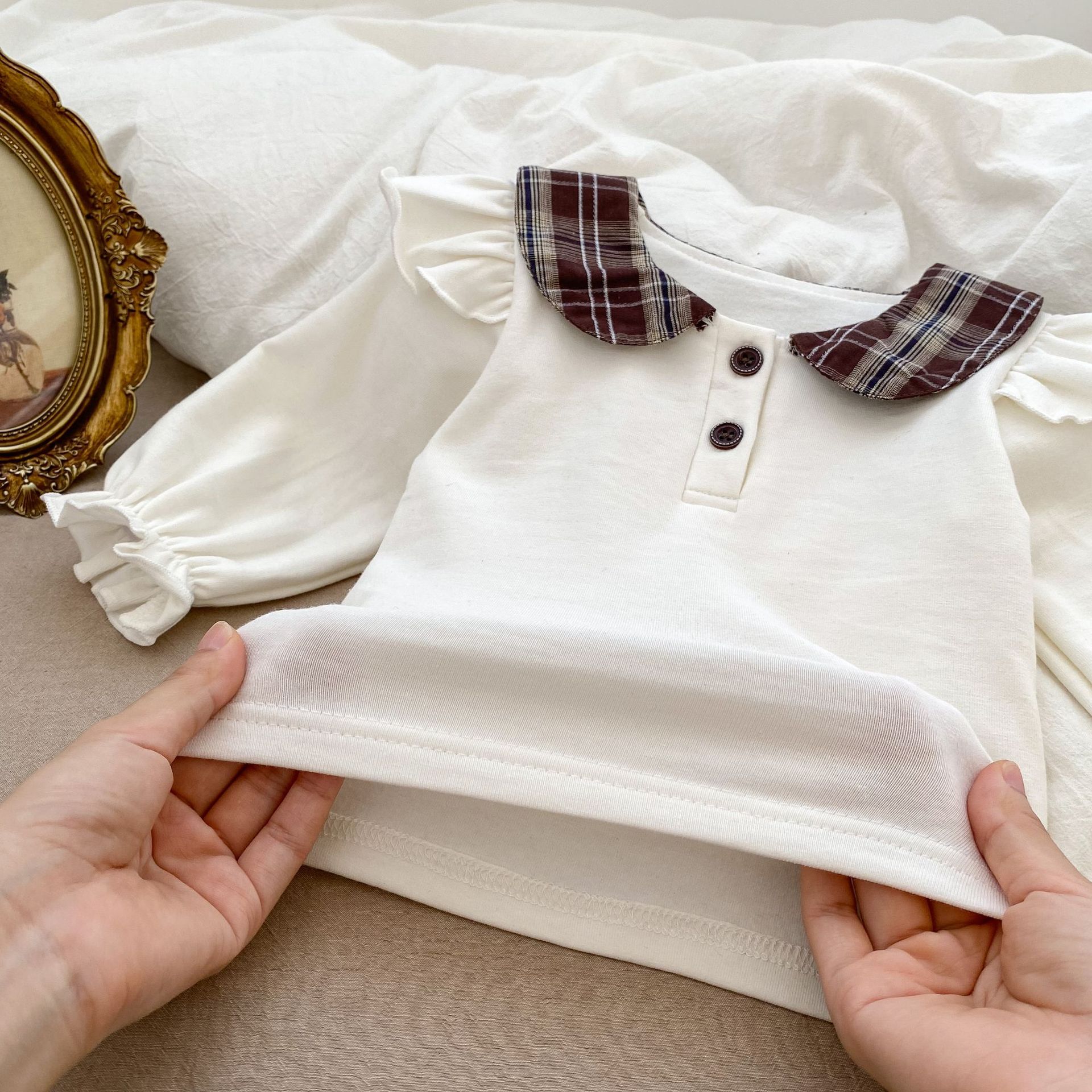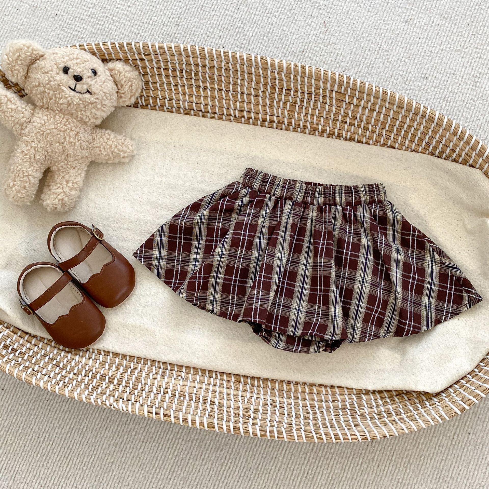 2025 봄 아기 소녀 달콤한 대학 스타일 정장 긴팔 라운드 넥 대비 색 티셔츠 격자 무늬 주름 가방 스커트 바지스토어 가기