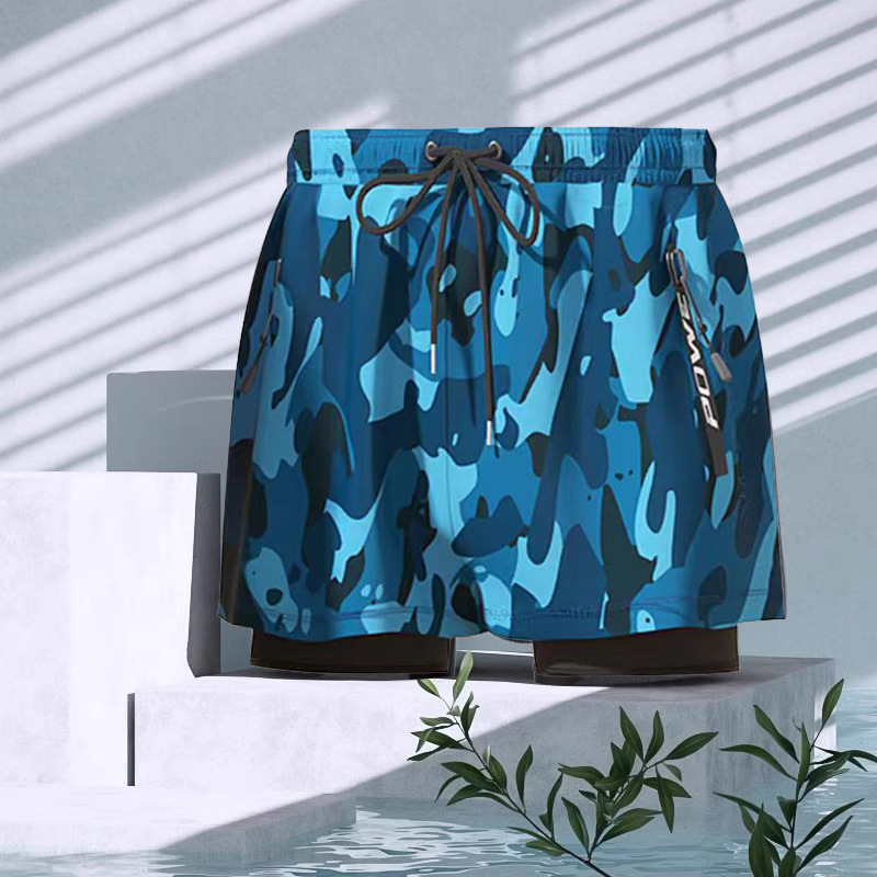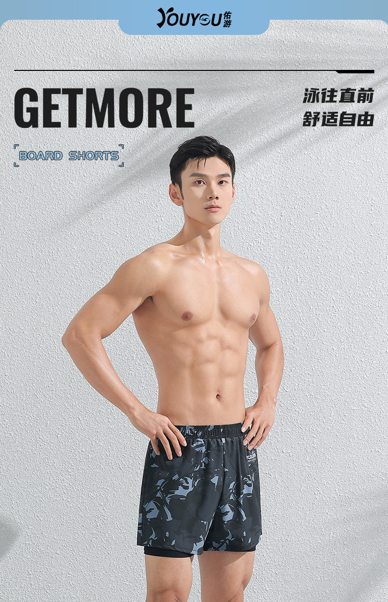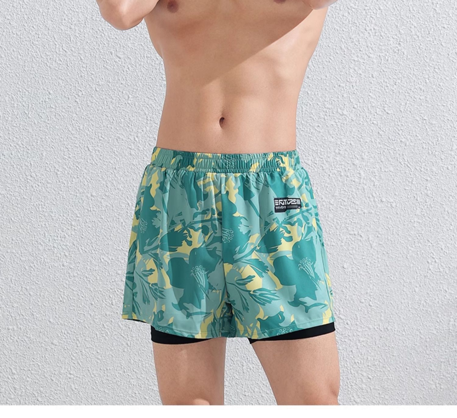남성 수영 트렁크 가짜 투피스 인쇄 유행 편안한 통기성 플러스 사이즈 보수적 인 안티 당황스러운 수영장 휴가 온천 수영복