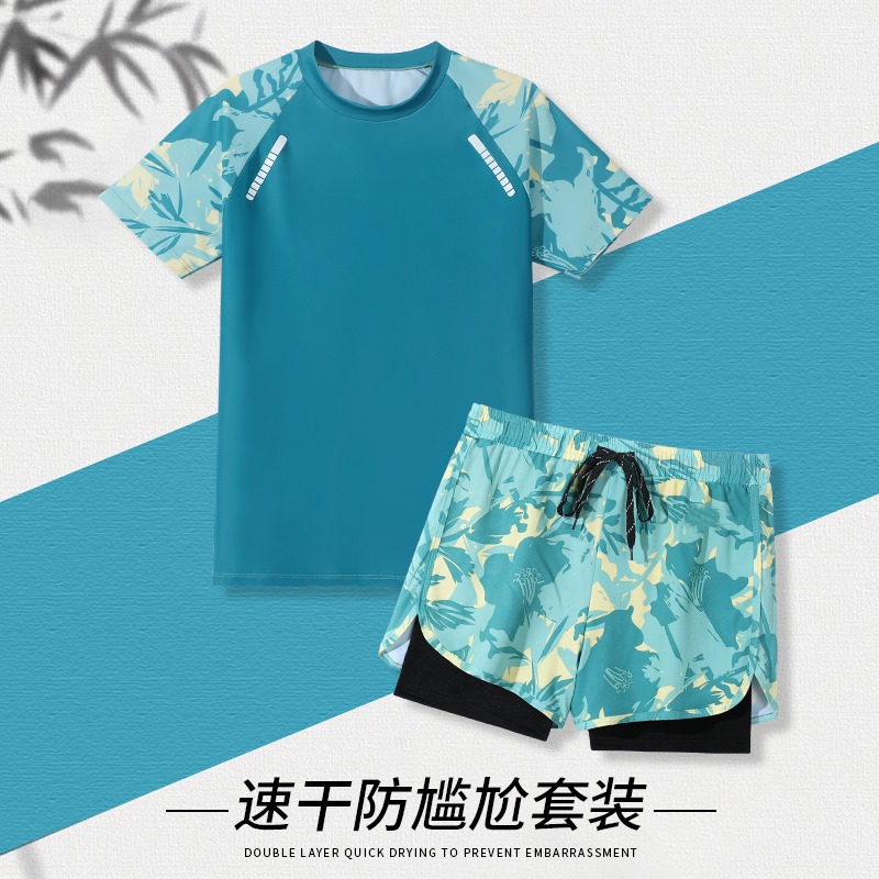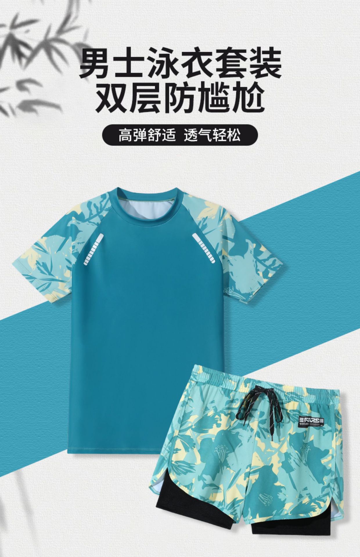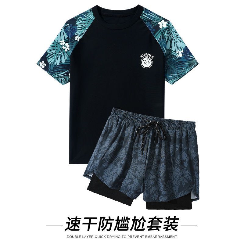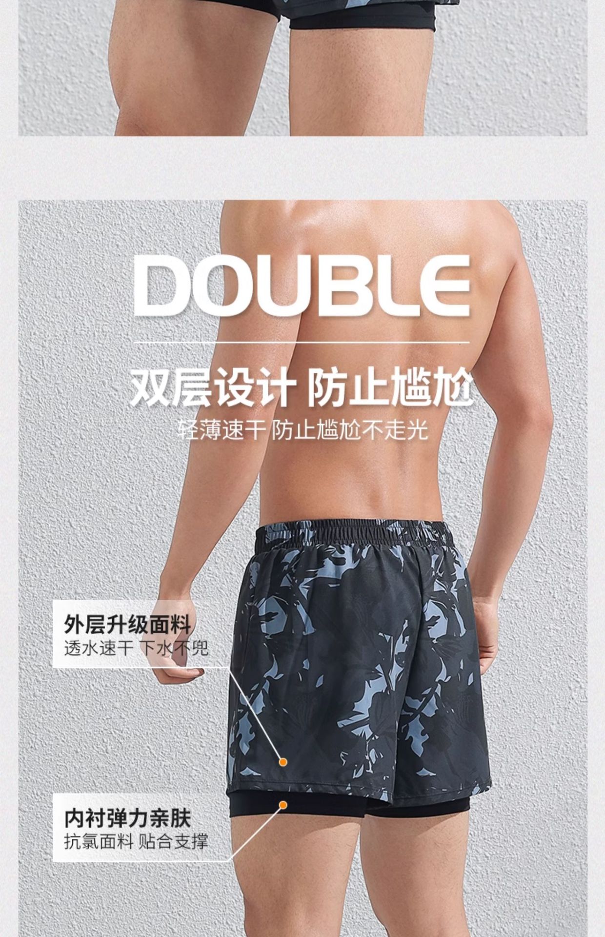 남성 수영 트렁크 가짜 투피스 인쇄 유행 편안한 통기성 플러스 사이즈 보수적 인 안티 당황스러운 수영장 휴가 온천 수영복스토어 가기