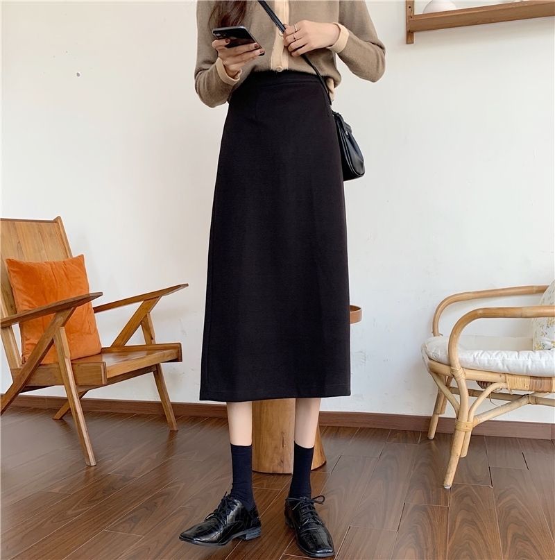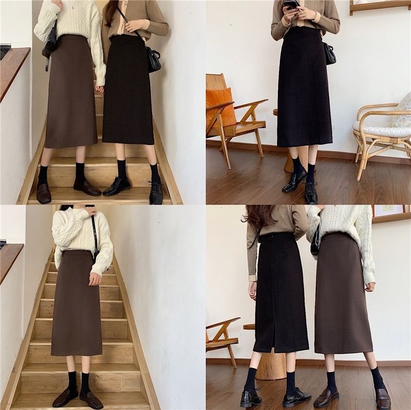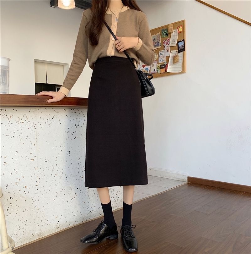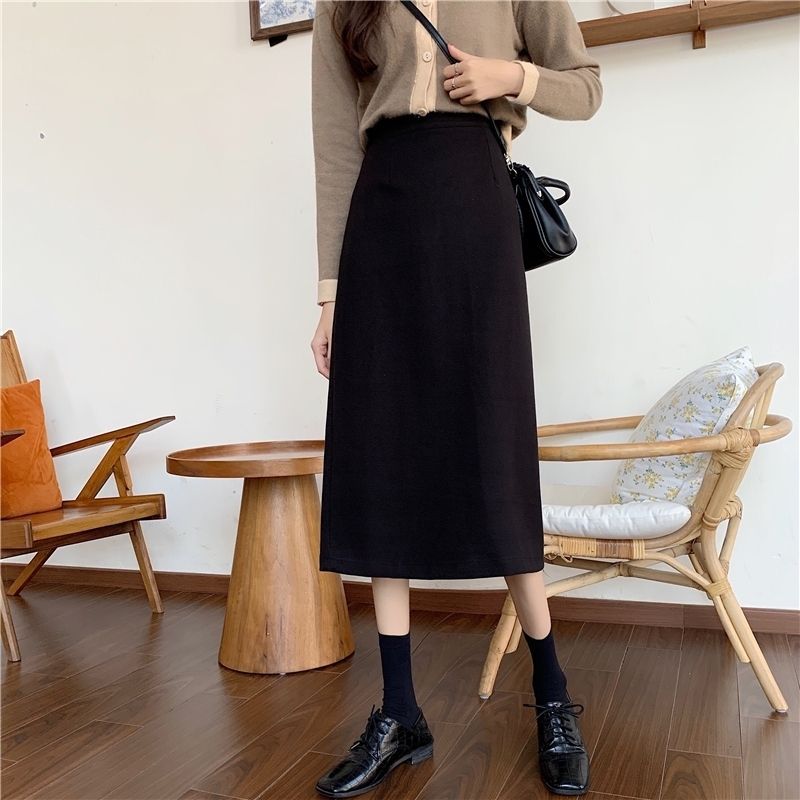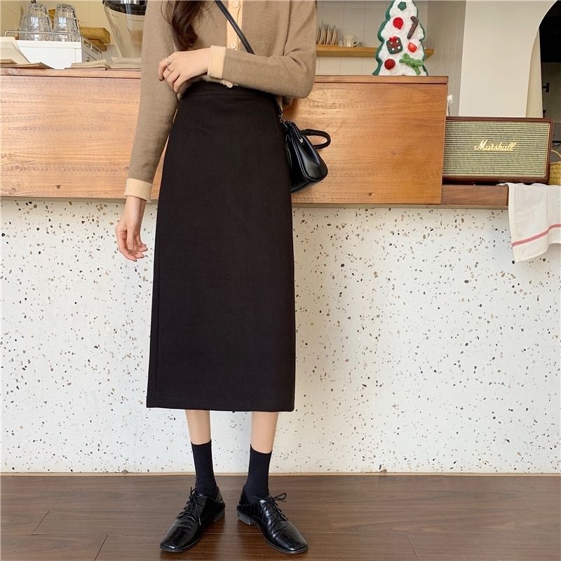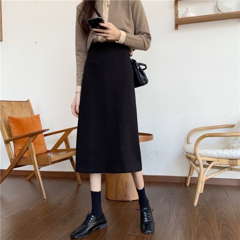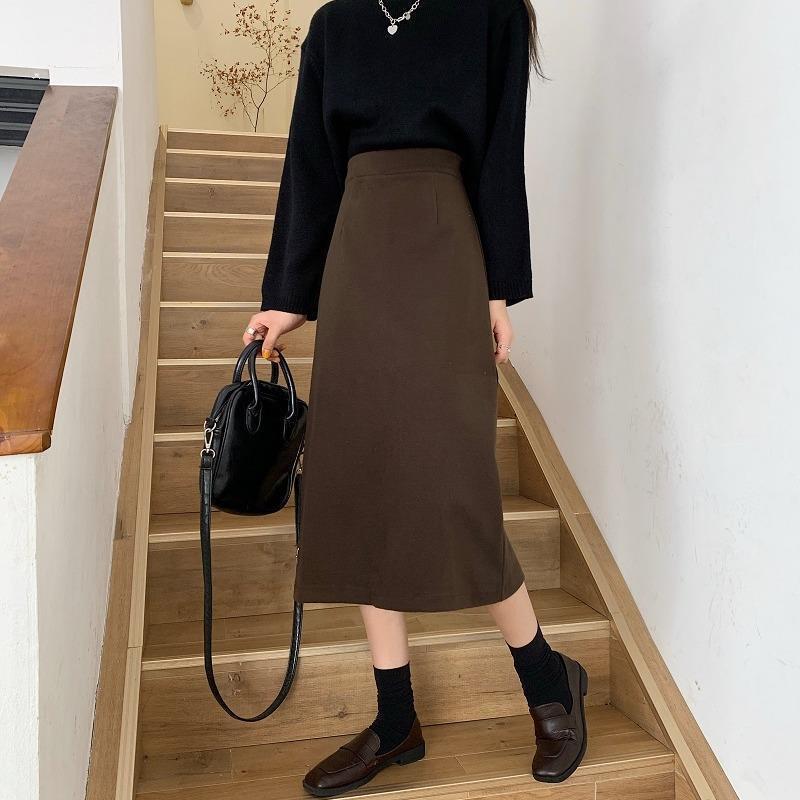 2024 봄 슬림 핏 하이 웨이스트 미드 길이 스커트 일본과 한국 캐주얼 스타일 A 라인 다용도 스플릿 스커트 여성스토어 가기