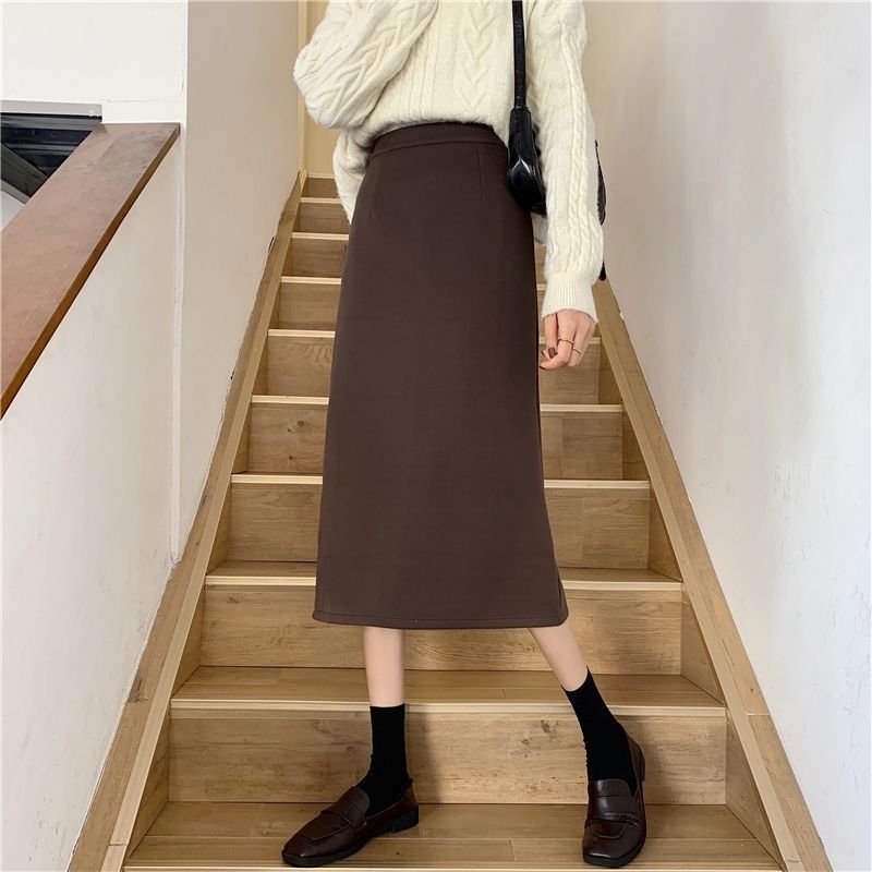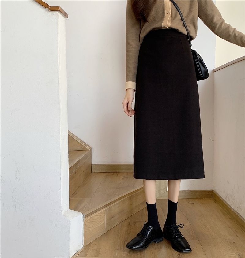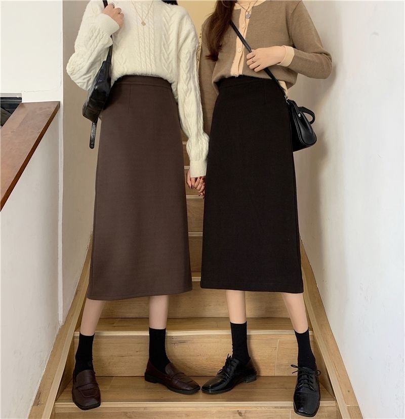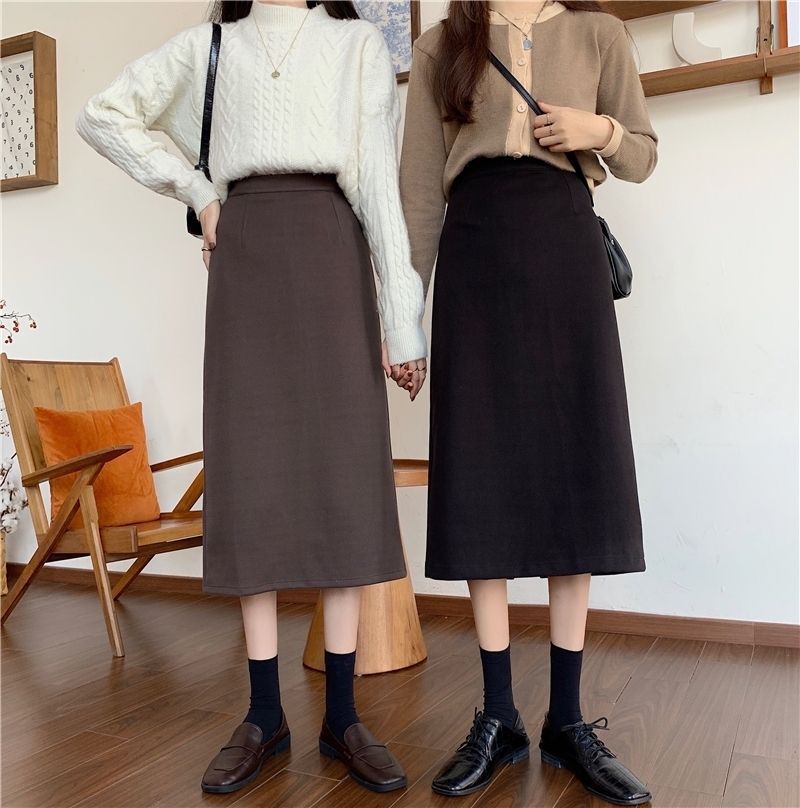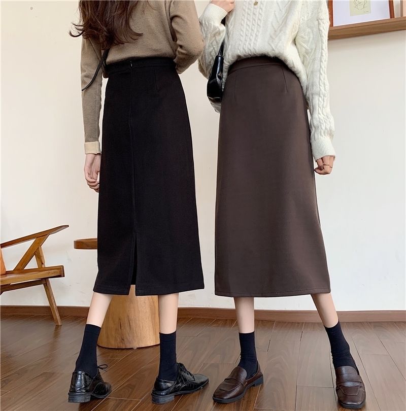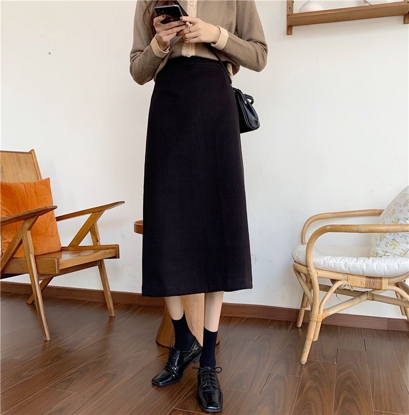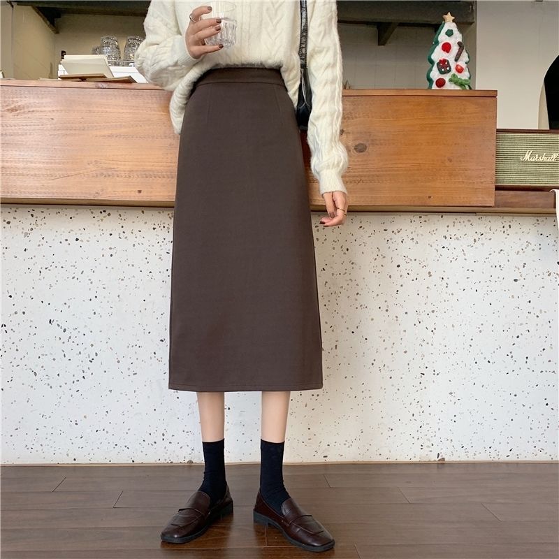 2024 봄 슬림 핏 하이 웨이스트 미드 길이 스커트 일본과 한국 캐주얼 스타일 A 라인 다용도 스플릿 스커트 여성스토어 가기