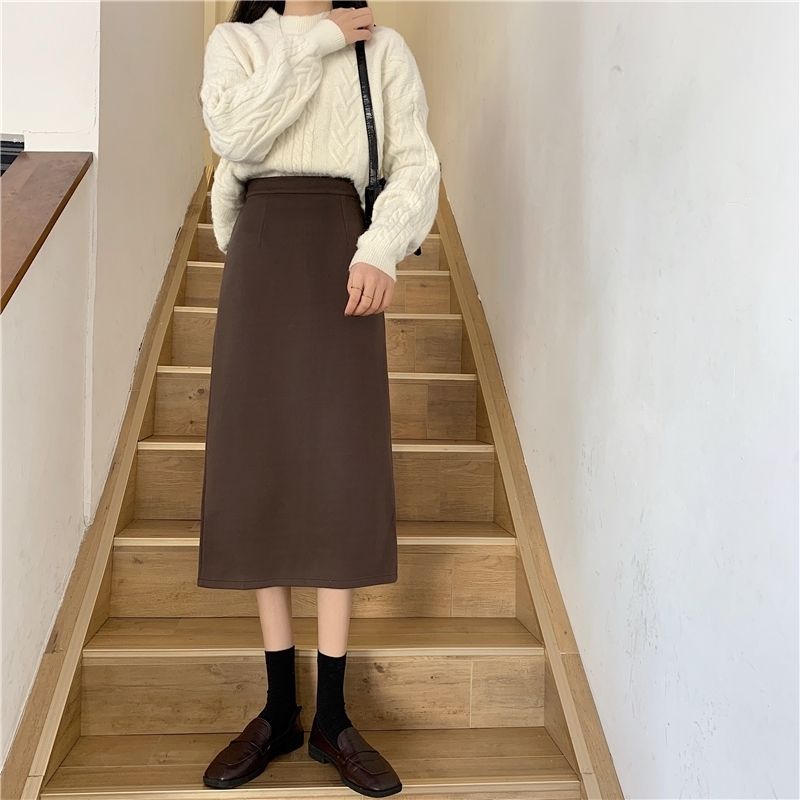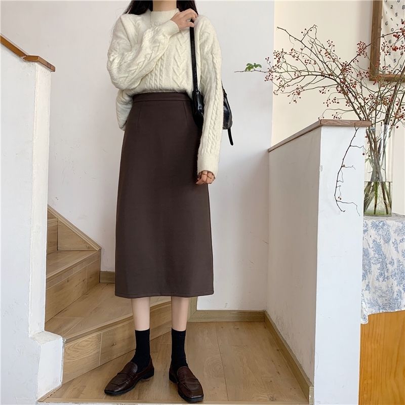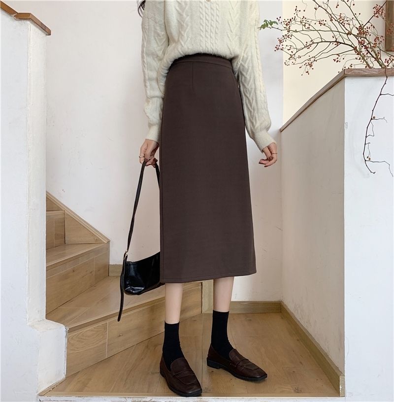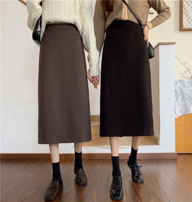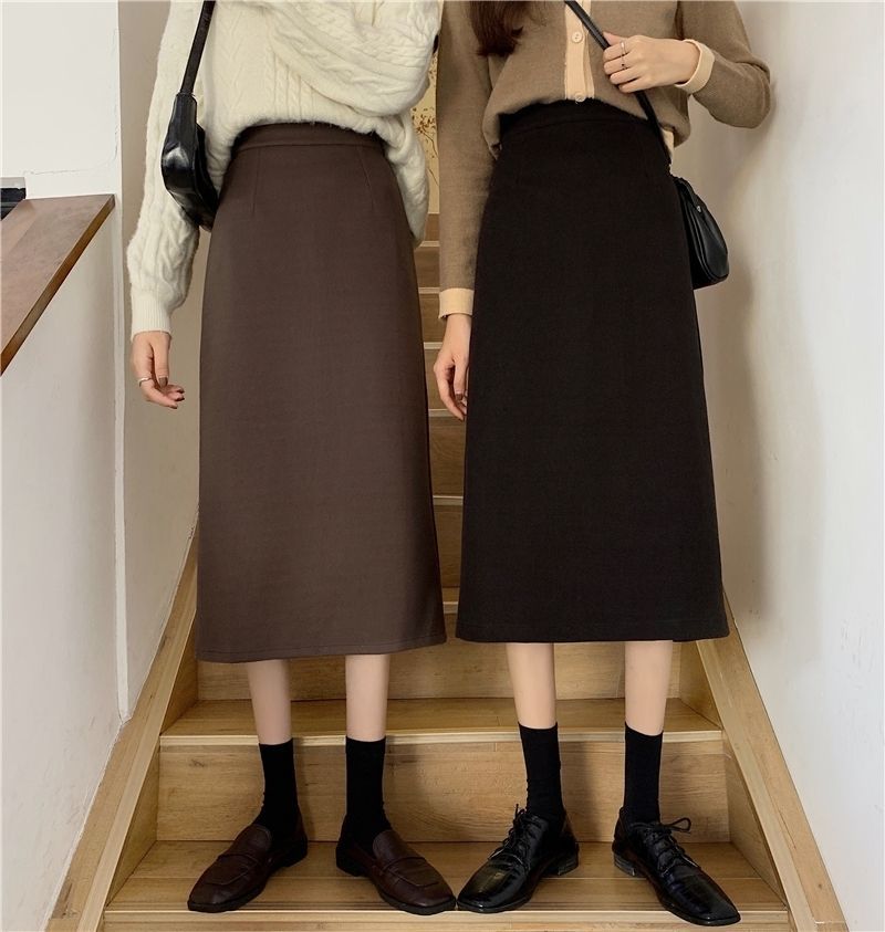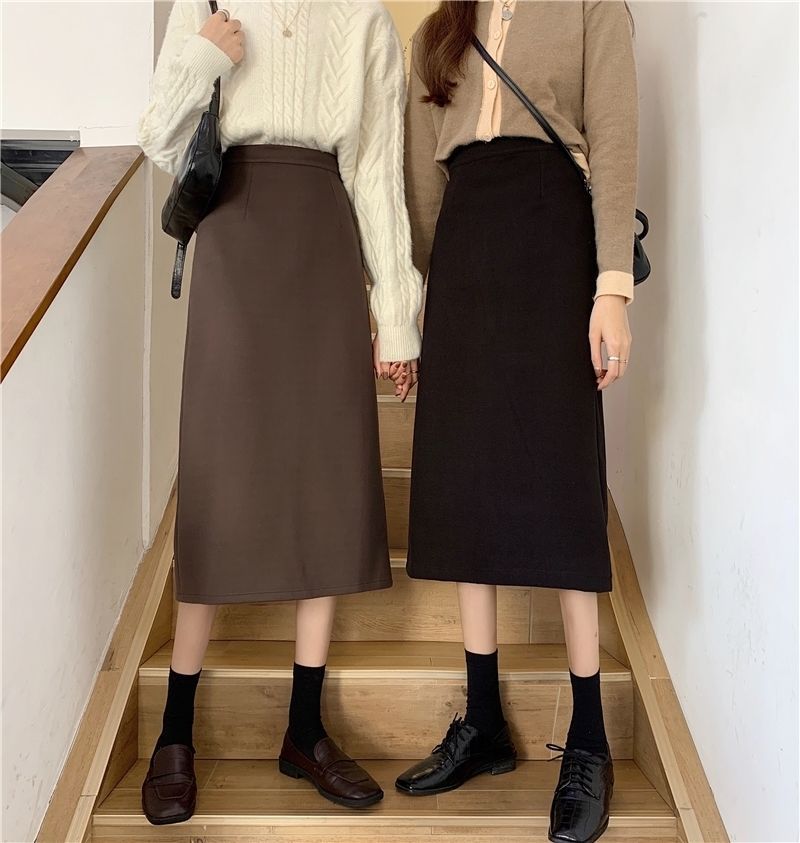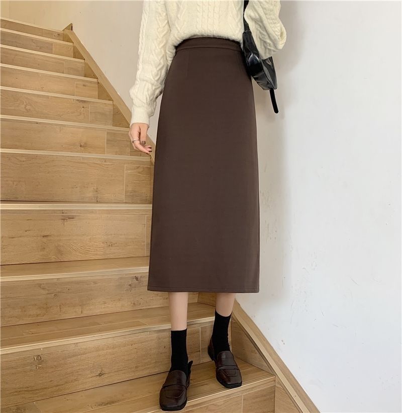 2024 봄 슬림 핏 하이 웨이스트 미드 길이 스커트 일본과 한국 캐주얼 스타일 A 라인 다용도 스플릿 스커트 여성스토어 가기