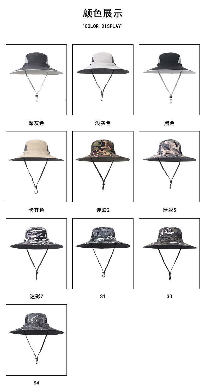 등산 어부 모자 야외 낚시 모자 하이킹 하이킹 큰 챙이 태양 모자 남성 여름 태양 보호 태양 모자 여행