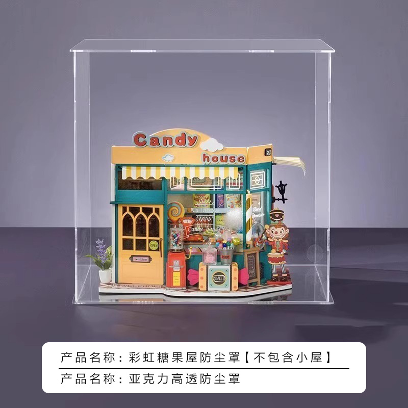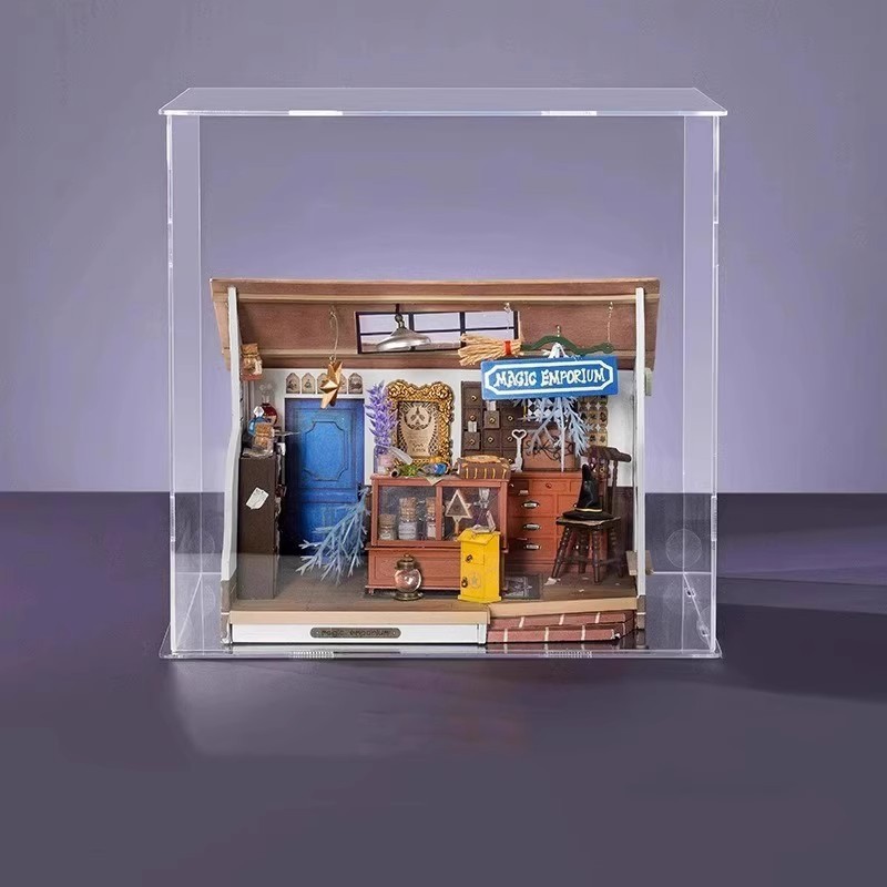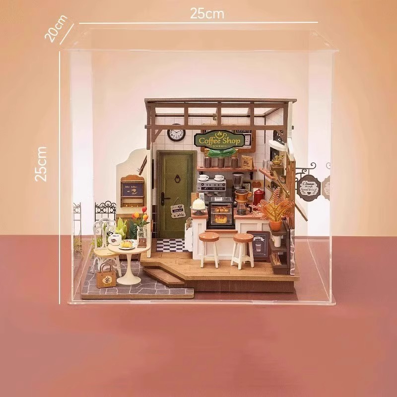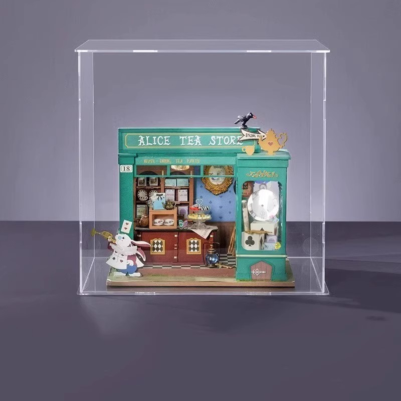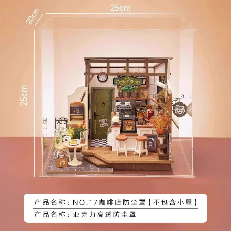 Ruozhiluo NO.17 커피 숍 먼지 커버 손으로 조립 된 DIY 코티지 아크릴 높은 투명 디스플레이 박스