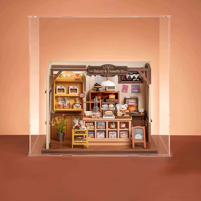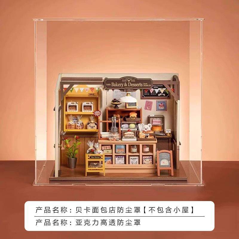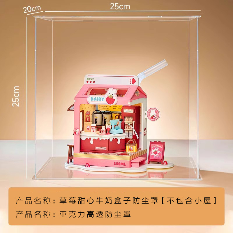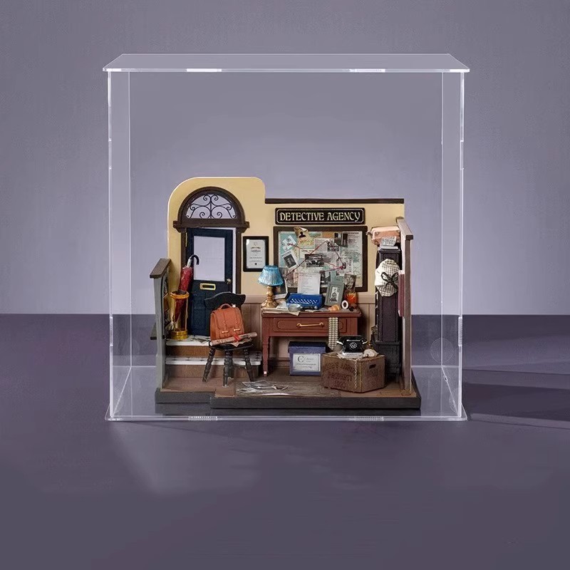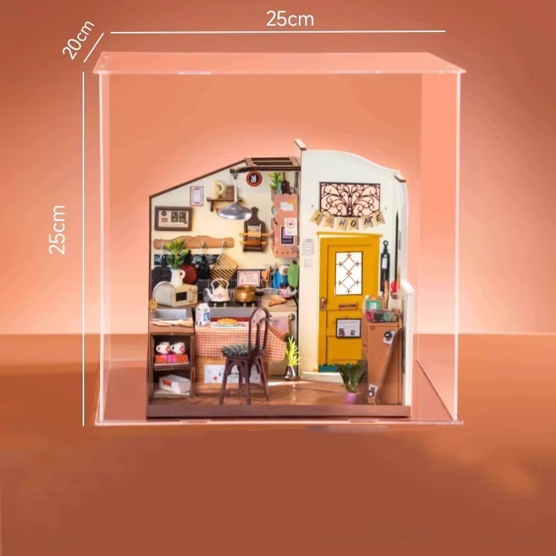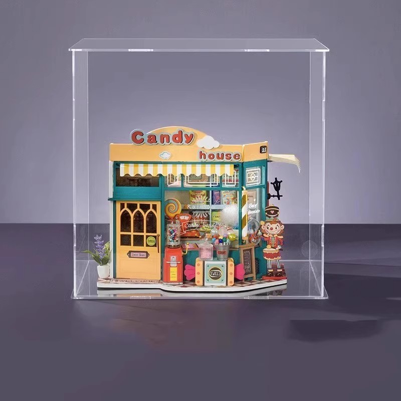 Ruozhiluo NO.17 커피 숍 먼지 커버 손으로 조립 된 DIY 코티지 아크릴 높은 투명 디스플레이 박스
