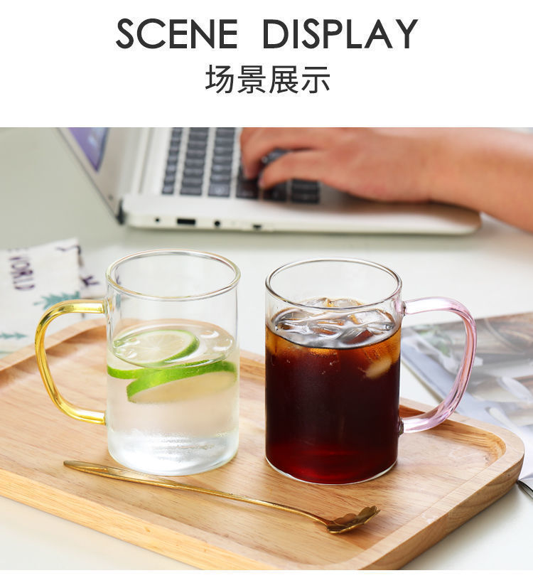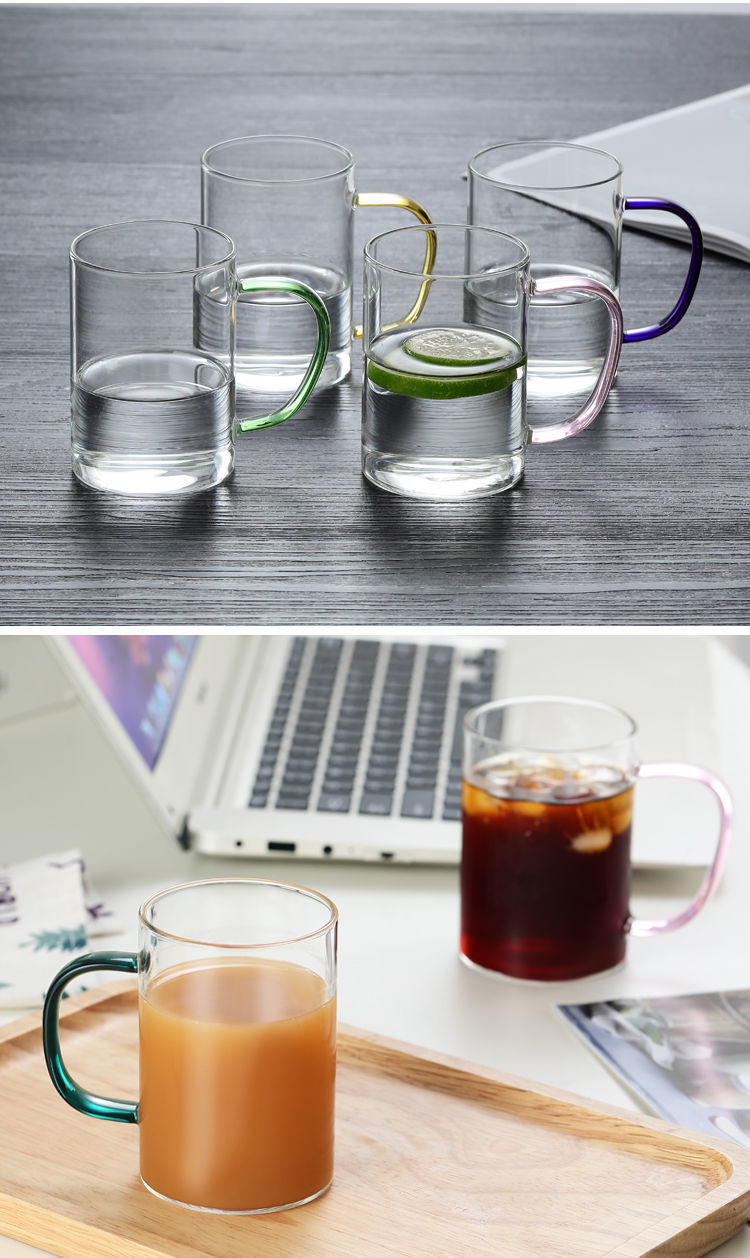 손잡이가 있는 투명 유리컵 세트, 가정용 음료컵, 차컵, 우유컵, 혼합 색상 커피컵, 고붕규산 내열성스토어 가기