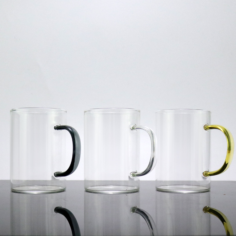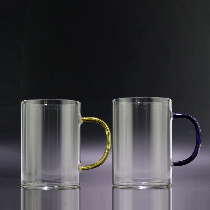 손잡이가 있는 투명 유리컵 세트, 가정용 음료컵, 차컵, 우유컵, 혼합 색상 커피컵, 고붕규산 내열성