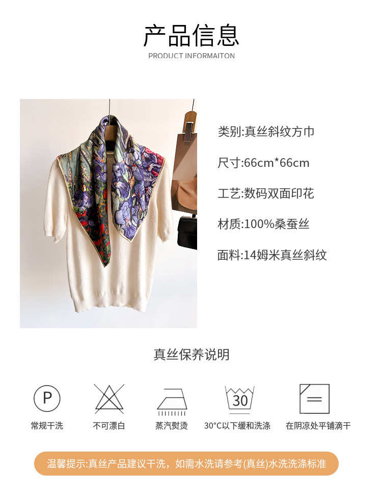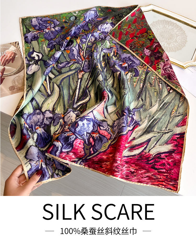 2024 봄 빛 럭셔리 올 매치 실크 트윌 70 실크 스카프 여성 패션 유화 높은 감각 뽕나무 실크 스카프스토어 가기