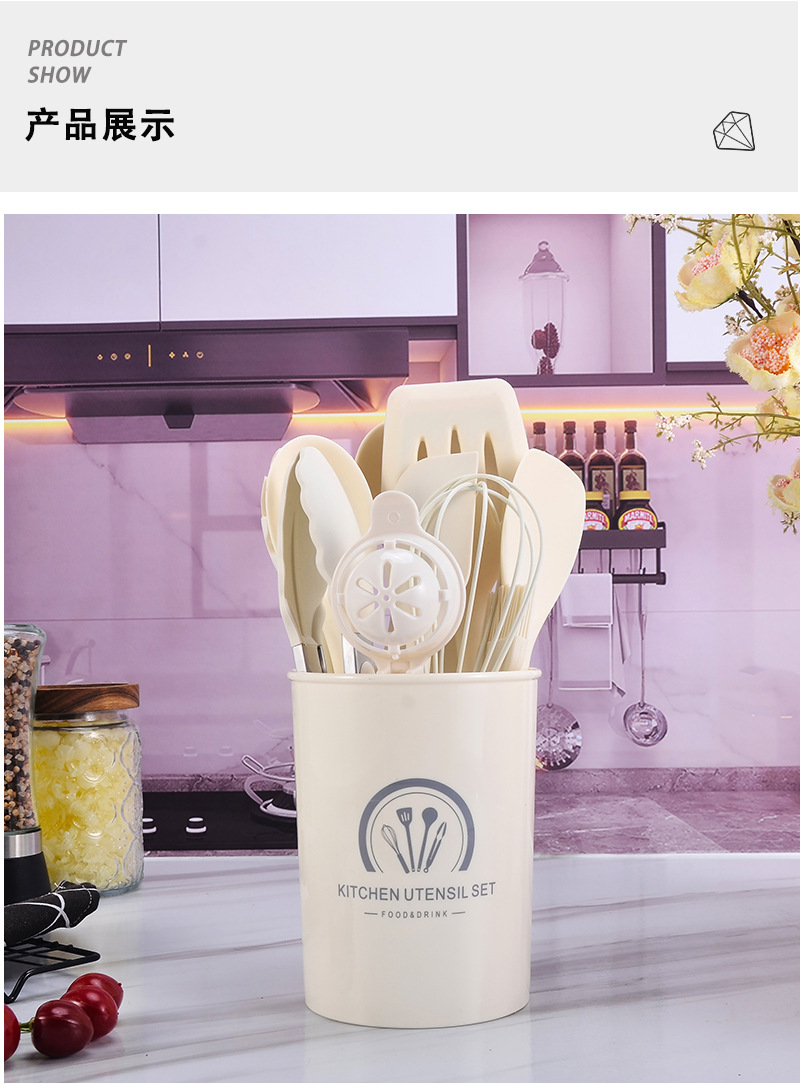국경 간 재고 12 개 실리콘 요리 주방 용품 세트 내열성 주방 가제트 비 스틱 팬 스푼 삽 식기 세트