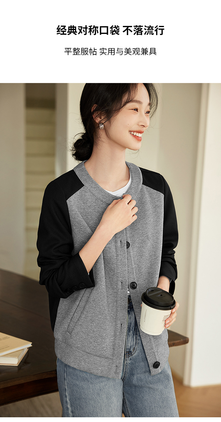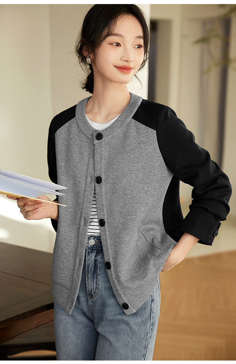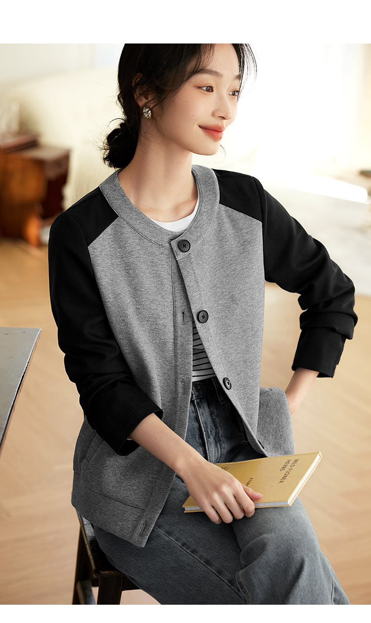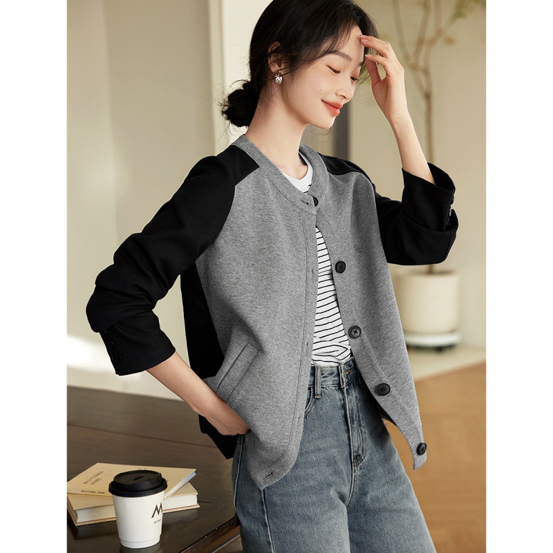 봄 24 새로운 야구 세트 짧은 코트 여자 모고 물고기 위안 추앙 스티칭 대조 컬러 디자인 캐주얼 재킷 탑