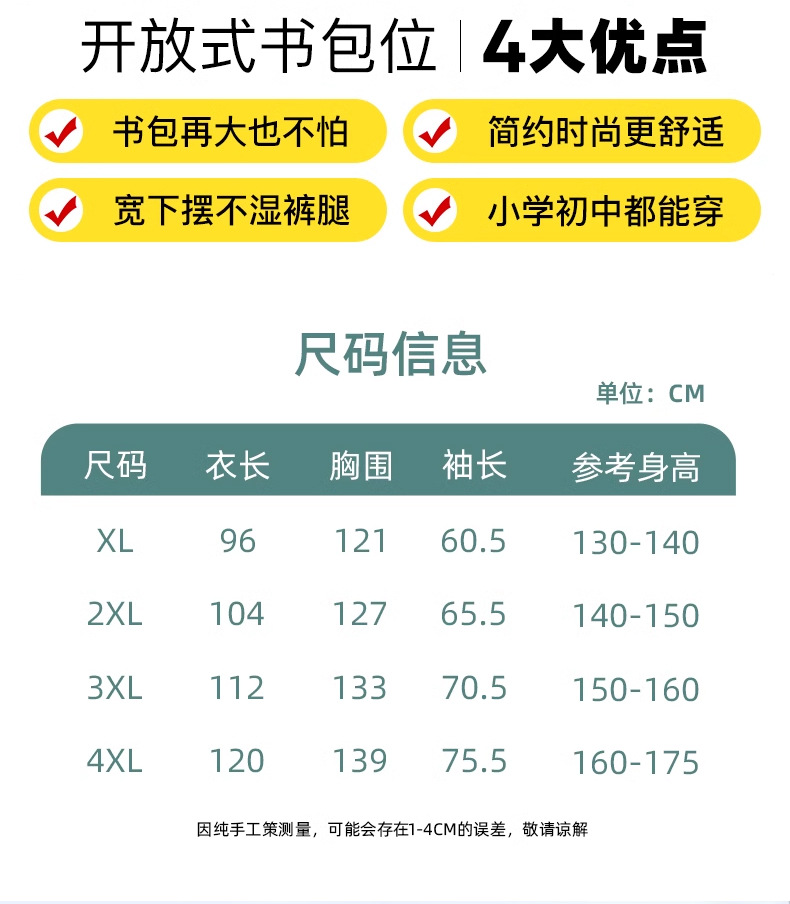 더블 브림 어린이 비옷 중학교 초등학교 남학생과 여중생 학교 긴 지퍼 판초스토어 가기