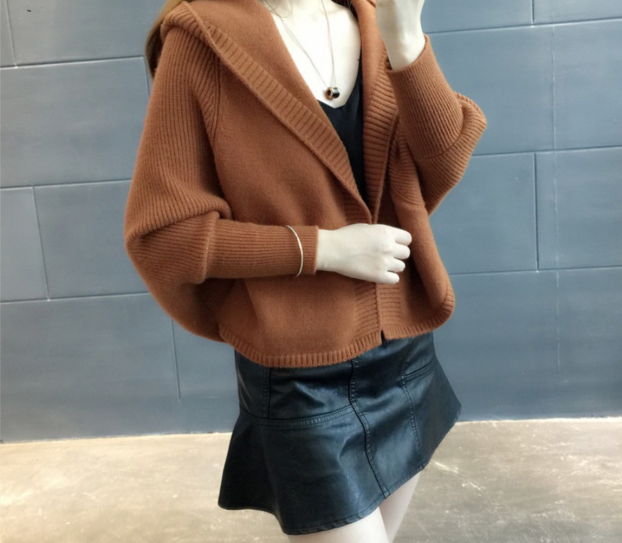 봄 2024 샤넬 스타일 여성용 긴팔 카디건 두꺼운 배트 윙 셔츠 코트 새로운 후드 느슨한 스웨터 탑