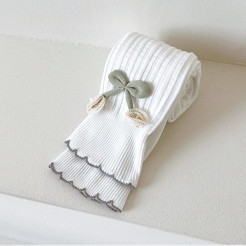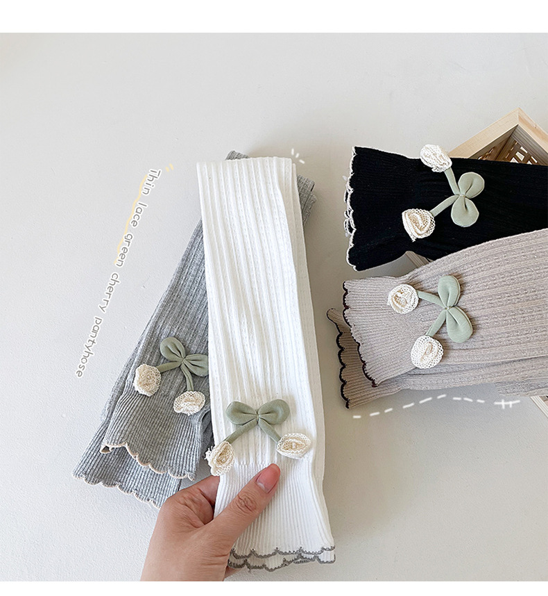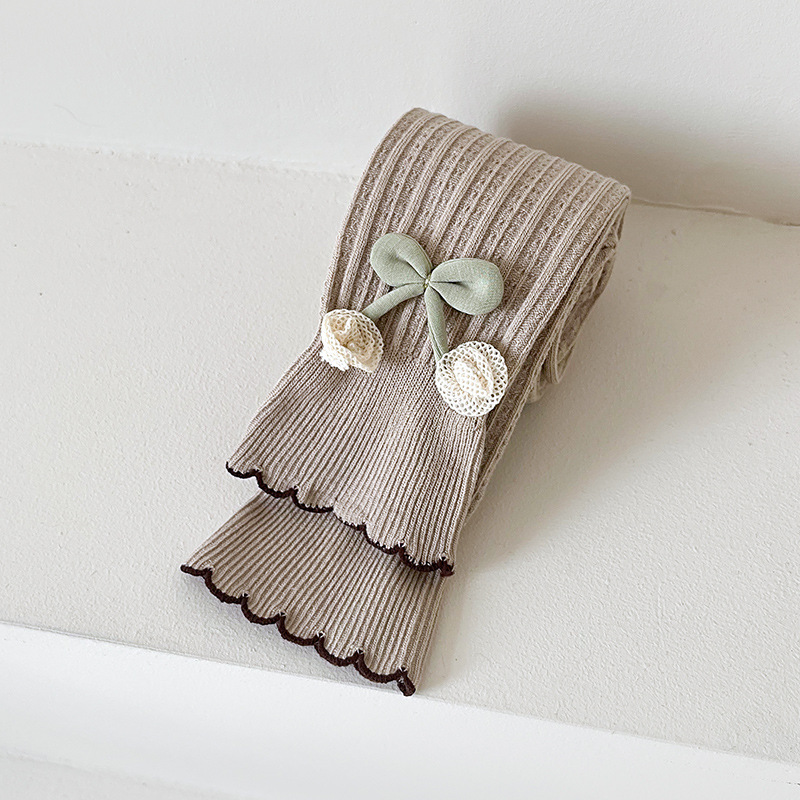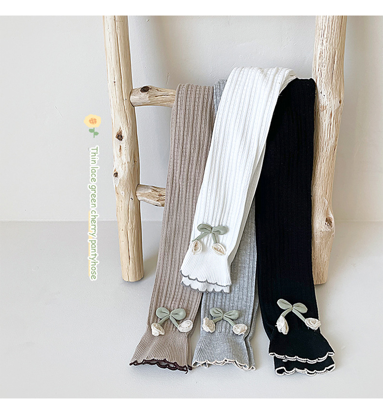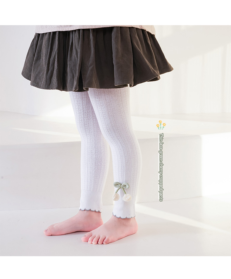 도매 소녀 봄과 가을 얇은 레깅스 겉옷 아동면 수직 줄무늬 레이스 녹색 체리 자른 바지