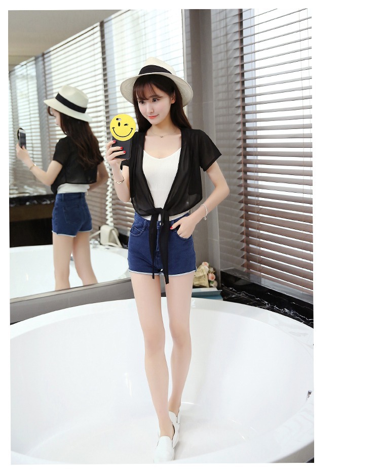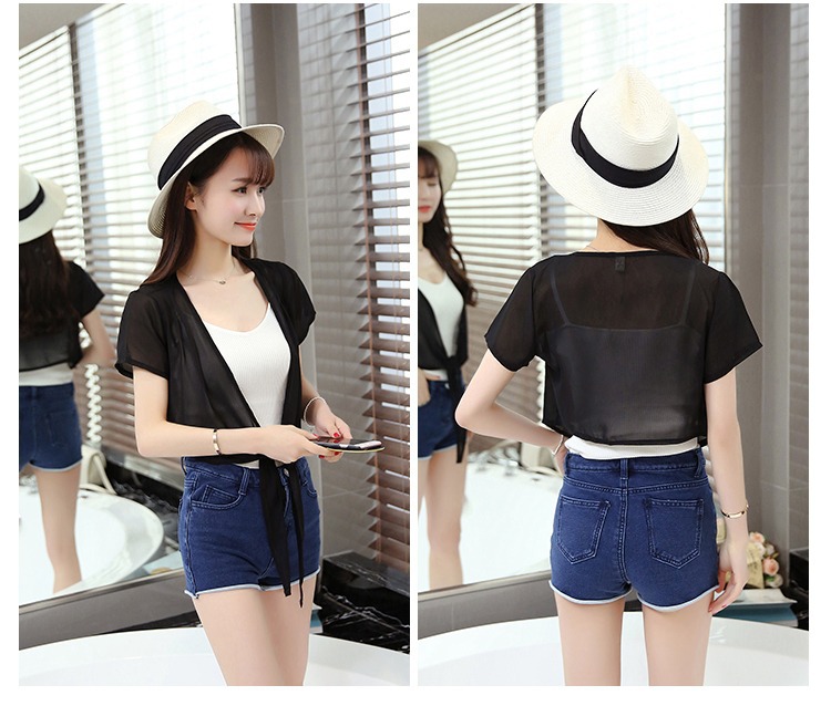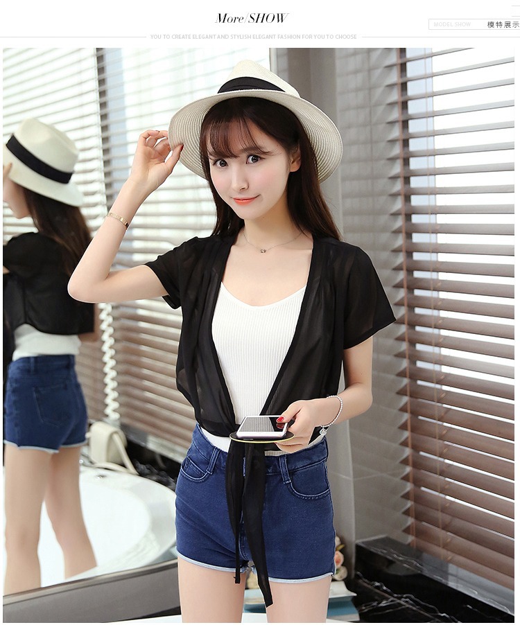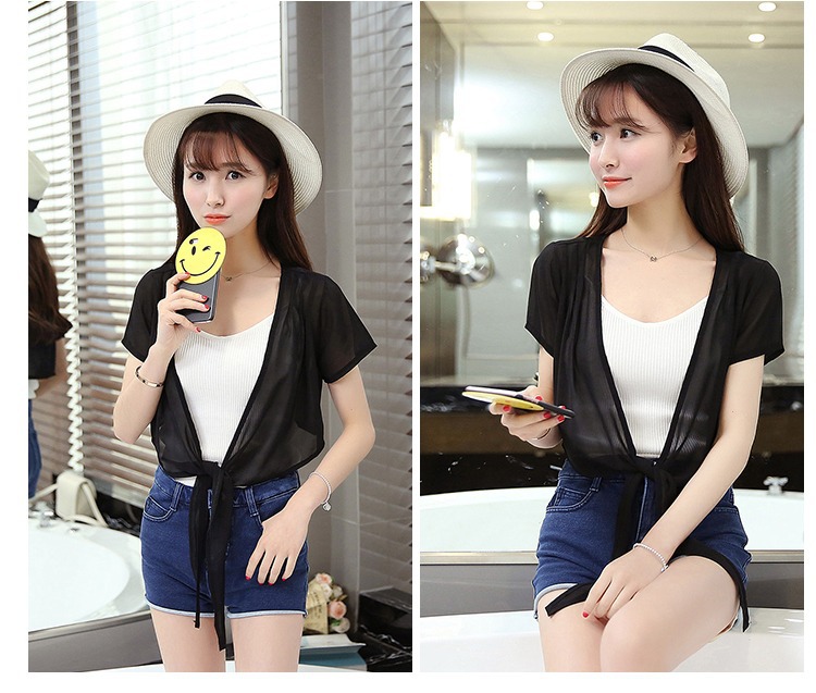 스커트 여름 다재다능한 짧은 메쉬 쉬폰 셔츠 선 스크린 카디건 초박형 작은 코트 여성용 숄탑스토어 가기