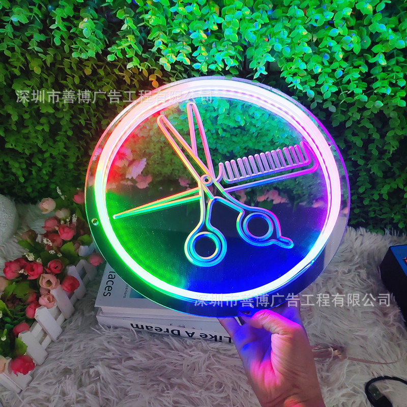 국경을 넘는 USB 다채로운 네온 라이트 이발소 가위 모양 LED 다채로운 장식 분위기 조명 광고 간판스토어 가기