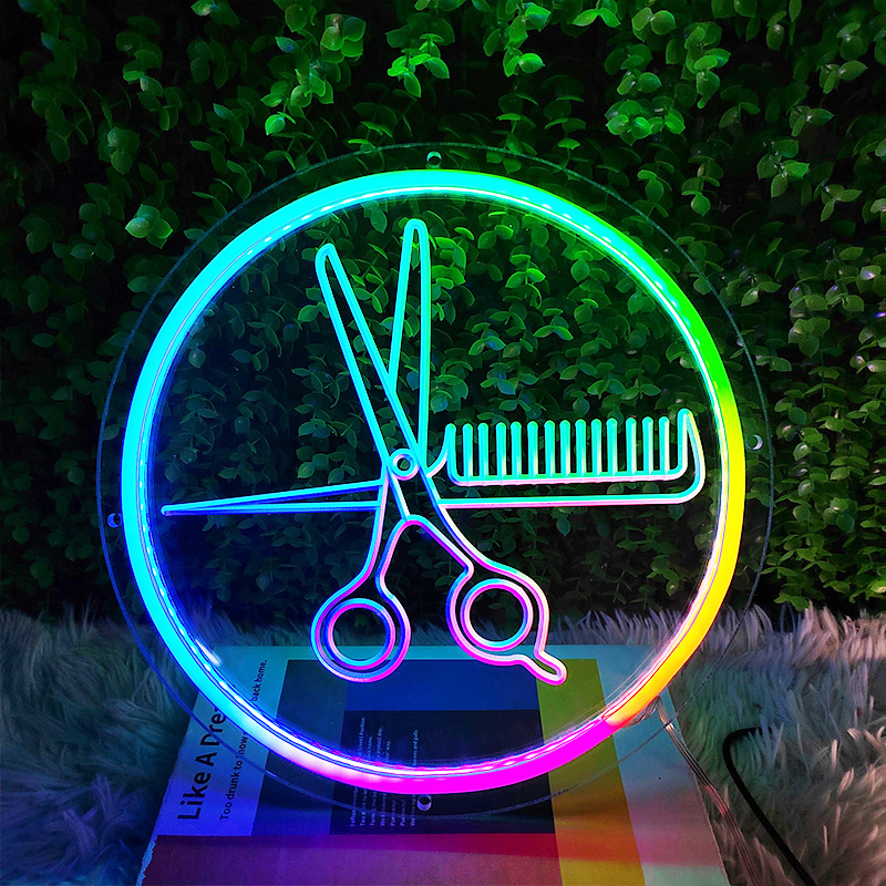 국경을 넘는 USB 다채로운 네온 라이트 이발소 가위 모양 LED 다채로운 장식 분위기 조명 광고 간판